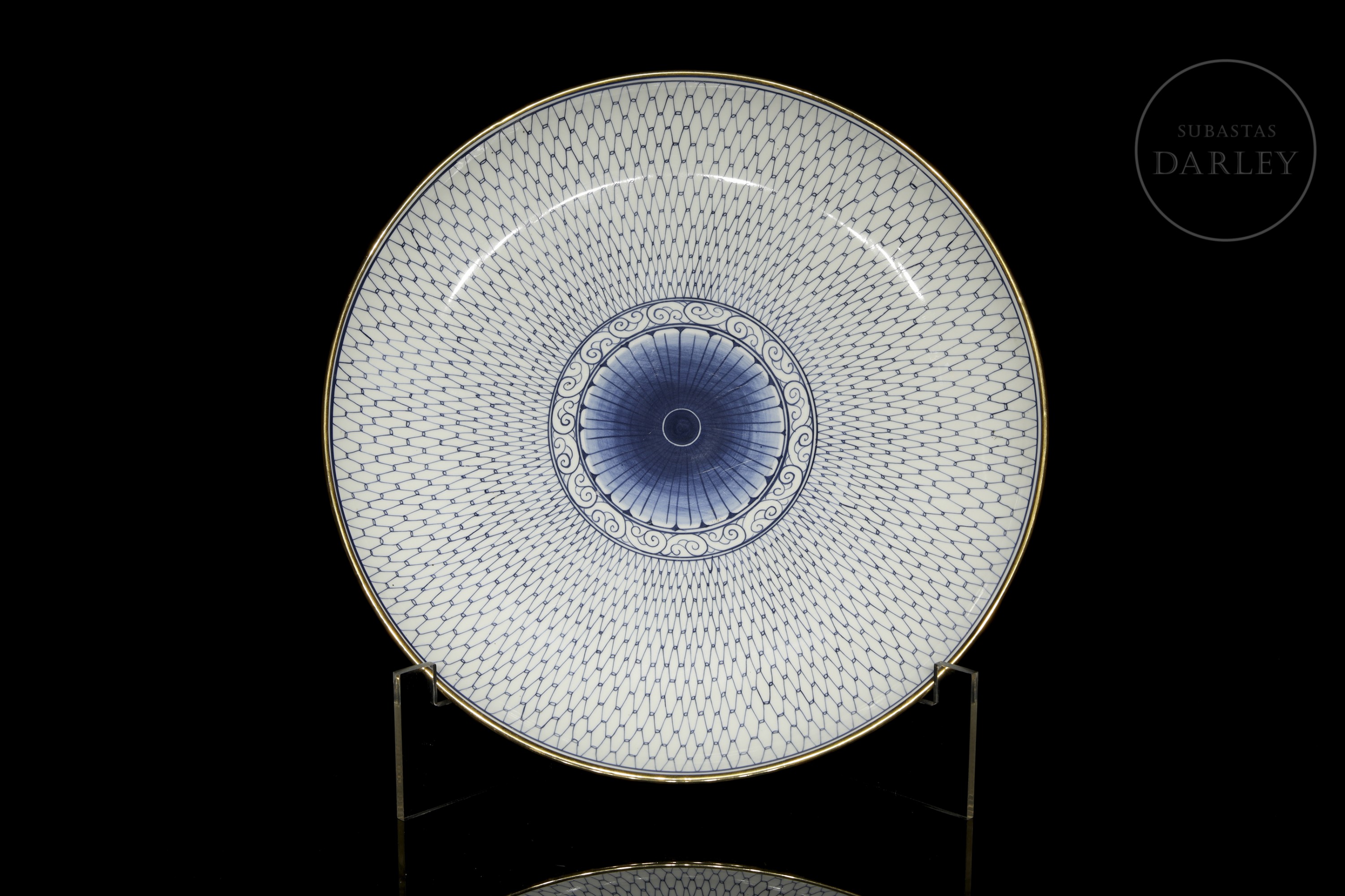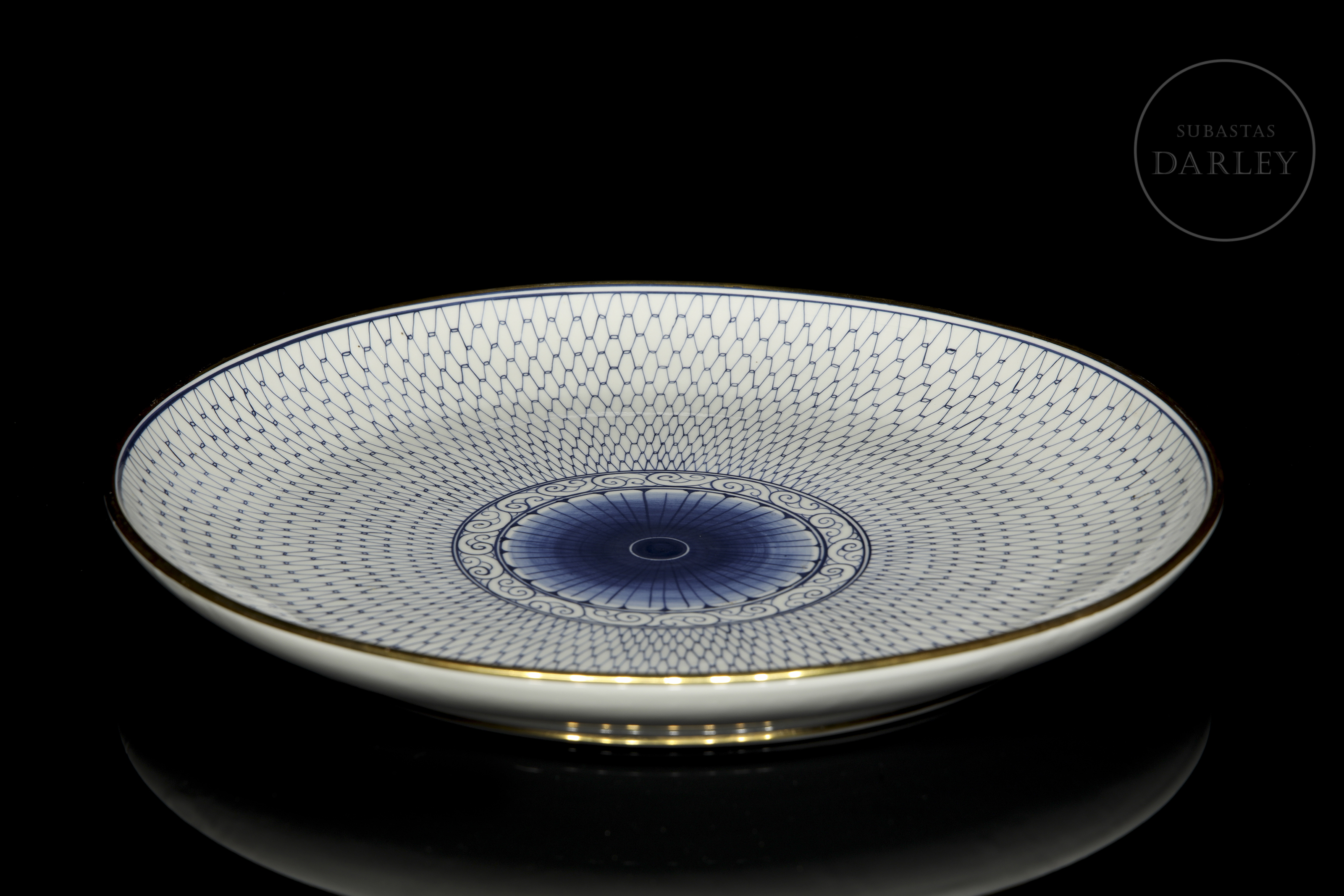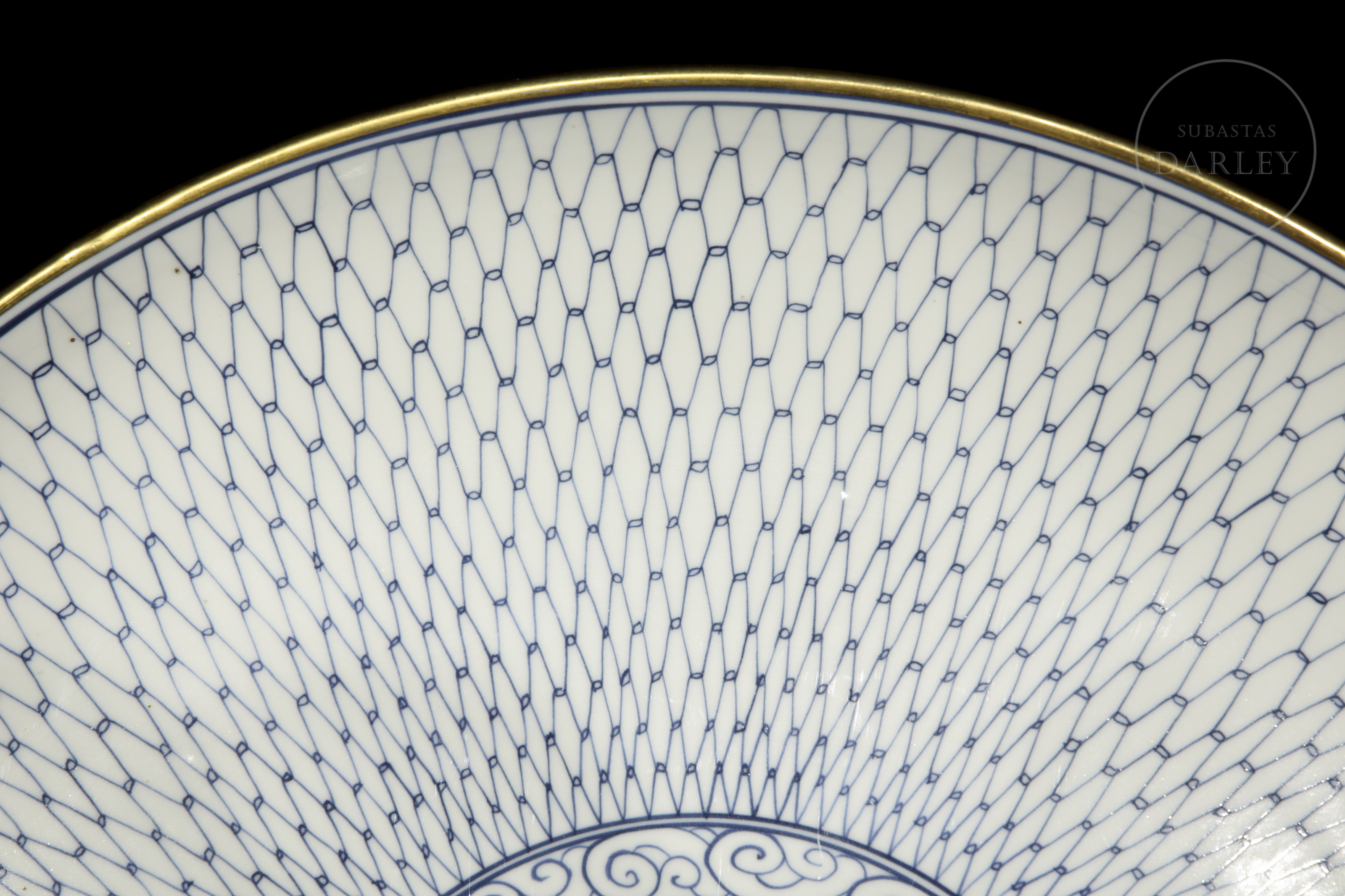 Plato de porcelana esmaltada azul y blanco, s.XX