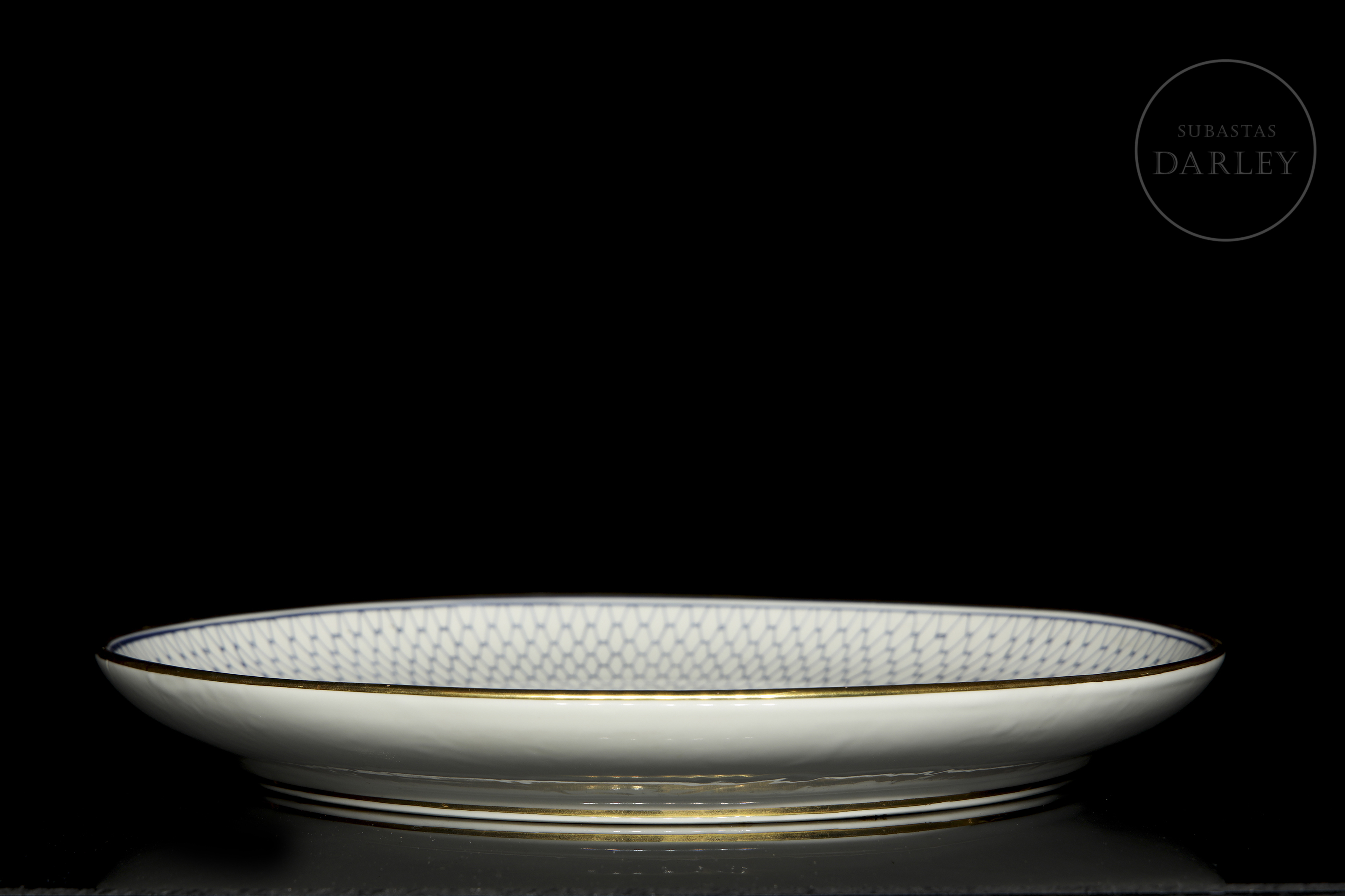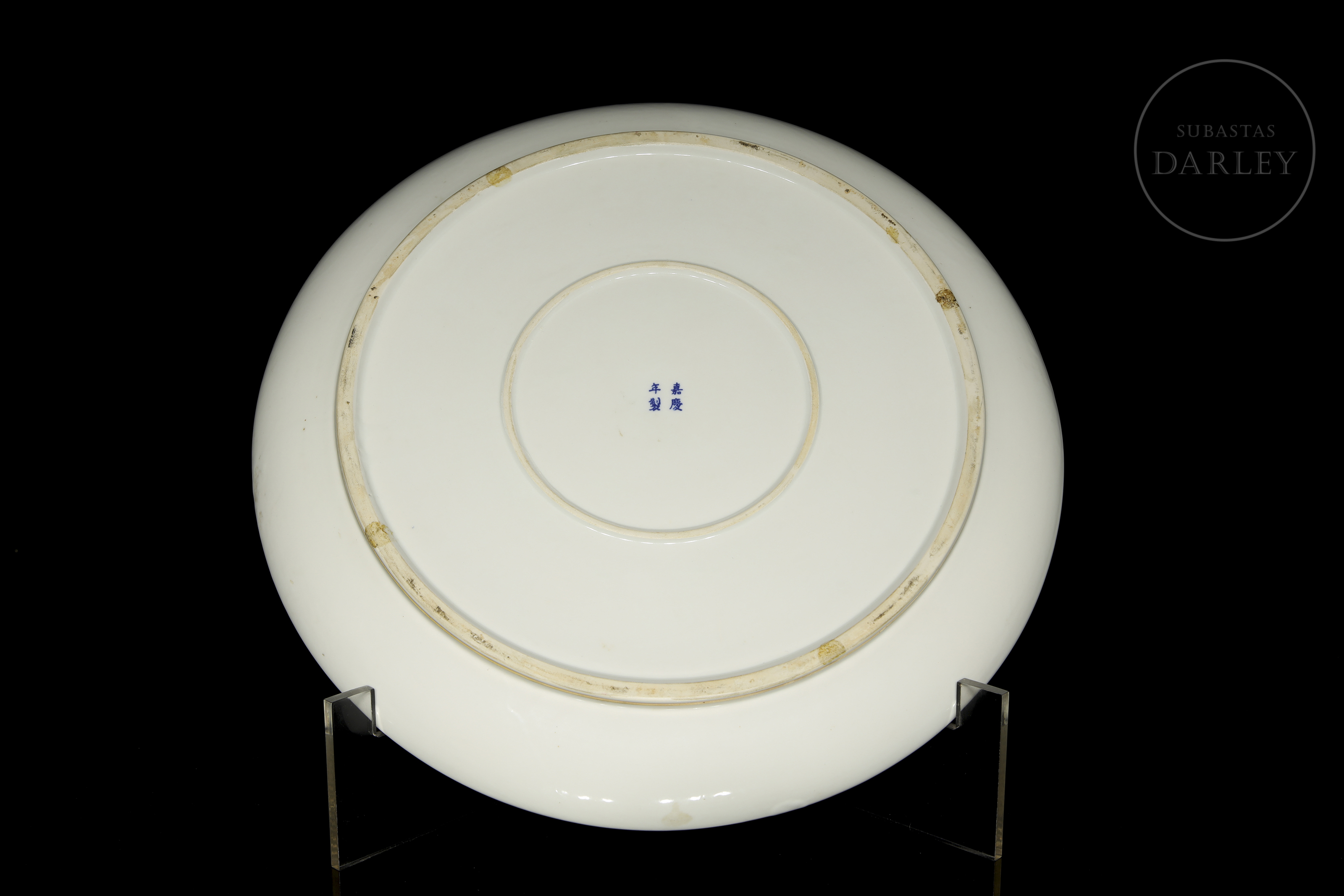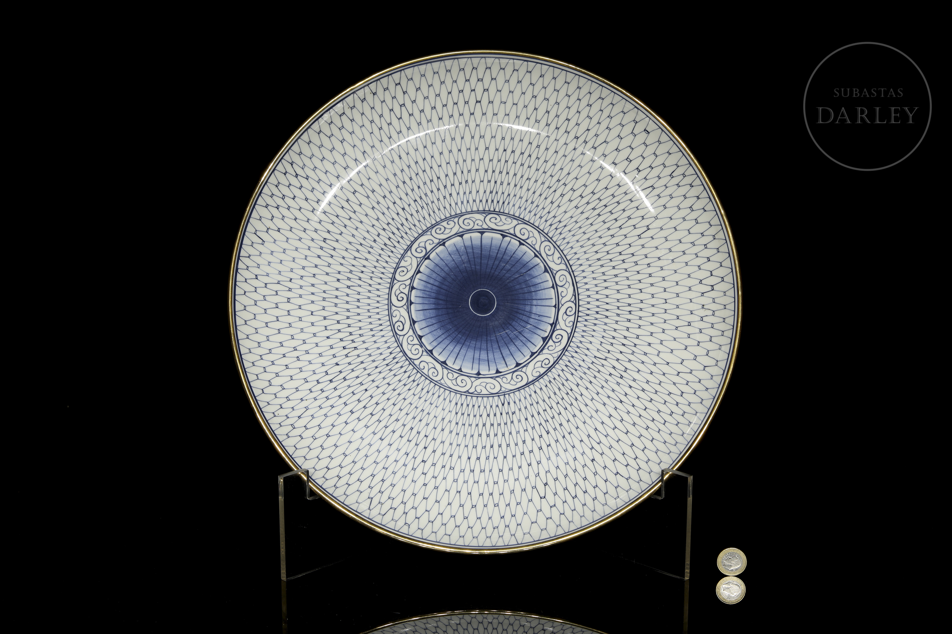 Plato de porcelana esmaltada azul y blanco, s.XX