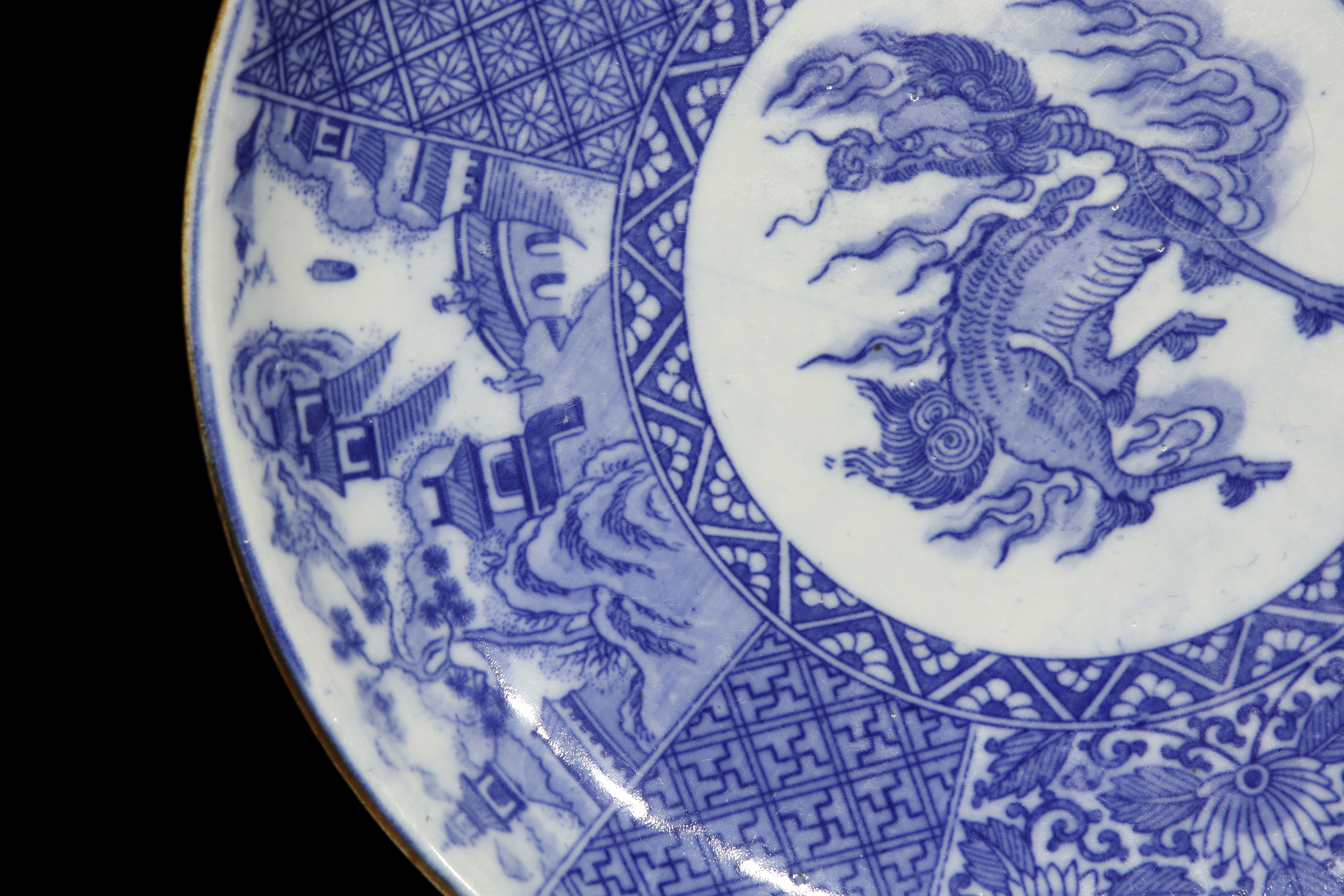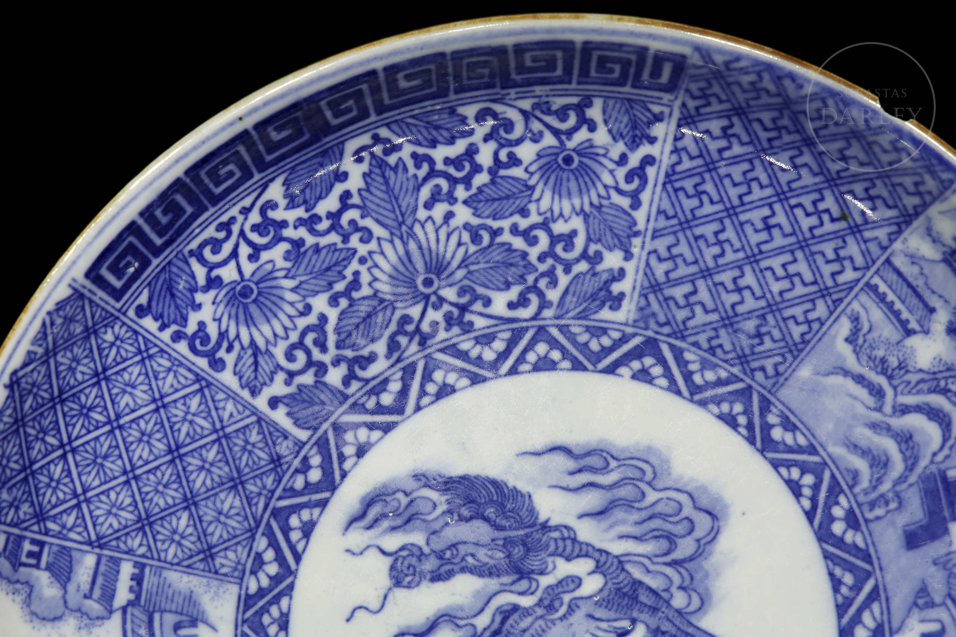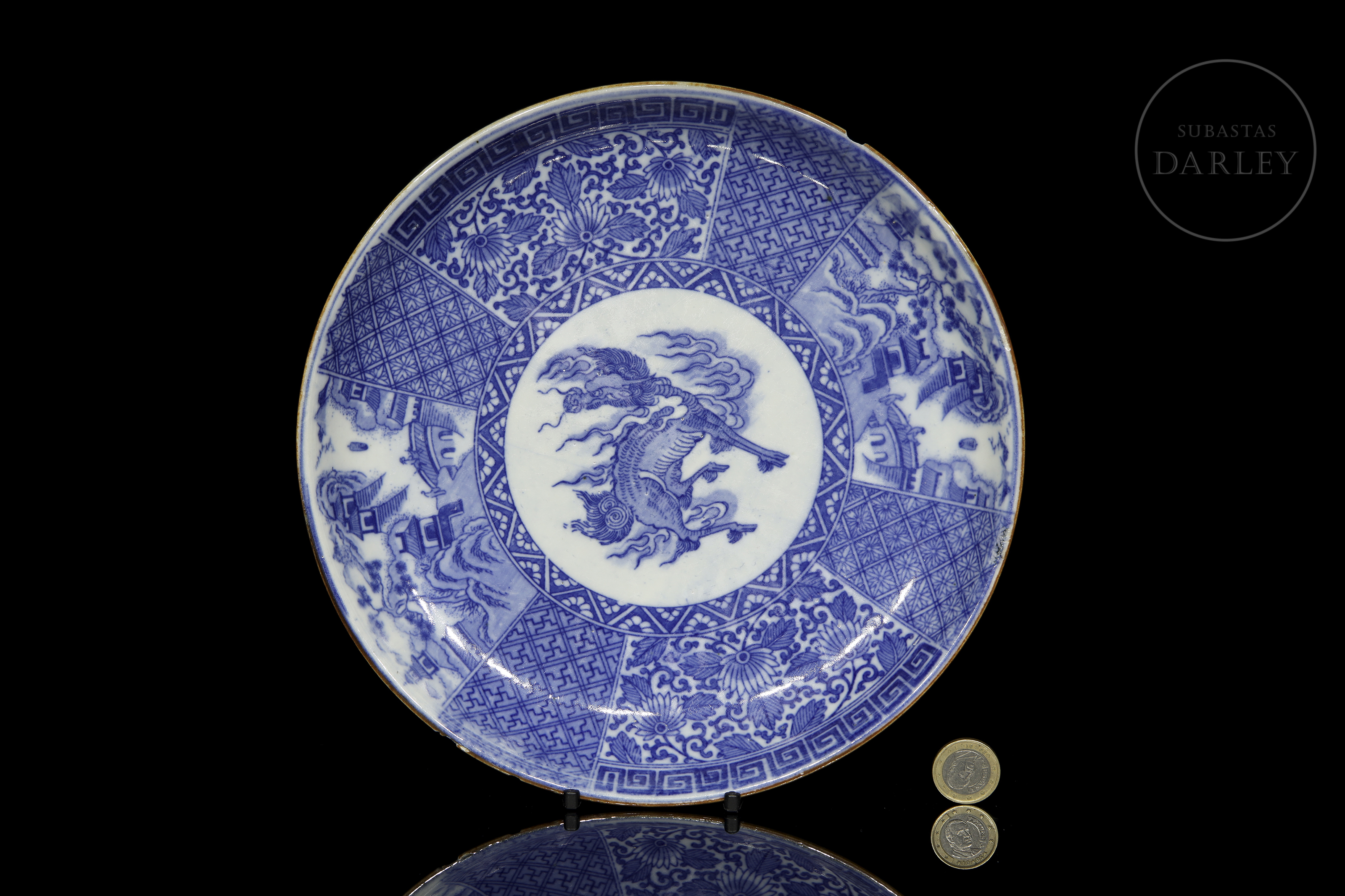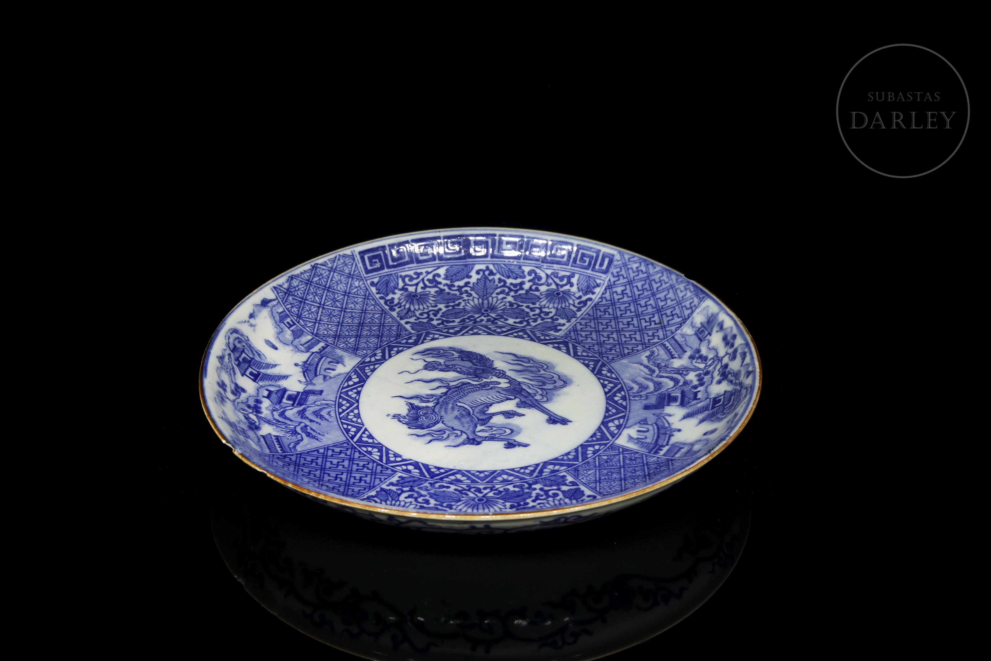 Inicio > Venta Directa > Cerámica y Porcelana Asiática > Plato de porcelana esmaltada "Qilin con paisajes", estilo Meiji