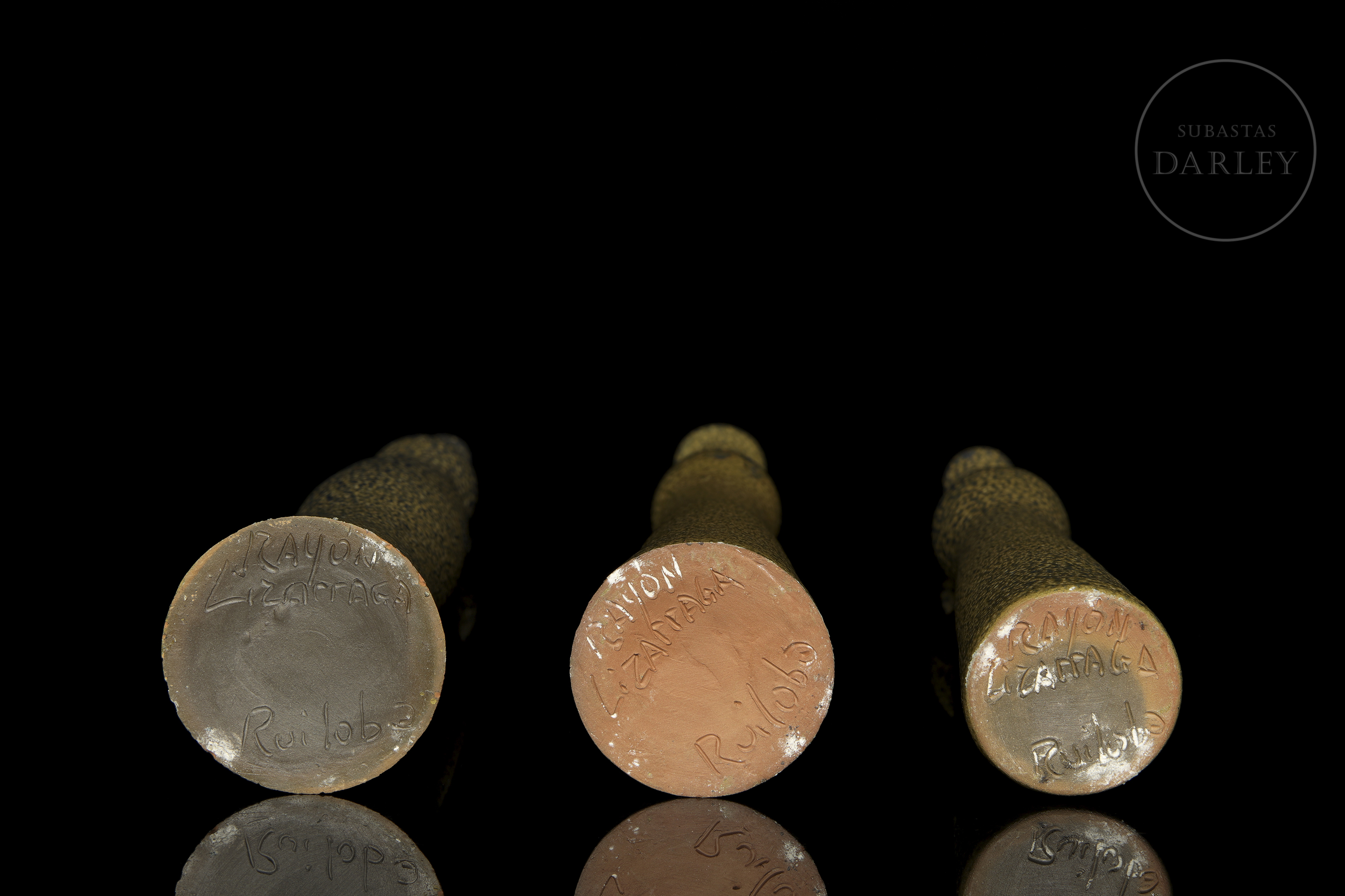 Rayón y Lizarraga (s.XX) "Tres jarrones ceramica"