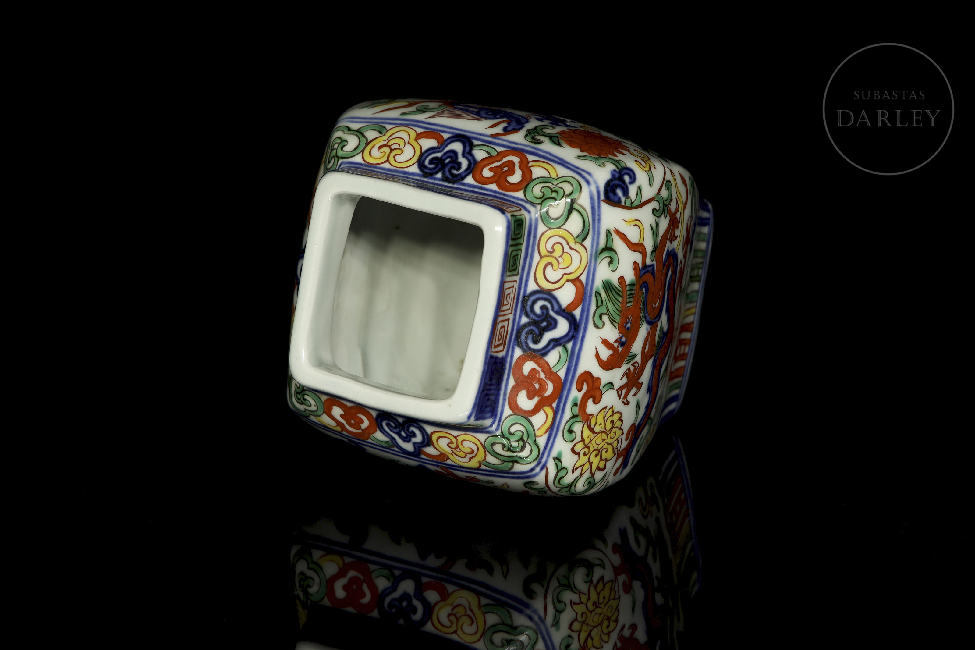 Recipiente con esmalte wucai "Dragones", con sello Wanli