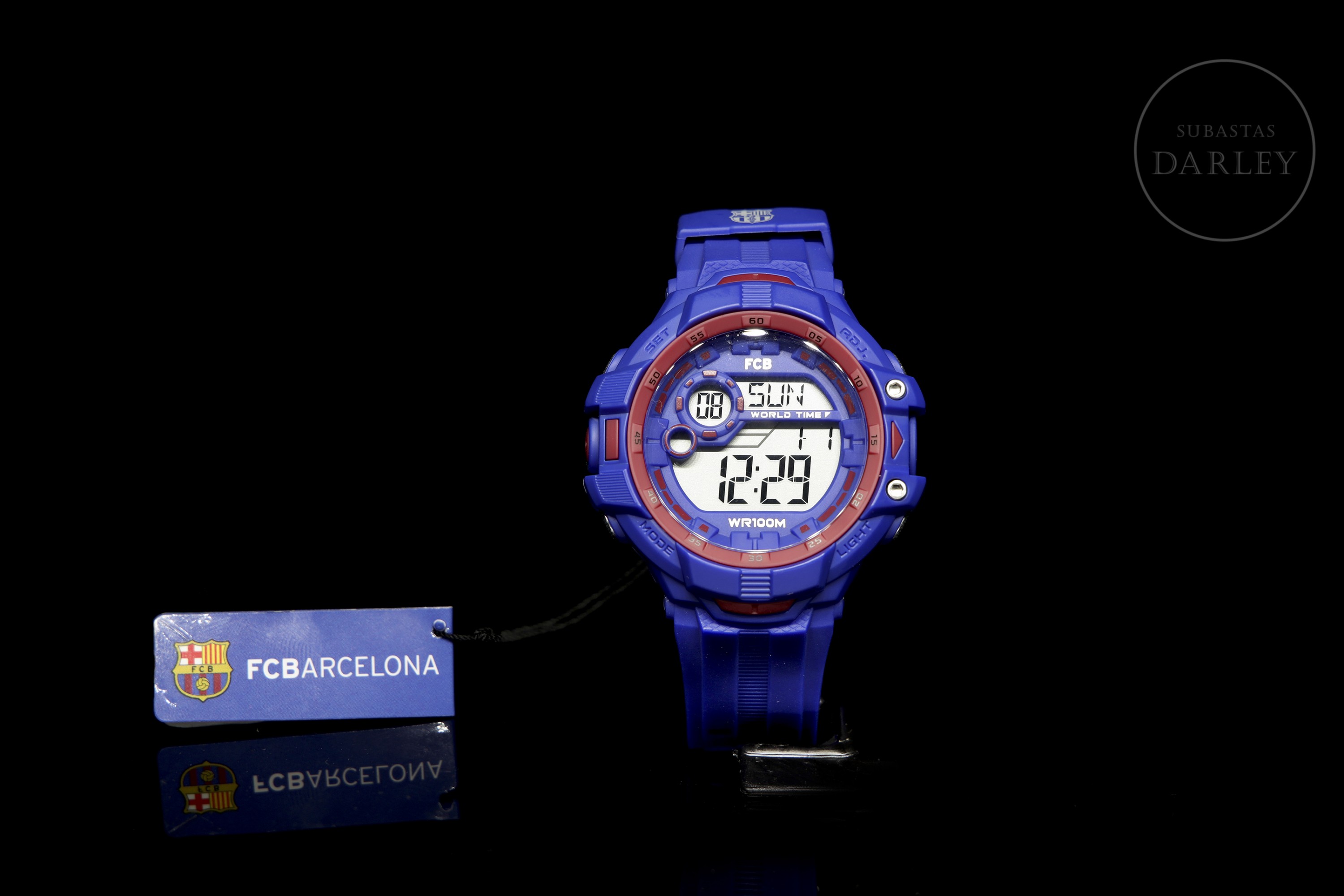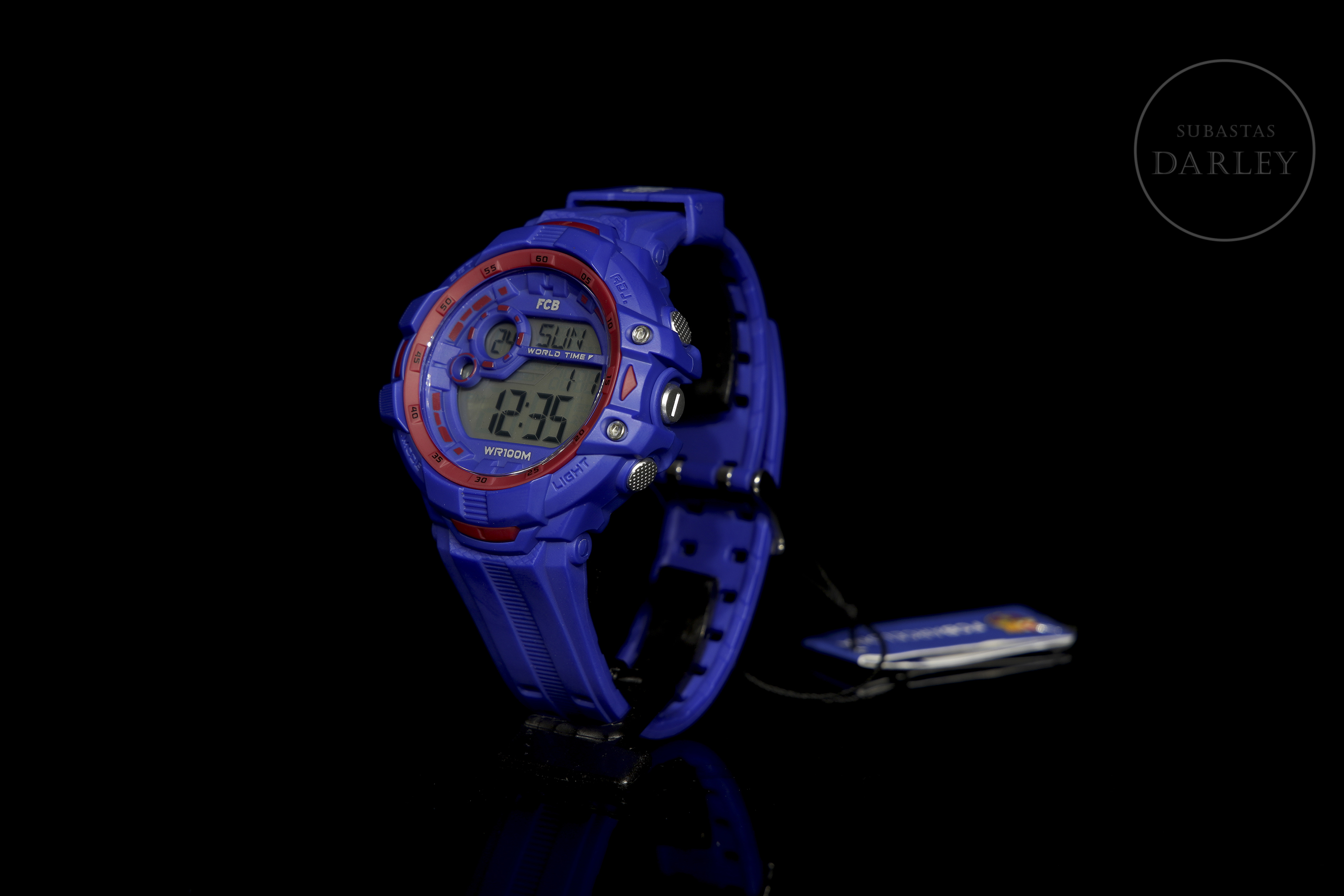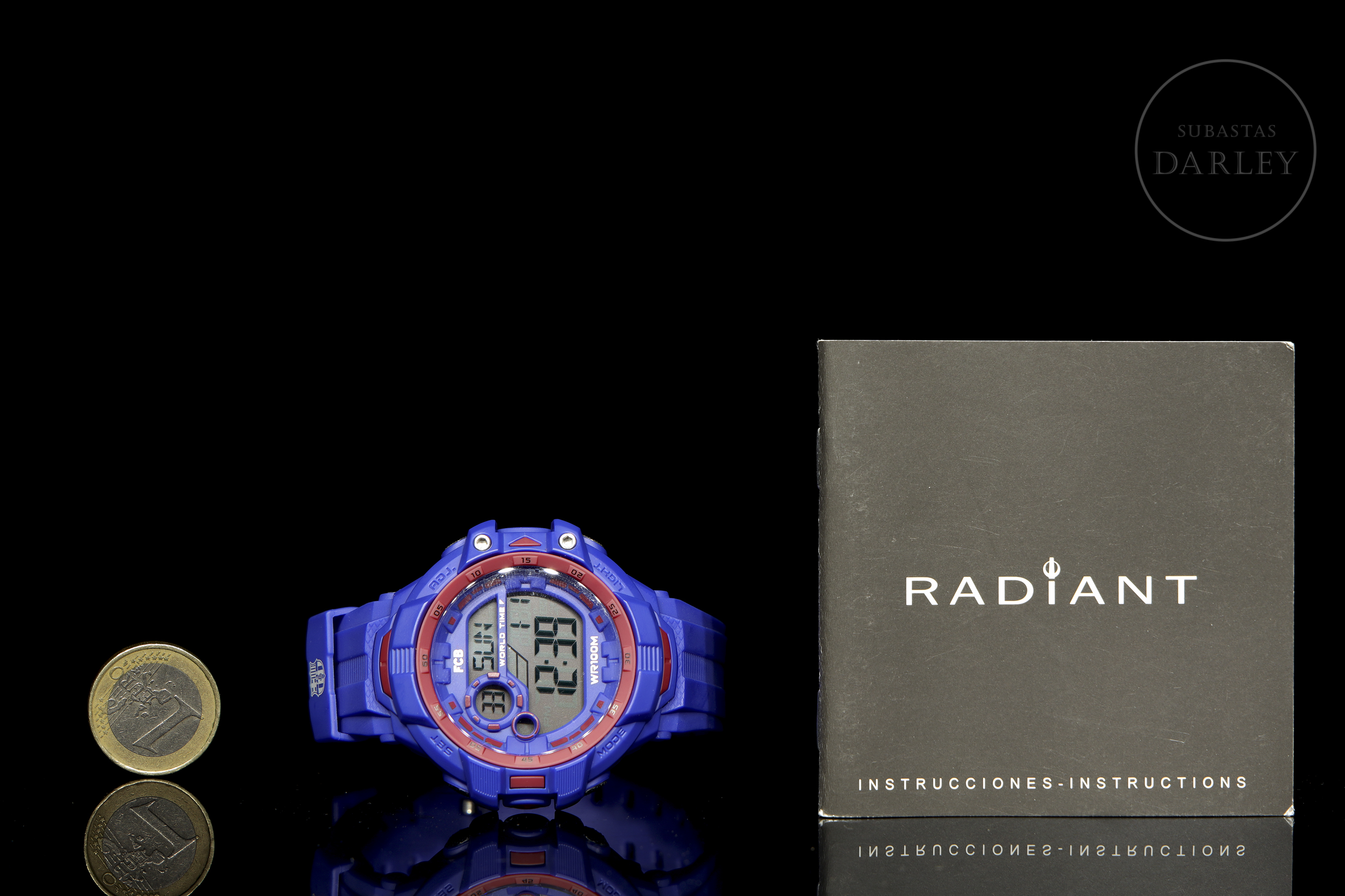 Reloj Radiant F.c. Barcelona. Reloj con caja y correa de resina azul y granate. Movimiento de cuarzo digital. Funciones del display: Fecha, cronógrafo, cuenta atrás y doble huso horario.