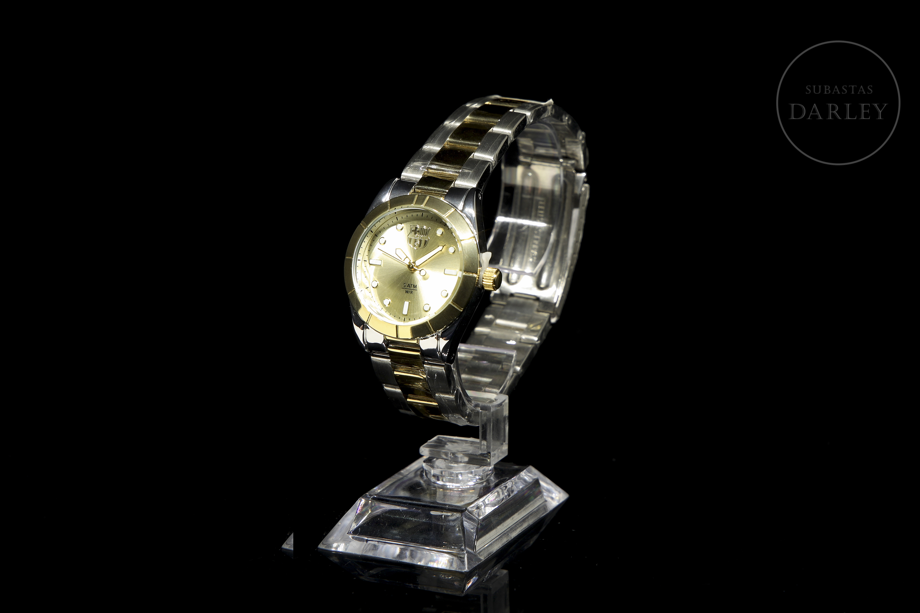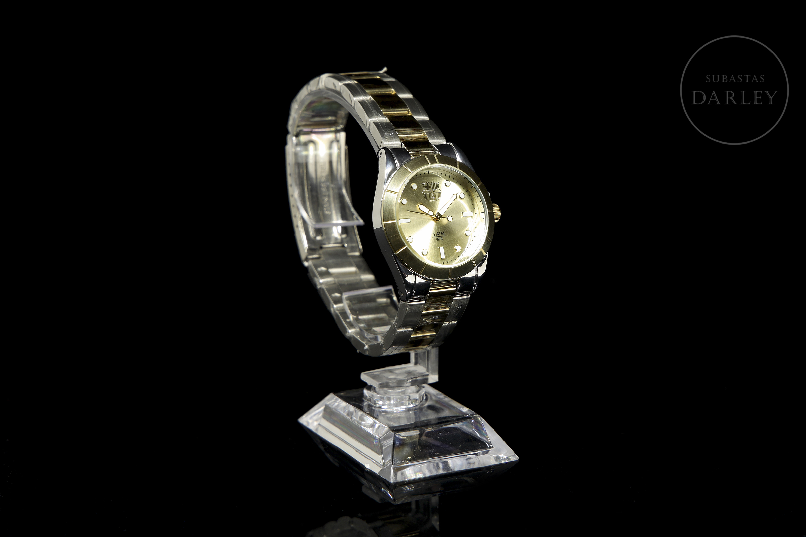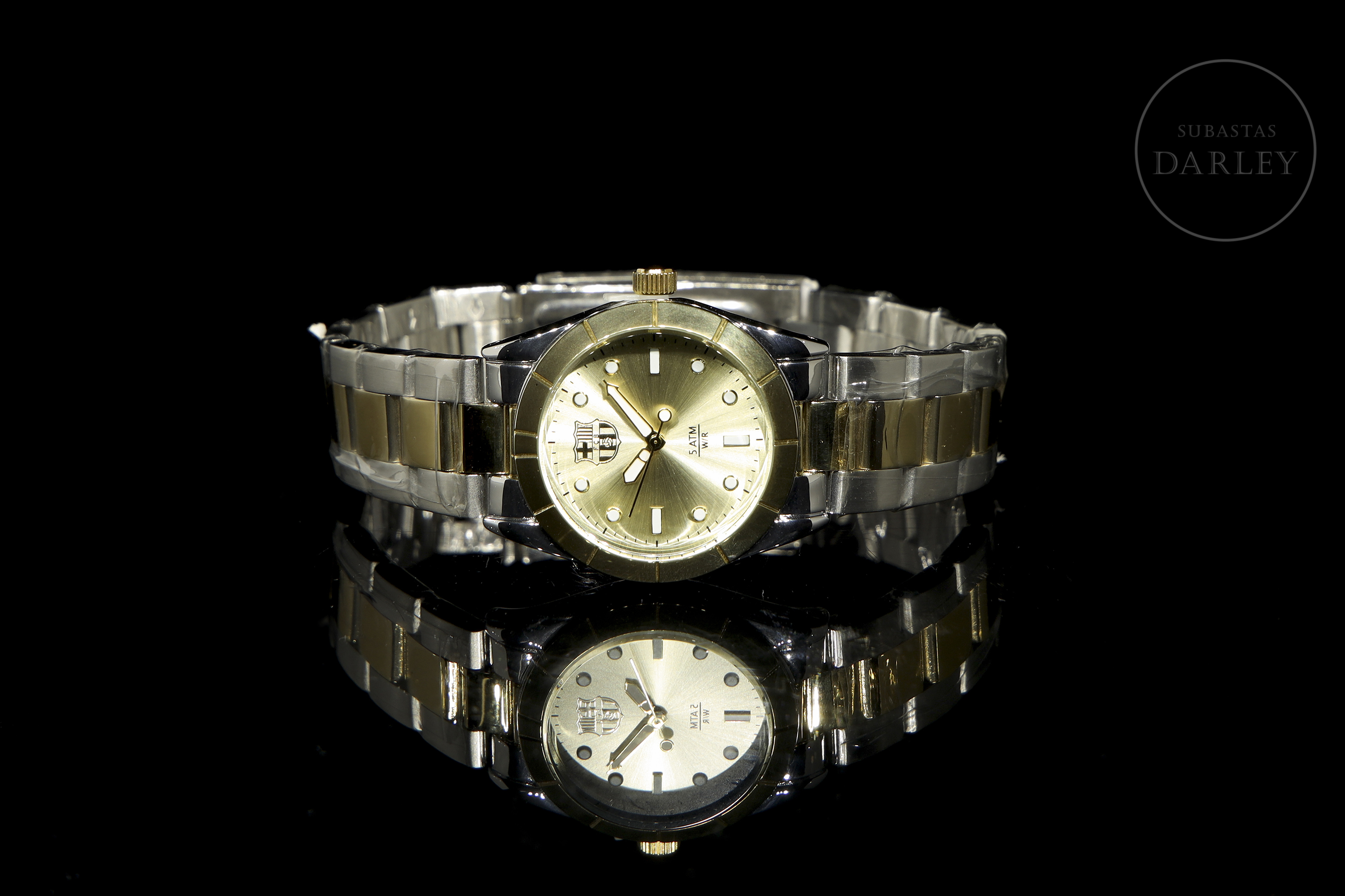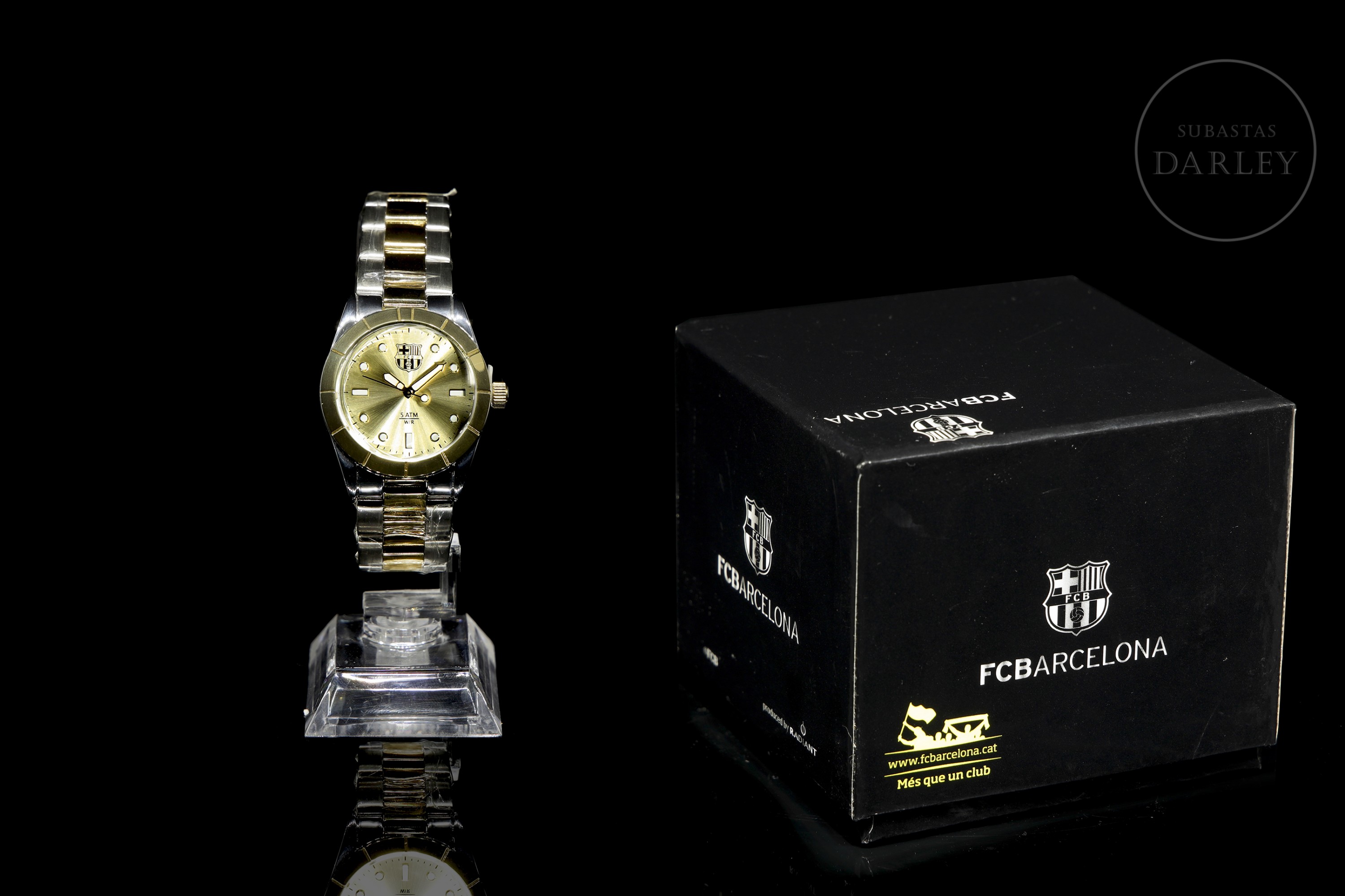 Reloj de Señora. Radiant F.c. Barcelona. Reloj de acero y dorado. Esfera dorada Champange con escudo del club. Movimiento de cuarzo. Incluye la caja.
