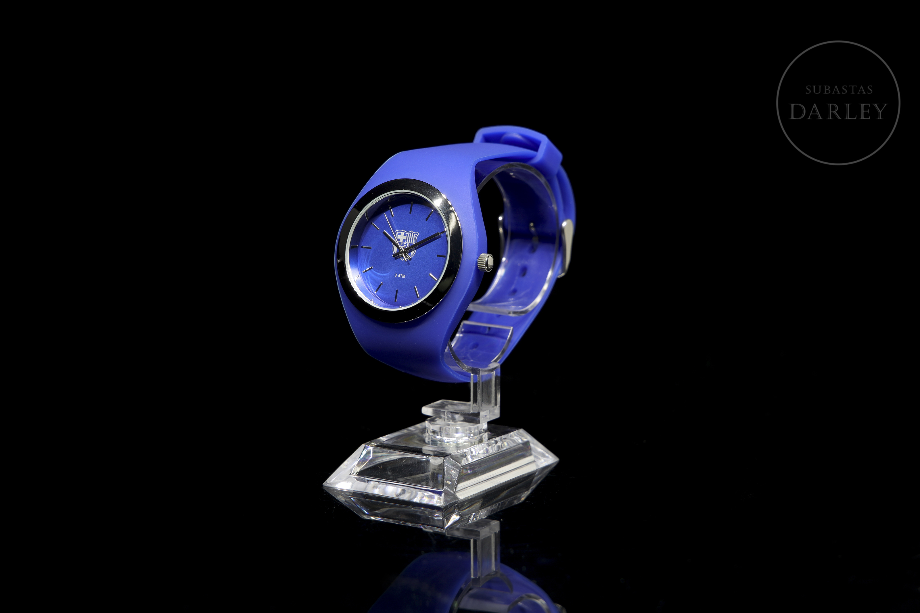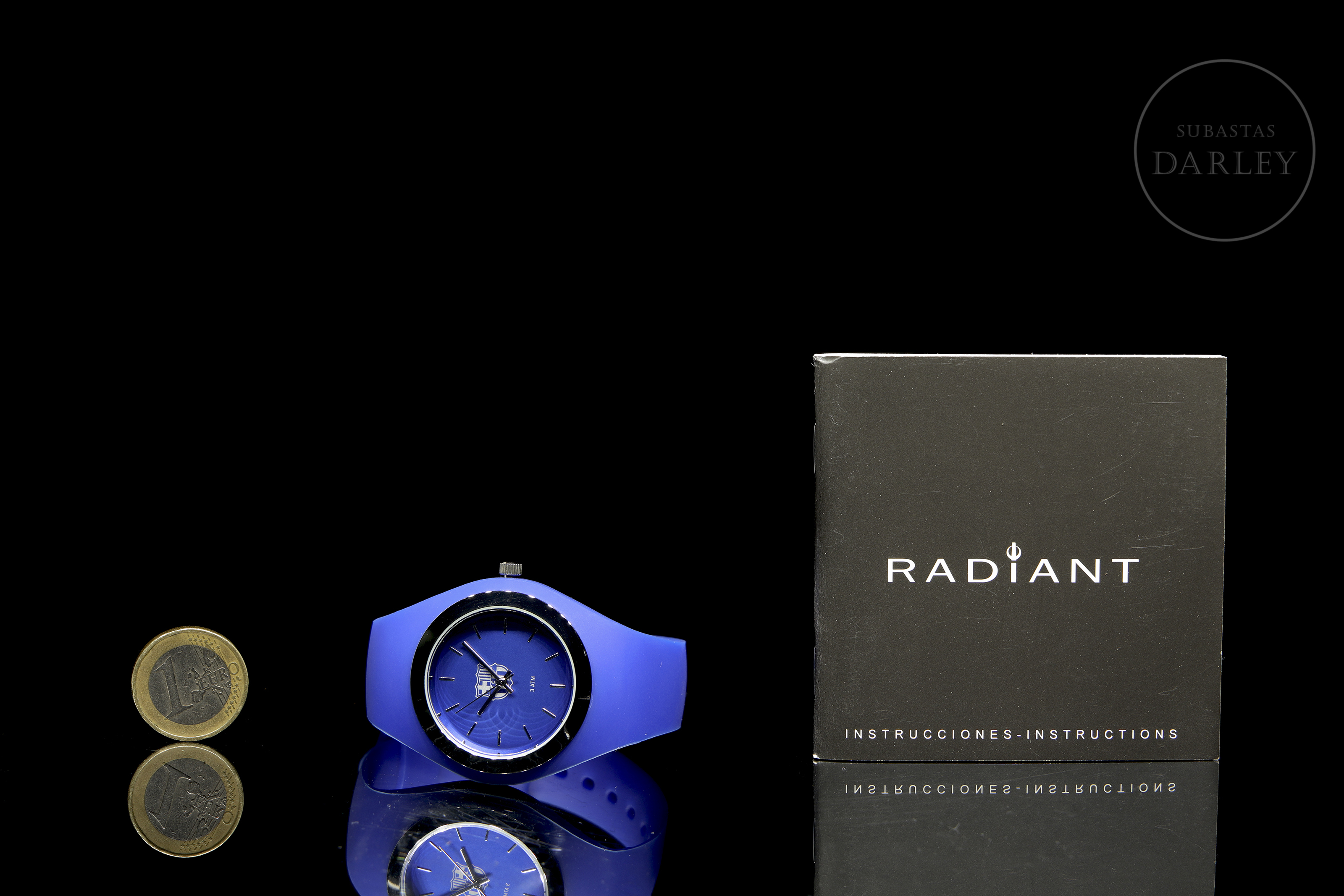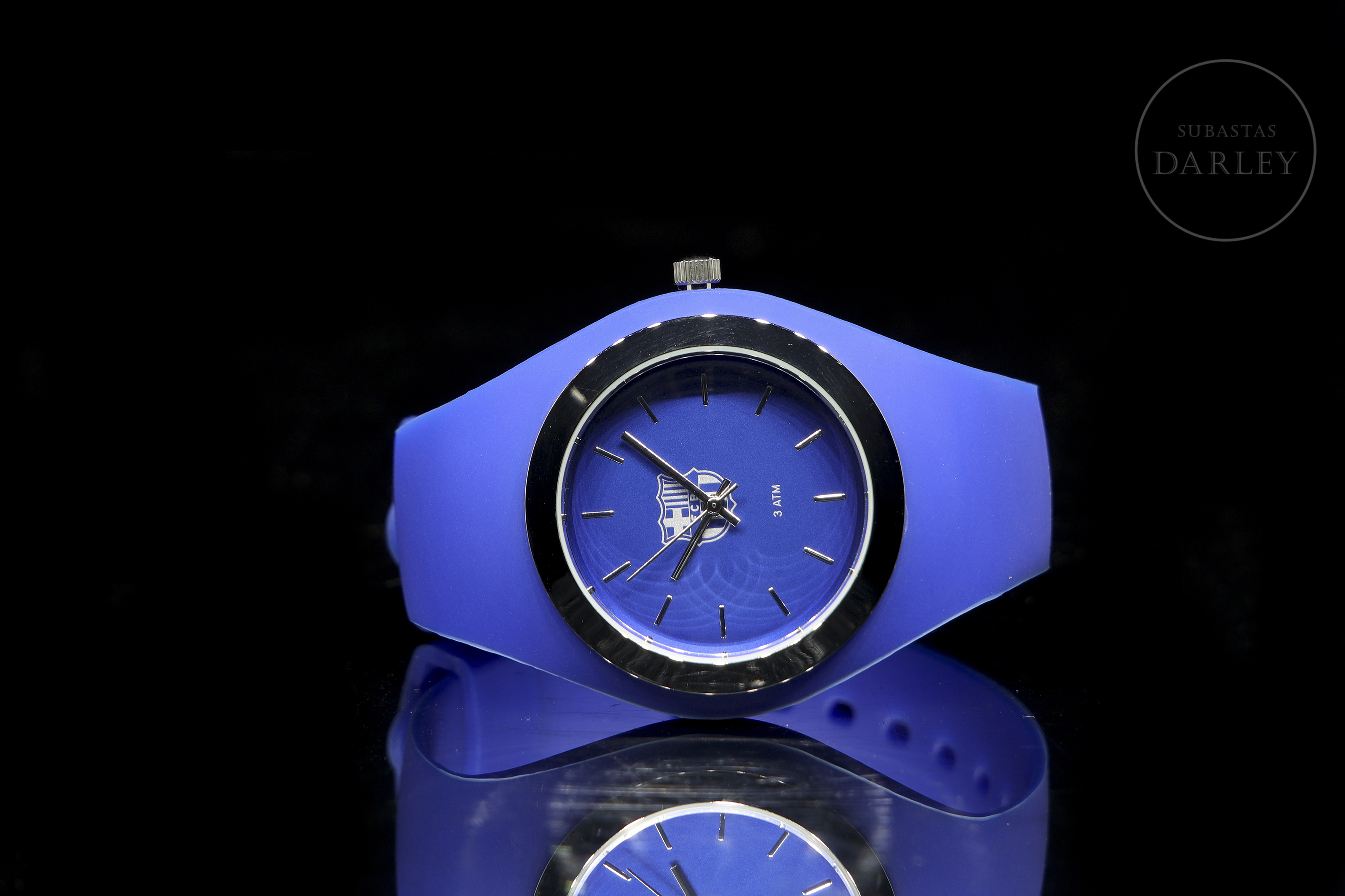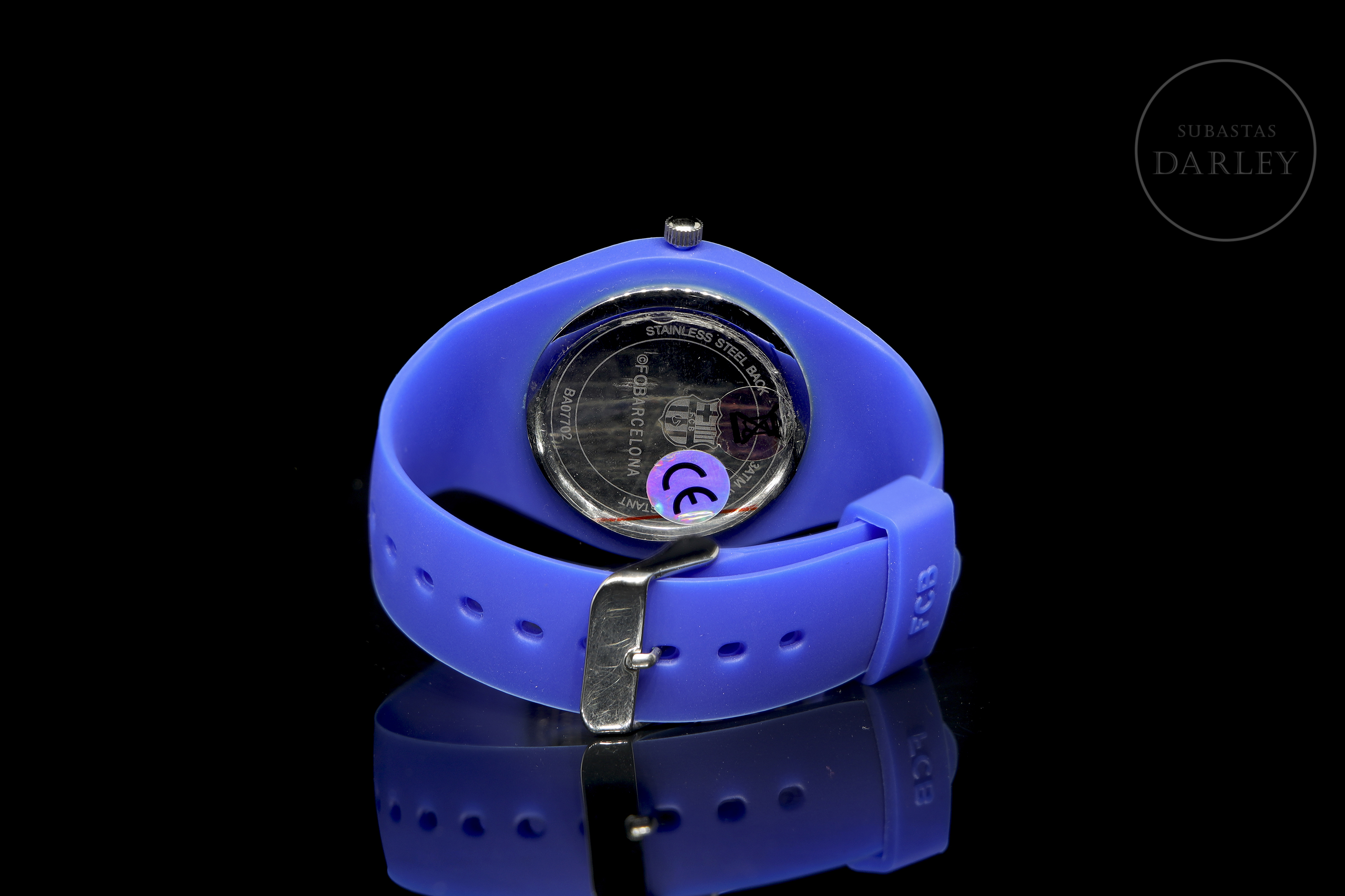 Reloj unisex Radiant F.c. Barcelona. Reloj de silicona azul con corona de metal y correa de silicona. Esfera azul con escudo del club. Movimiento de cuarzo.