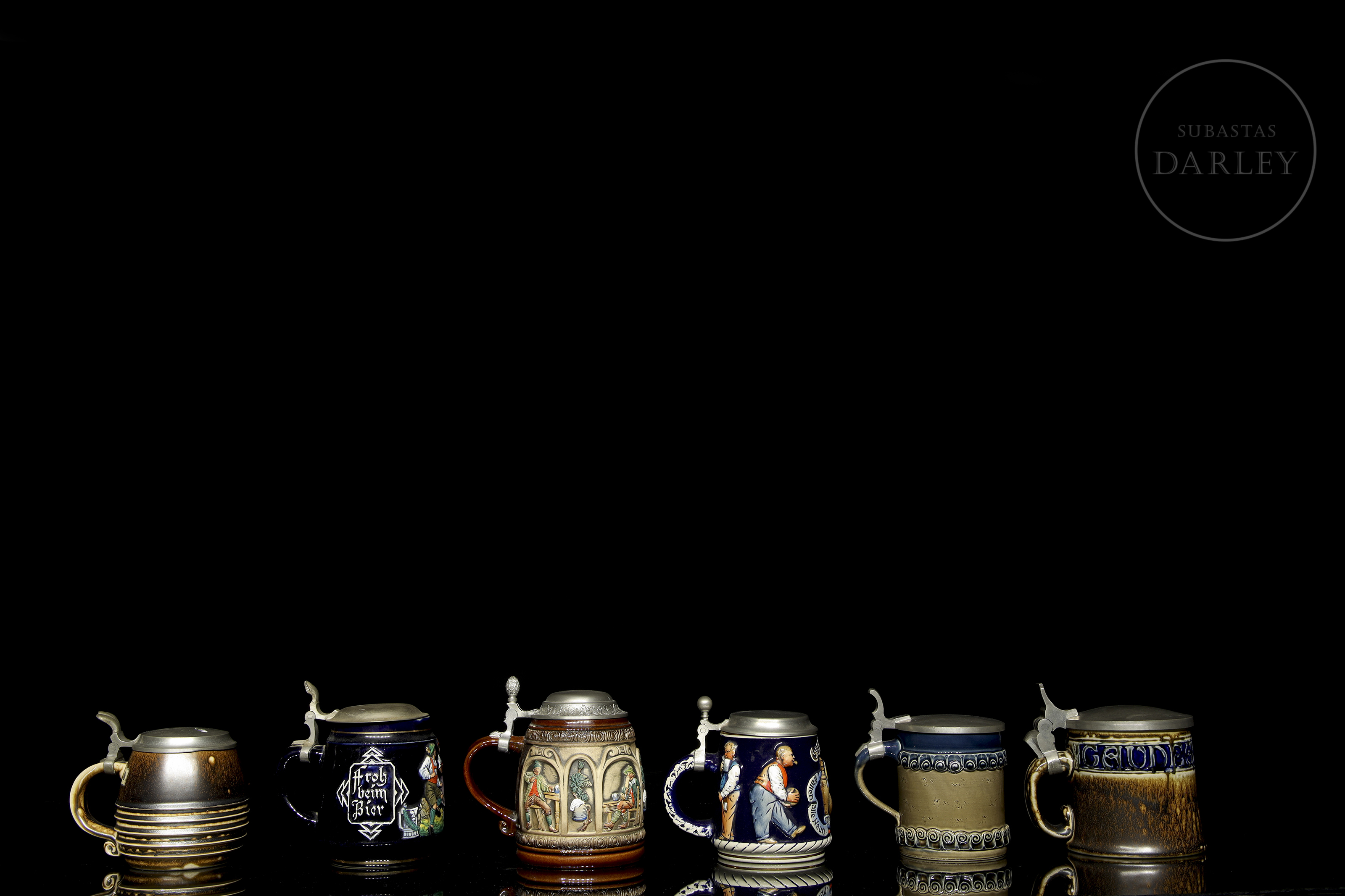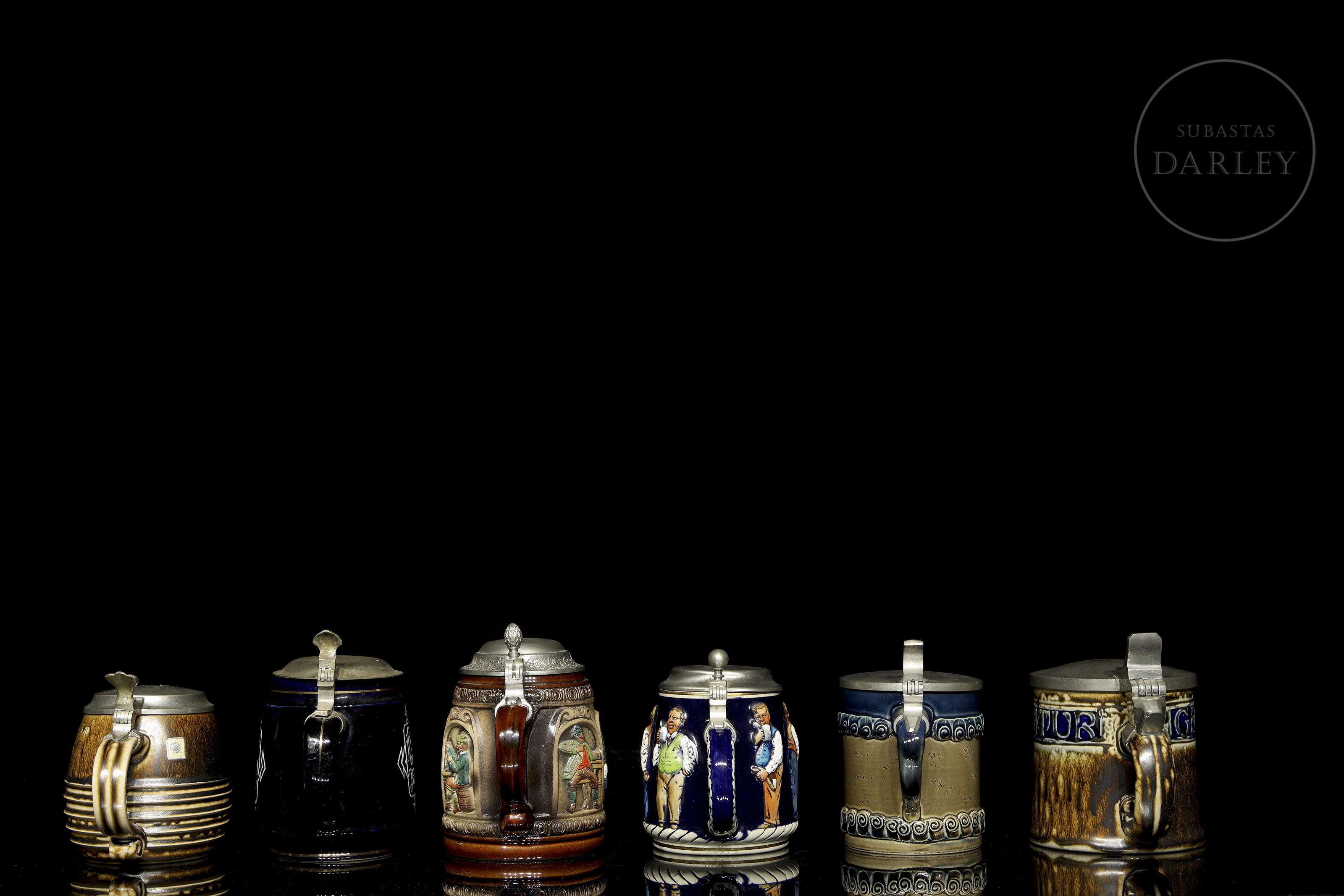 Inicio > Venta Directa > Cerámica y Porcelana > Seis jarras de cerámica esmaltada para cerveza, s.XX