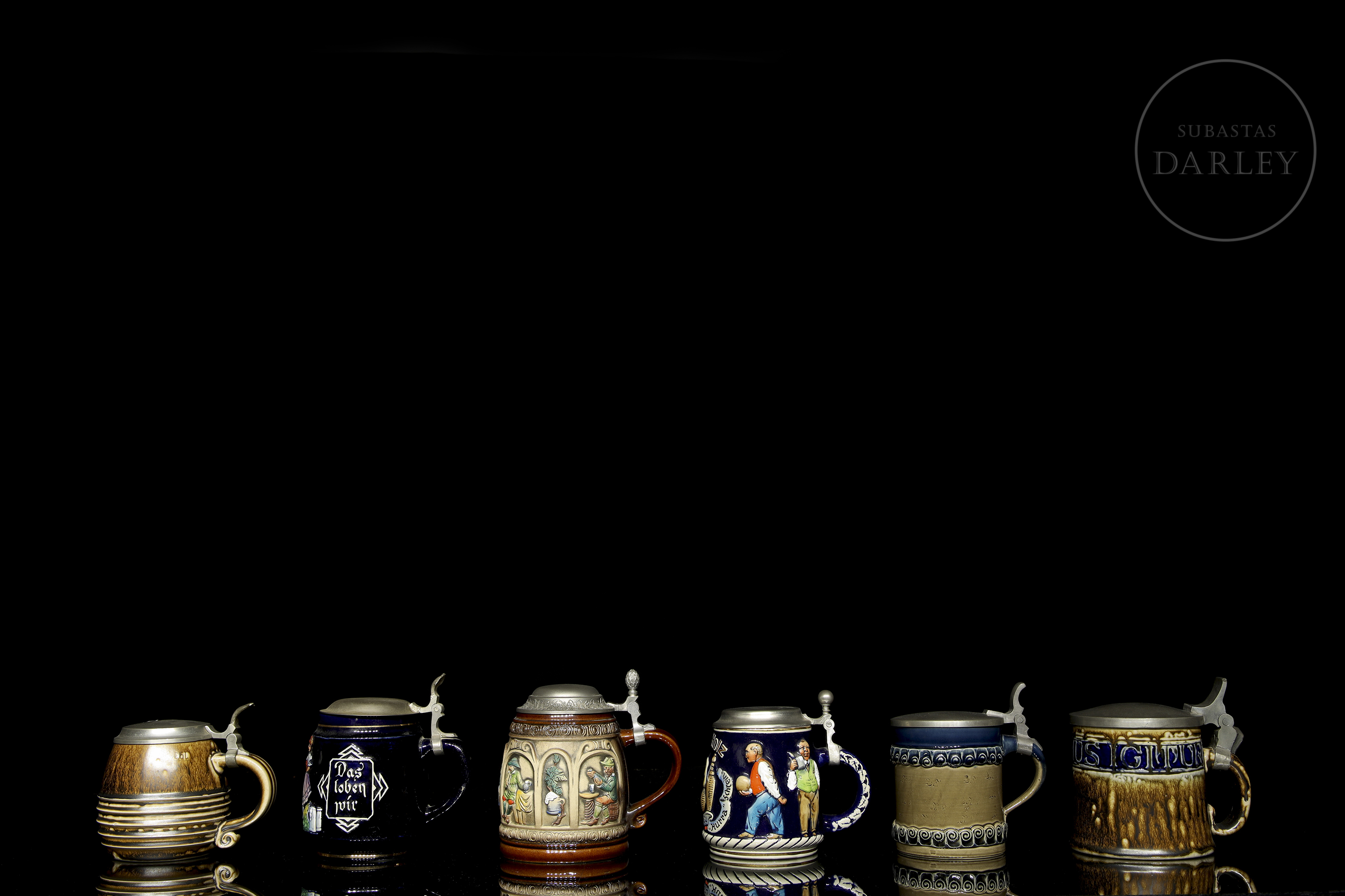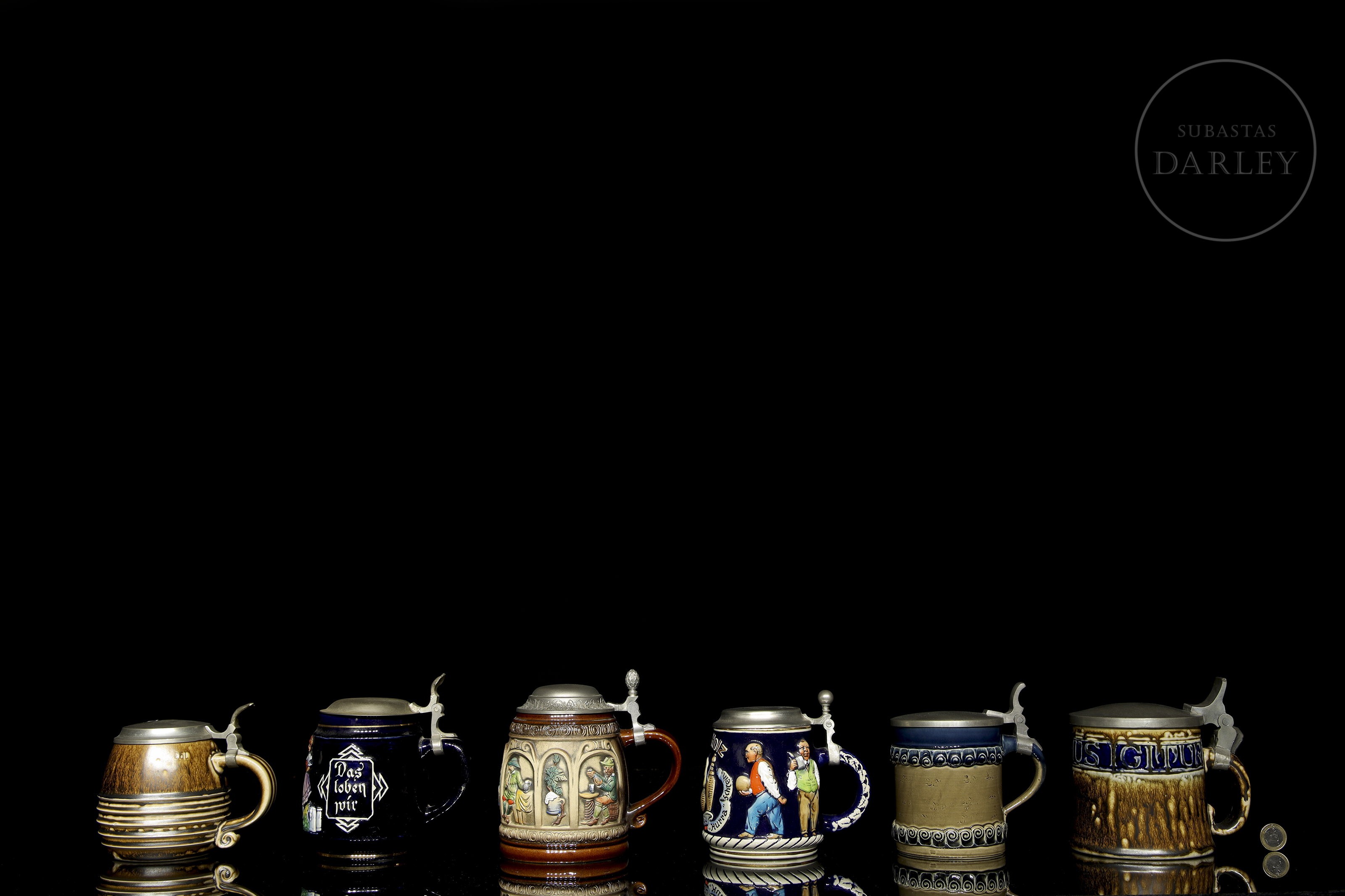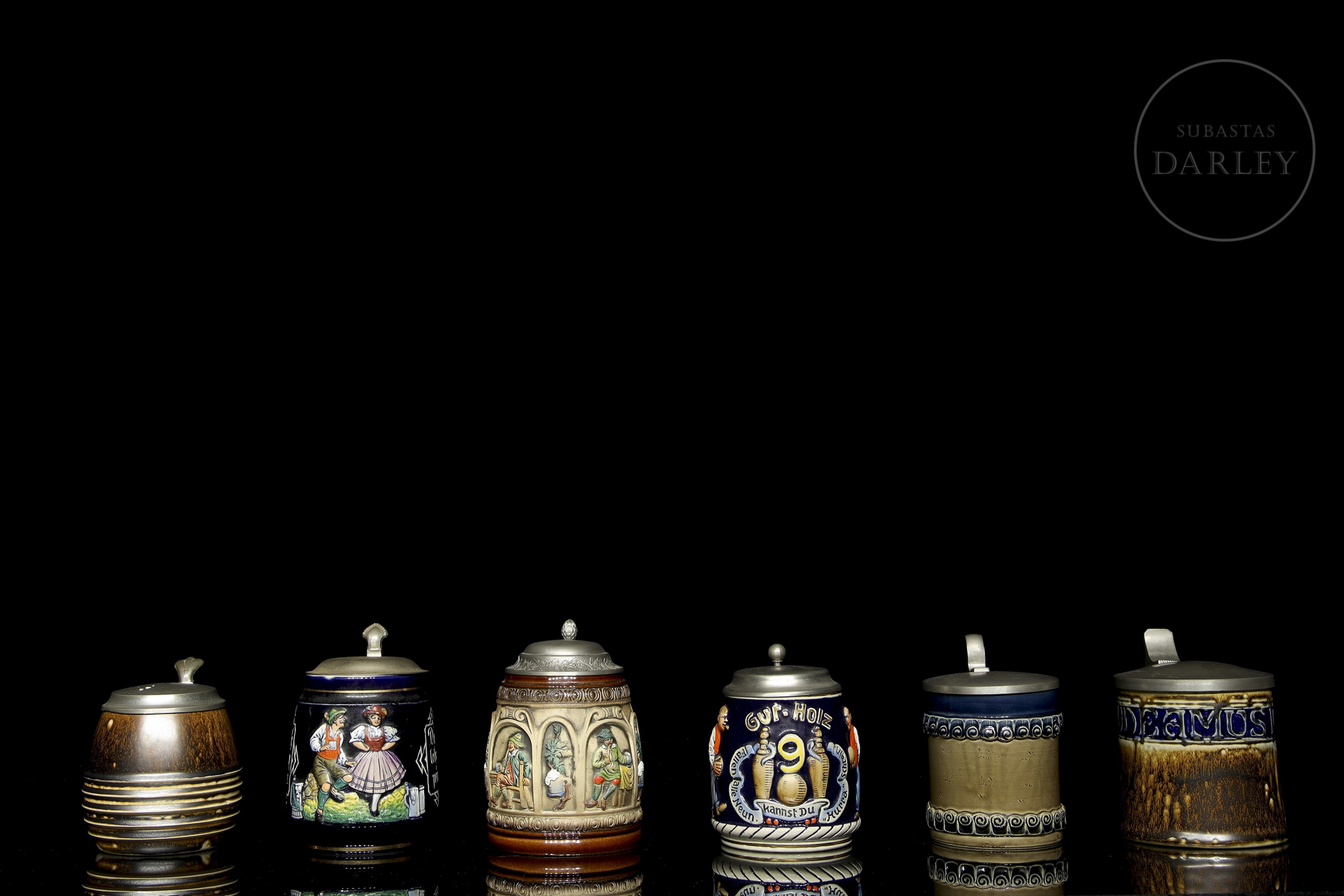 Seis jarras de cerámica esmaltada para cerveza, s.XX