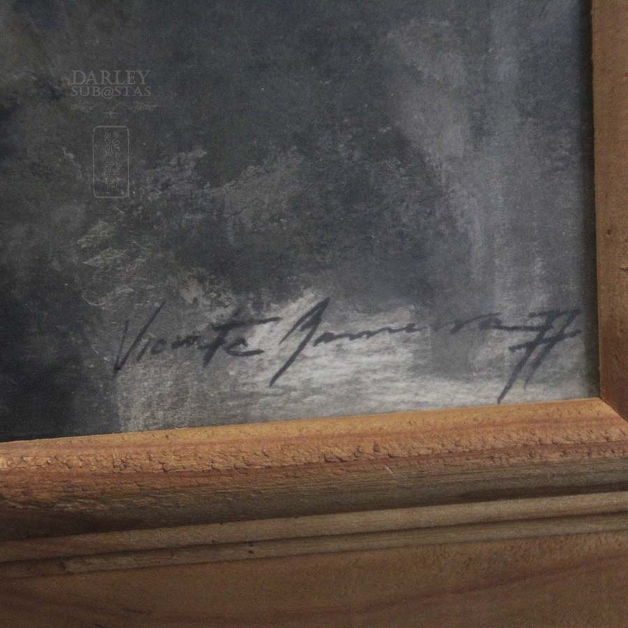 Obra realizada y firmada por Vicente Barreira 77 (nieto), realizado en lápiz color/acuarela.