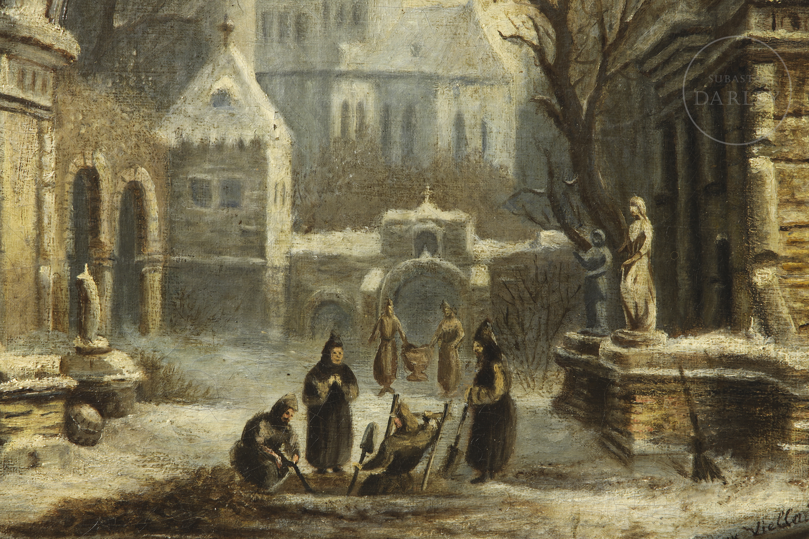 Inicio > Venta Directa > Pintura Siglo XIX-XX > Virginie Viellard (s.XIX-XX) "Monjes en el claustro en invierno"