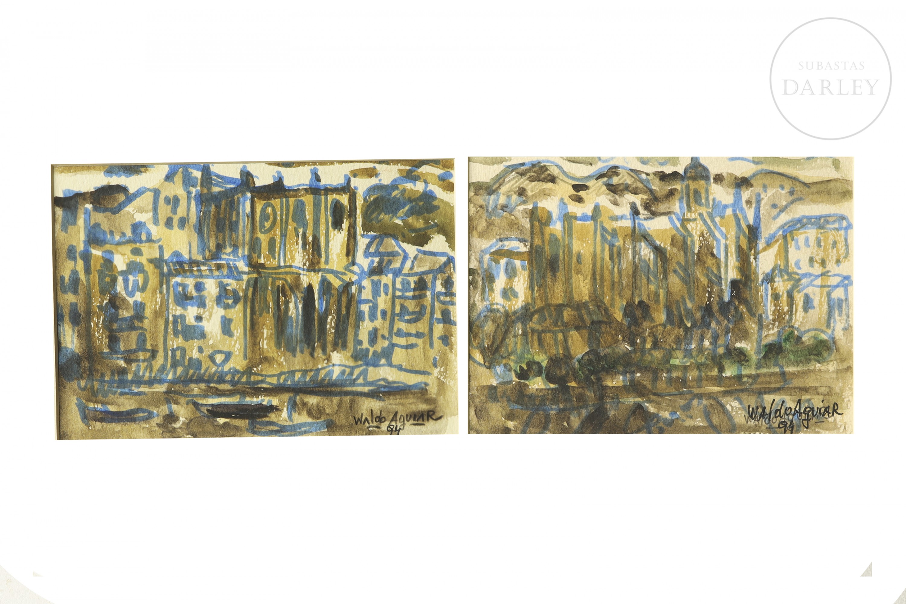 Inicio > Venta Directa > Dibujo - Acuarela > Waldo Aguiar y Carmona (1930-2000) "Pareja de paisajes", 1994
