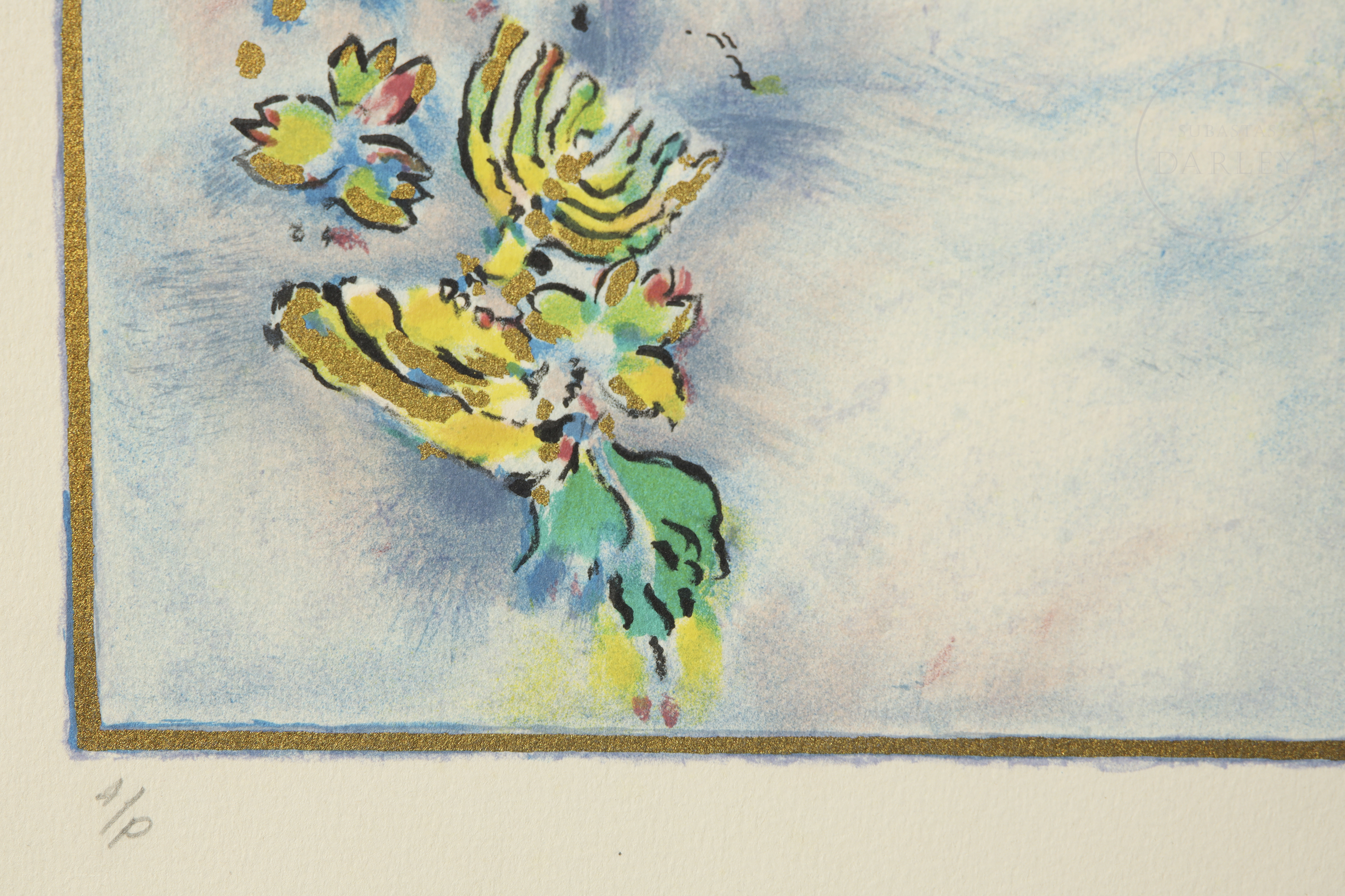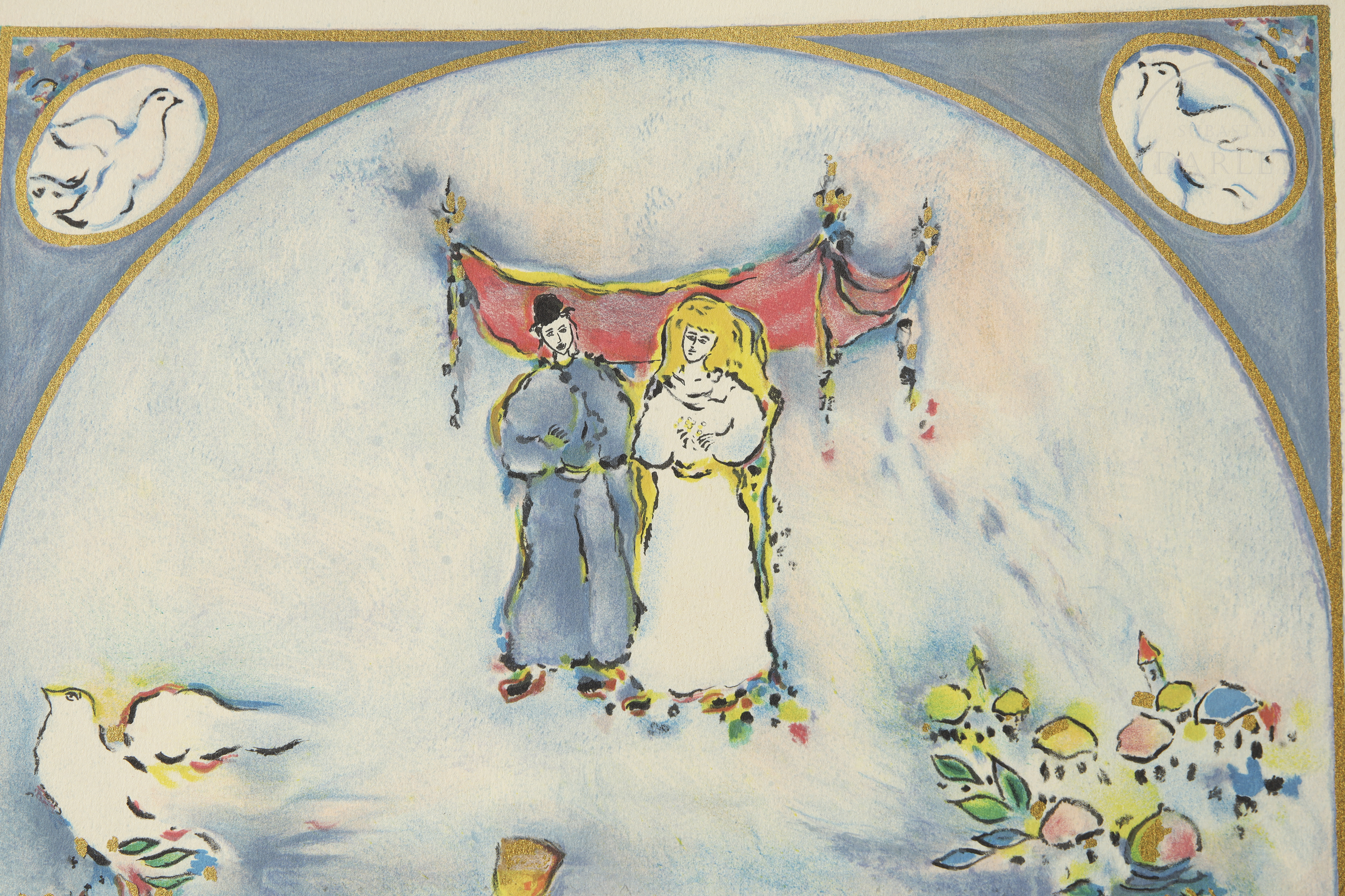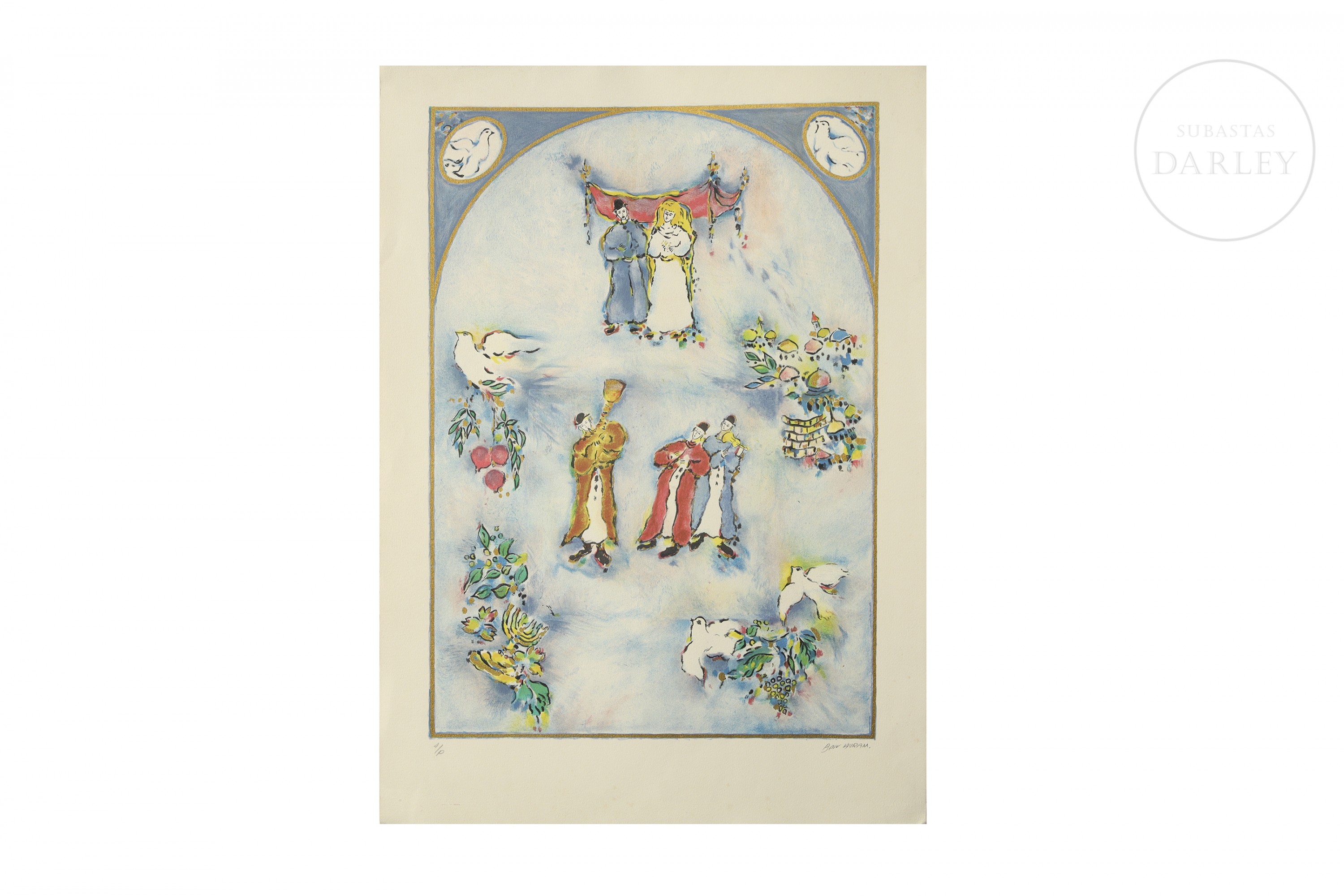 丝网印刷于纸上。构图遵循现代主义范式,描绘犹太教仪式的订婚仪式。右下角签名“Berv Avram”。左下角编号“4/10”。