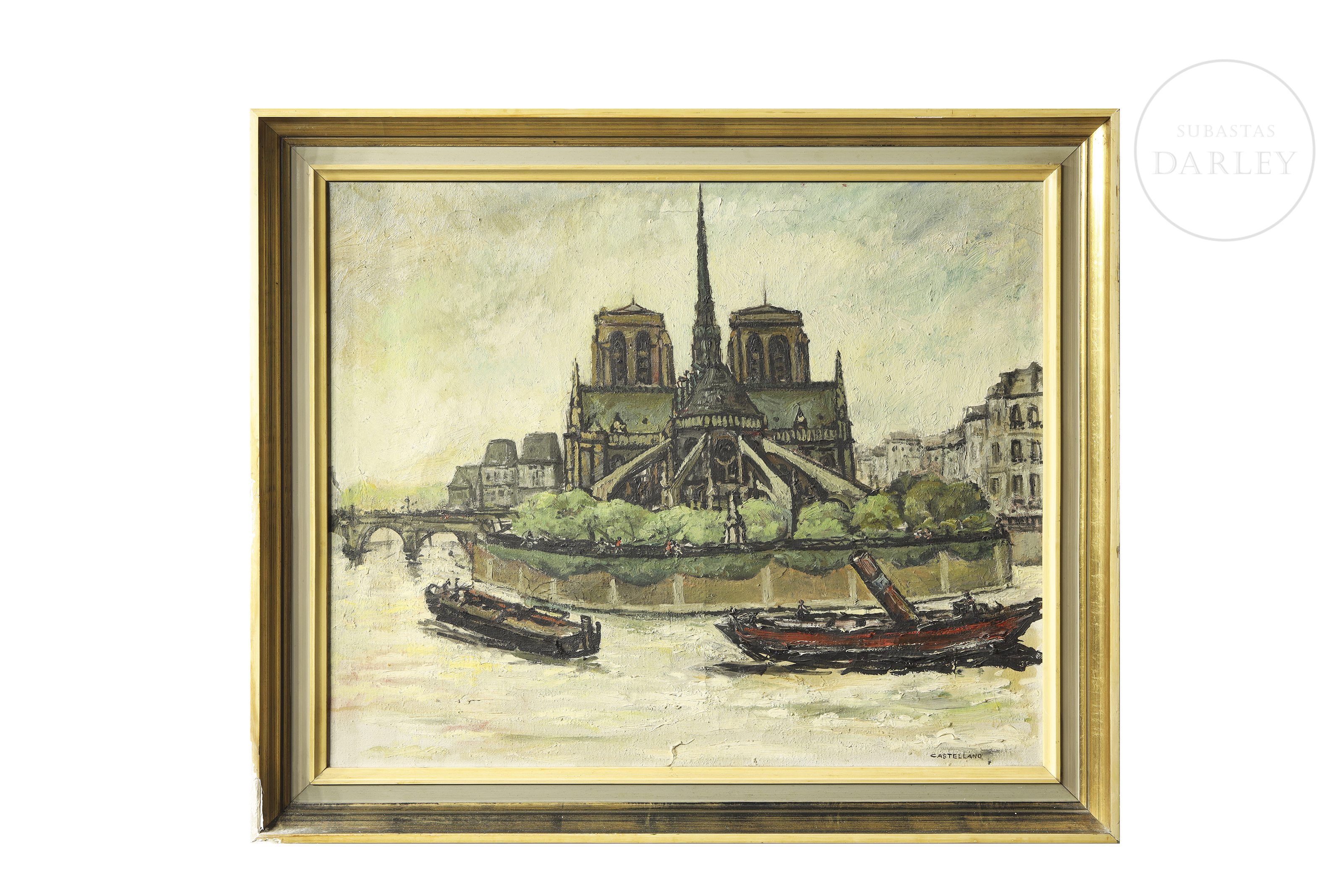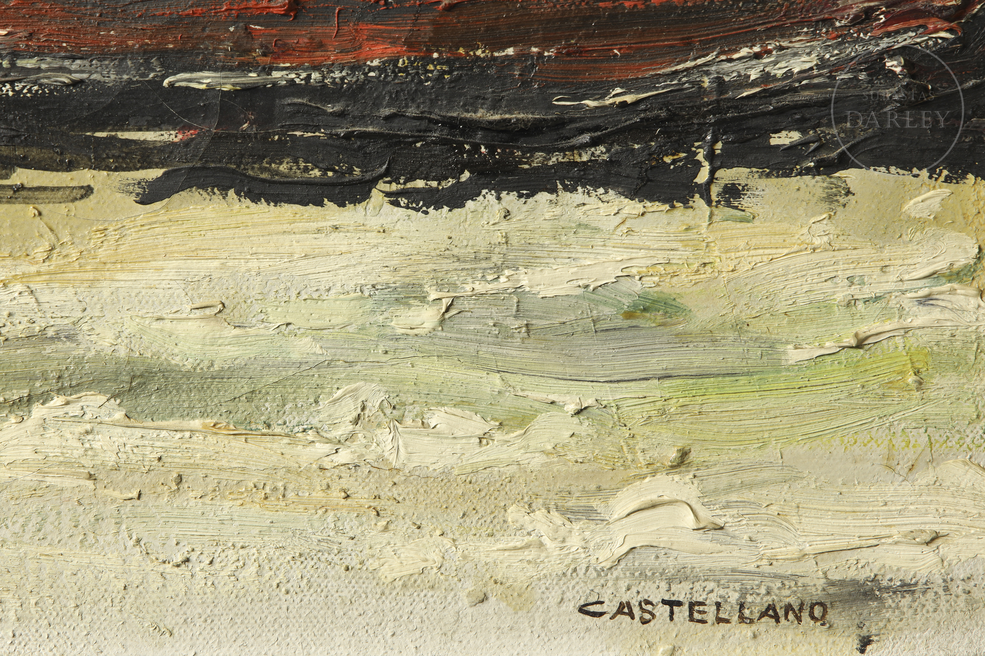 Signed ‘Castellano’ in the lower right corner of the work. There is damage due to cracks in the paint layer of the piece.