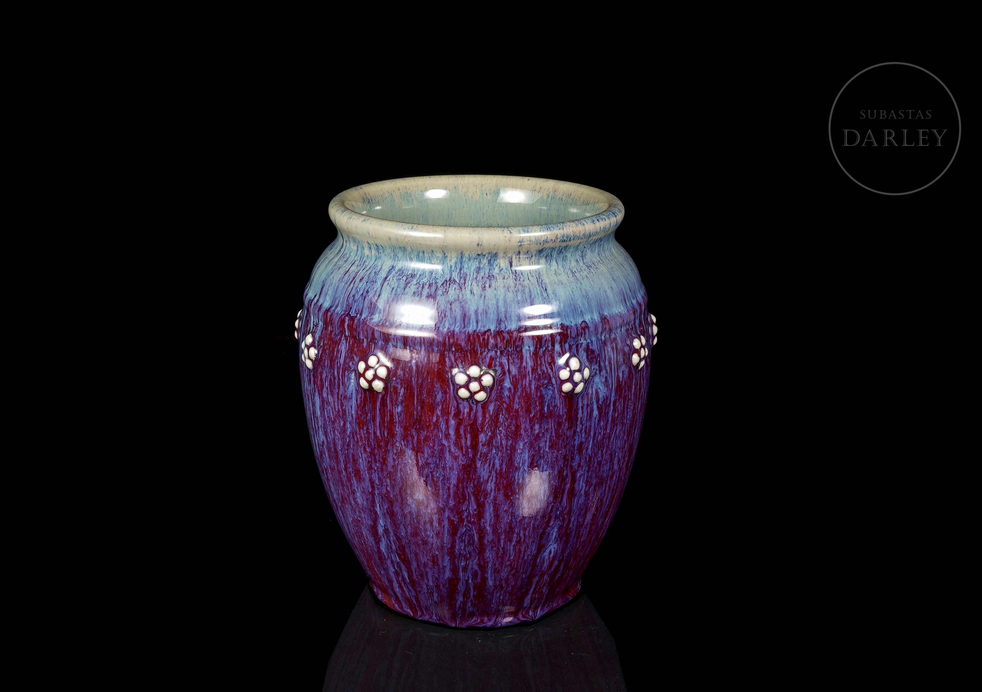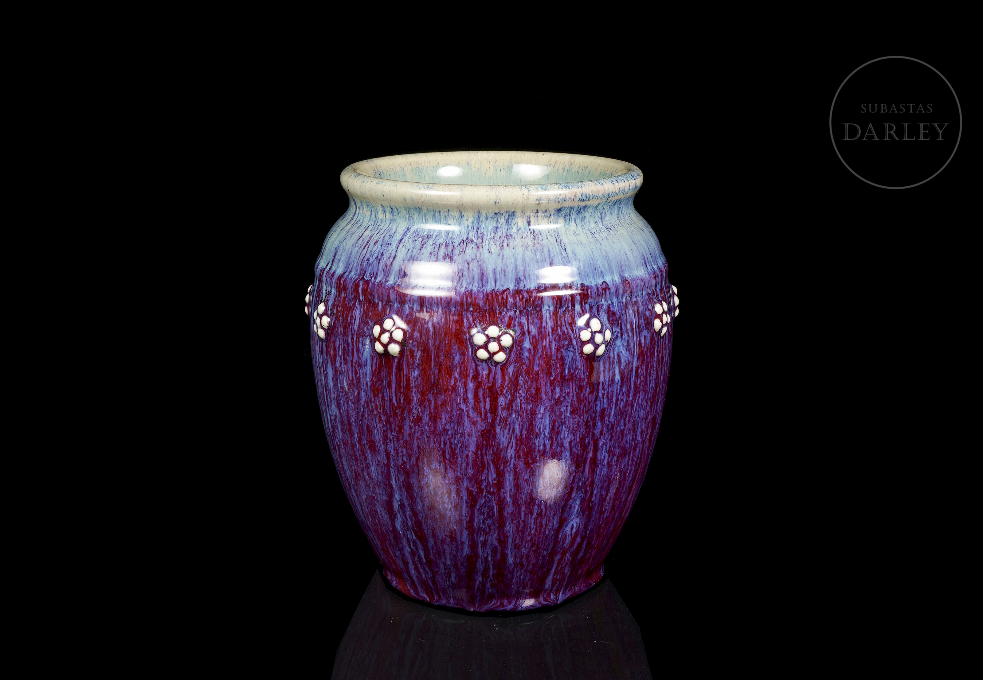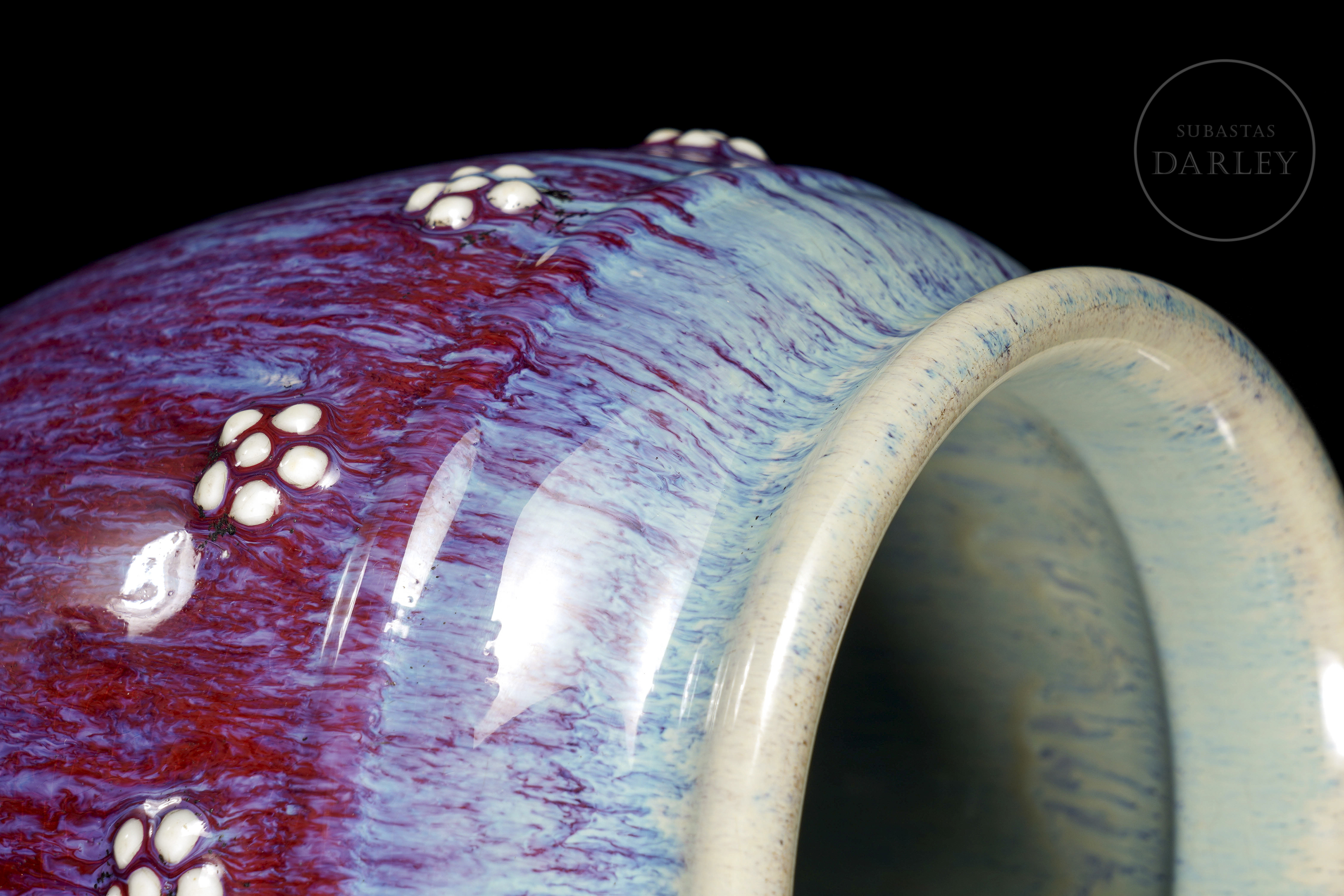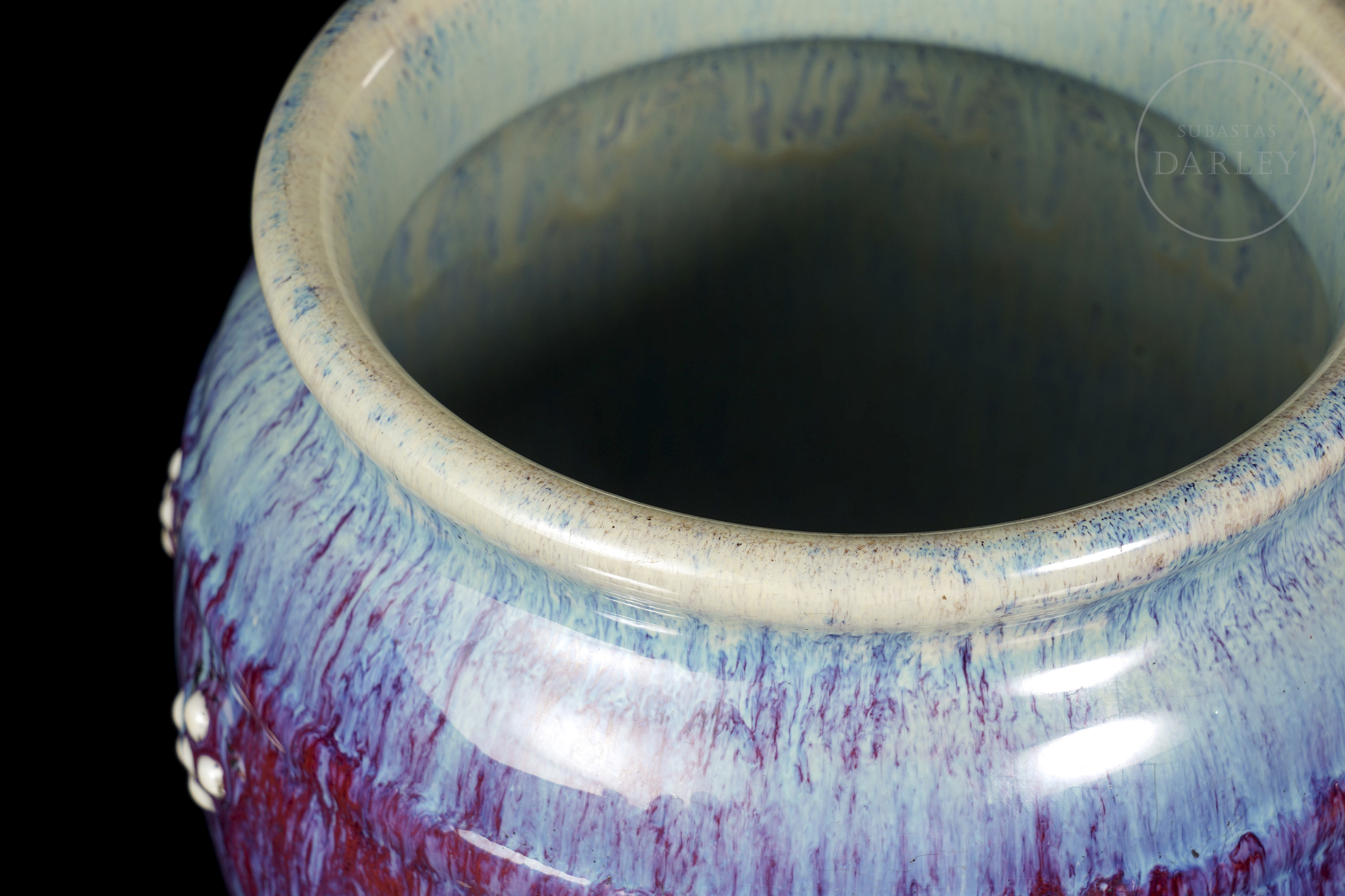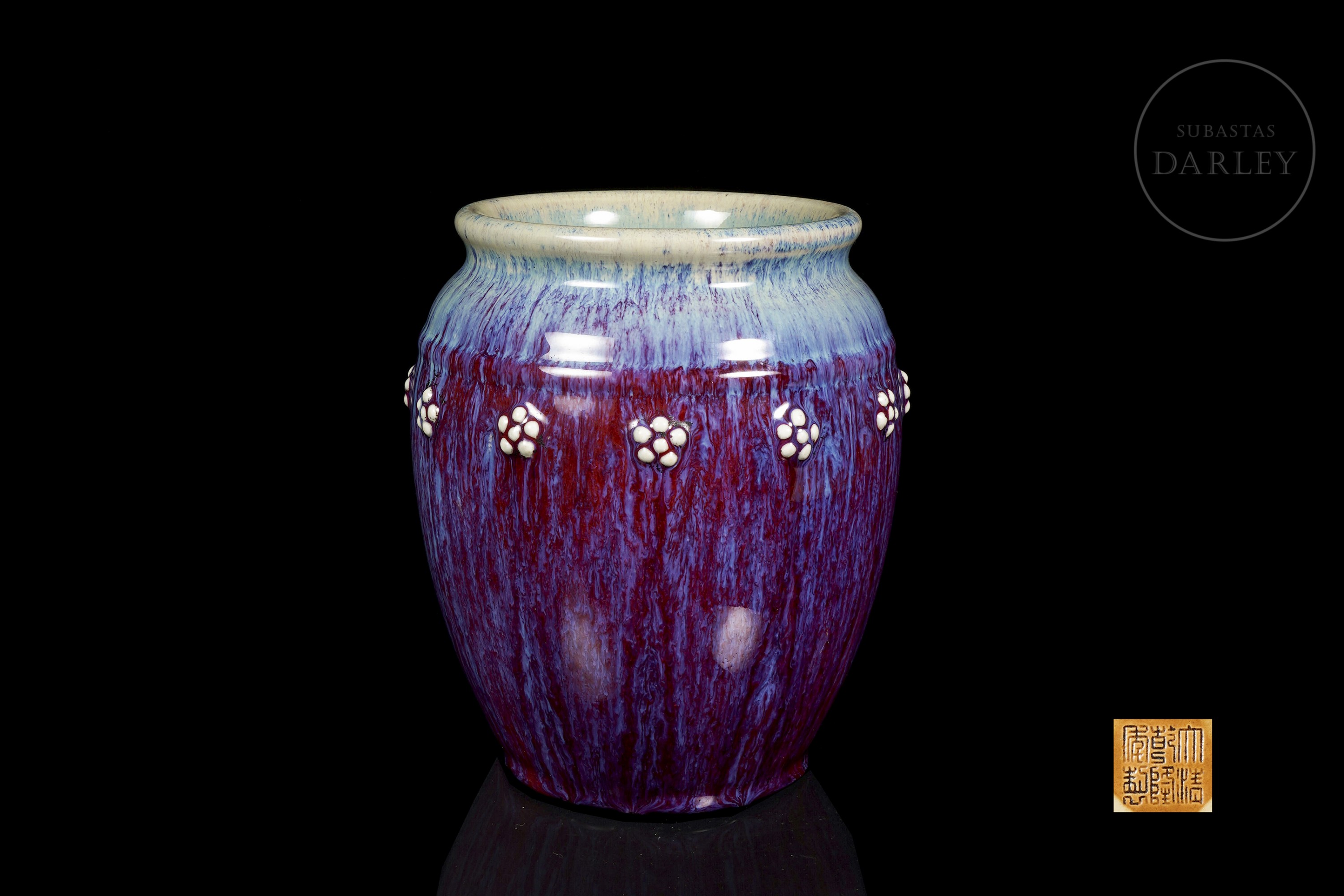 Ceramic vase with flambé glaze “Flowers,” marked Qianlong