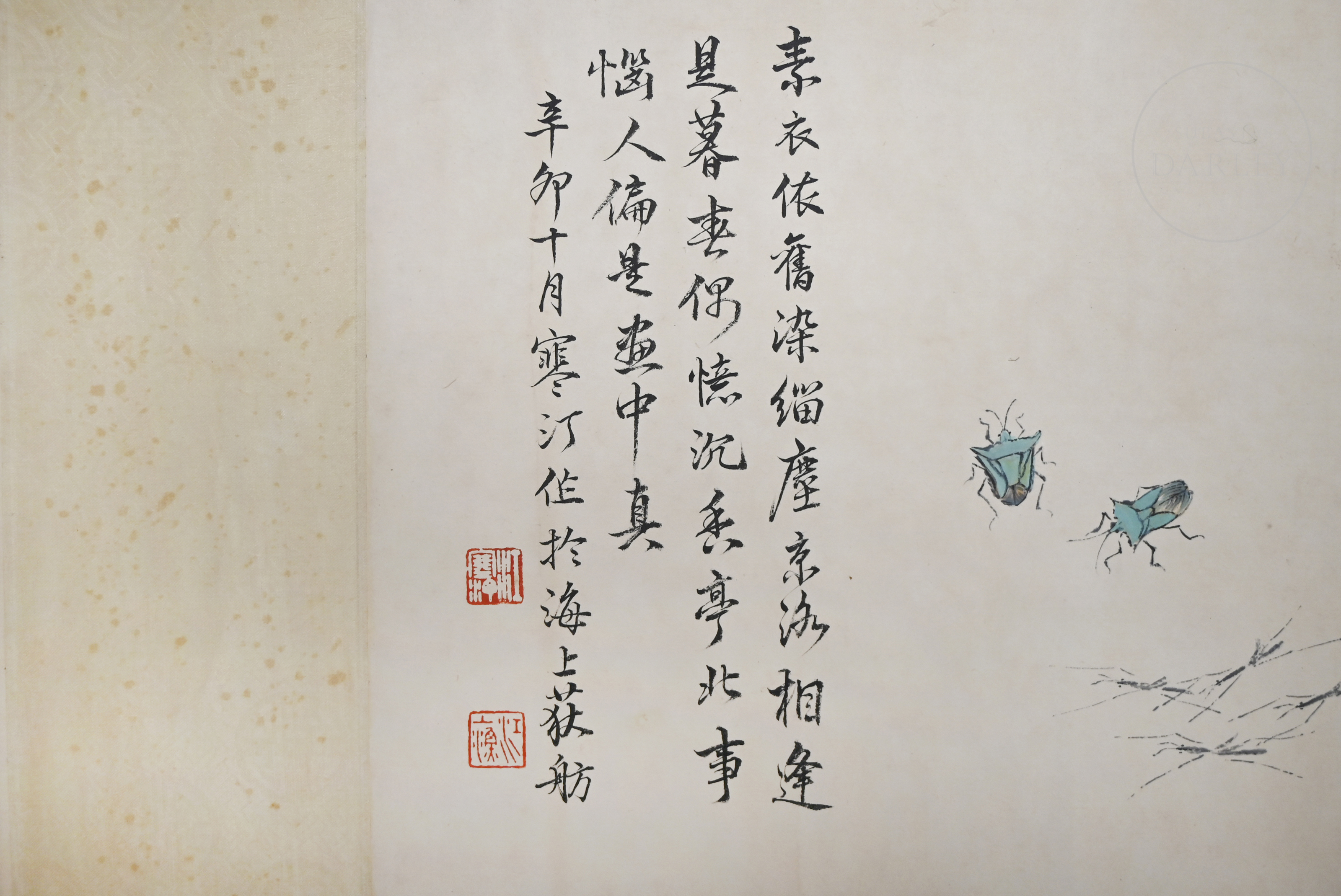 Chinese painting ‘Insects and Calligraphy’, signed Jiang Hanting