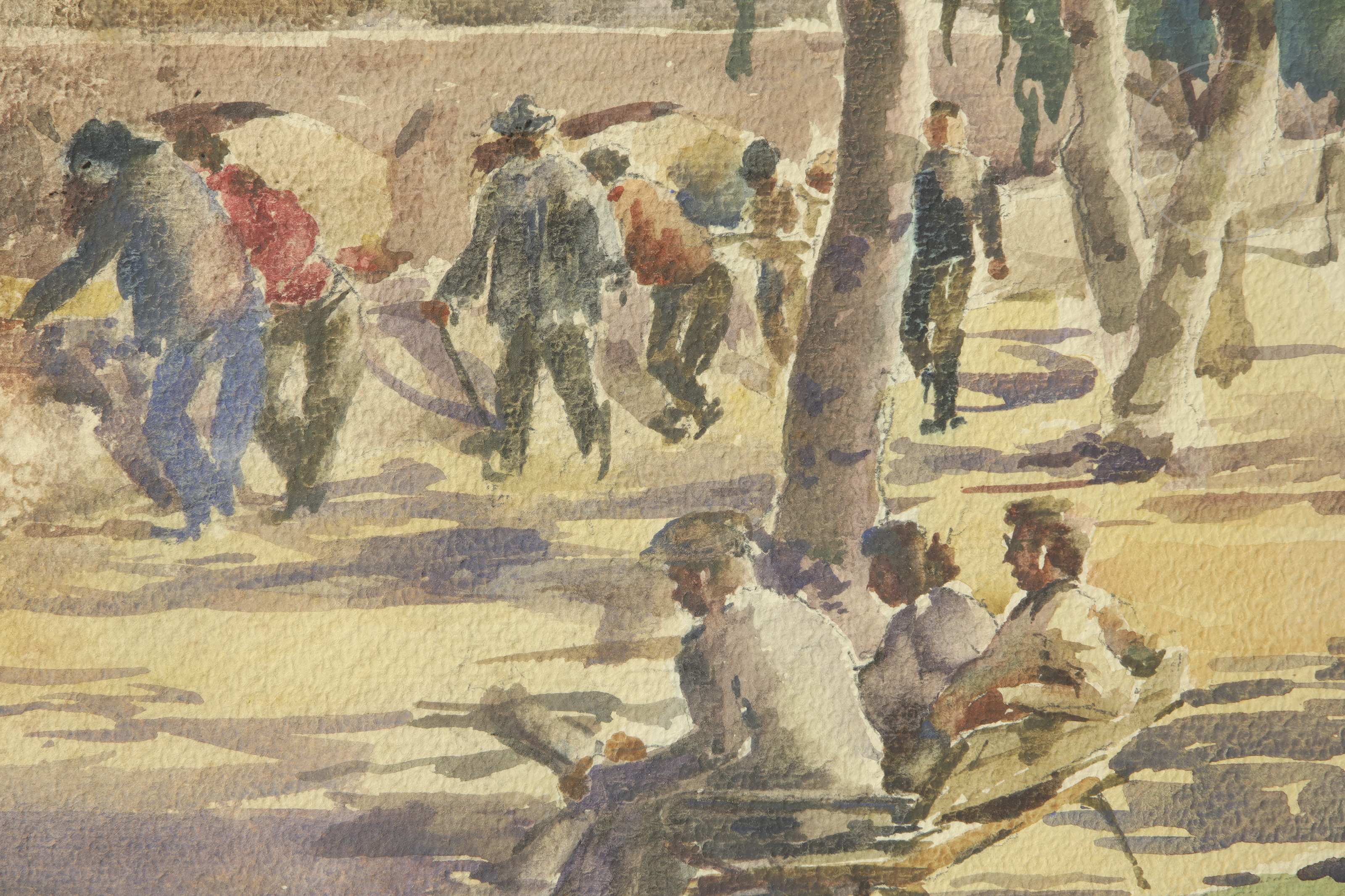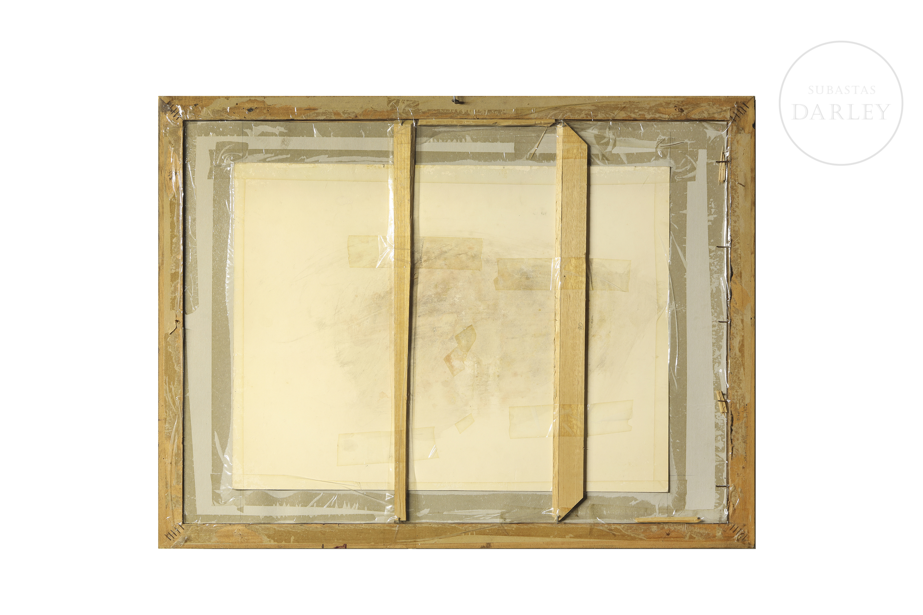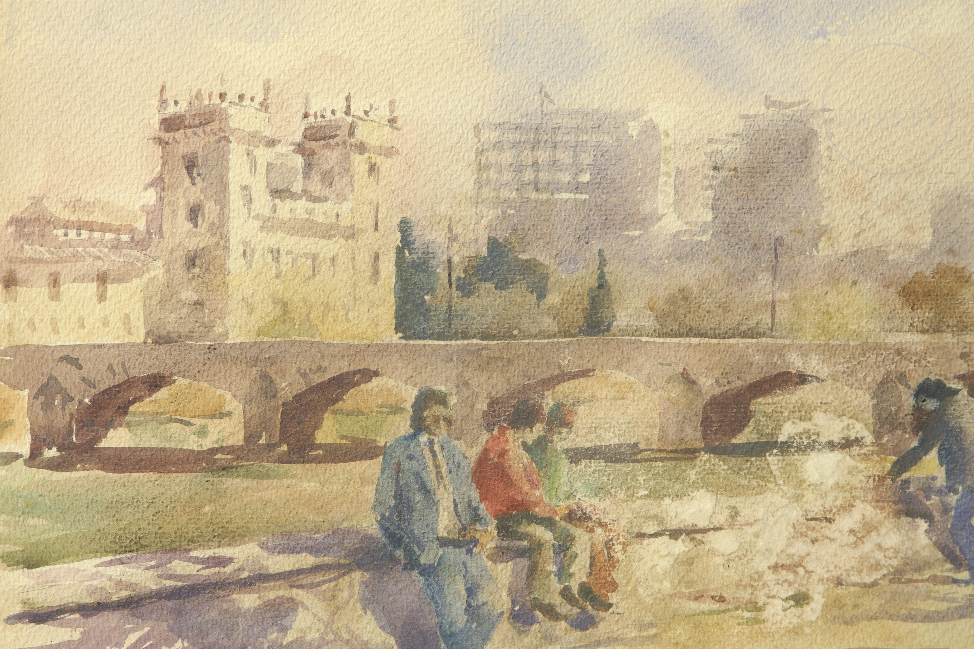 纸本水彩。右下角有签名及日期“F. Amoros/75”。