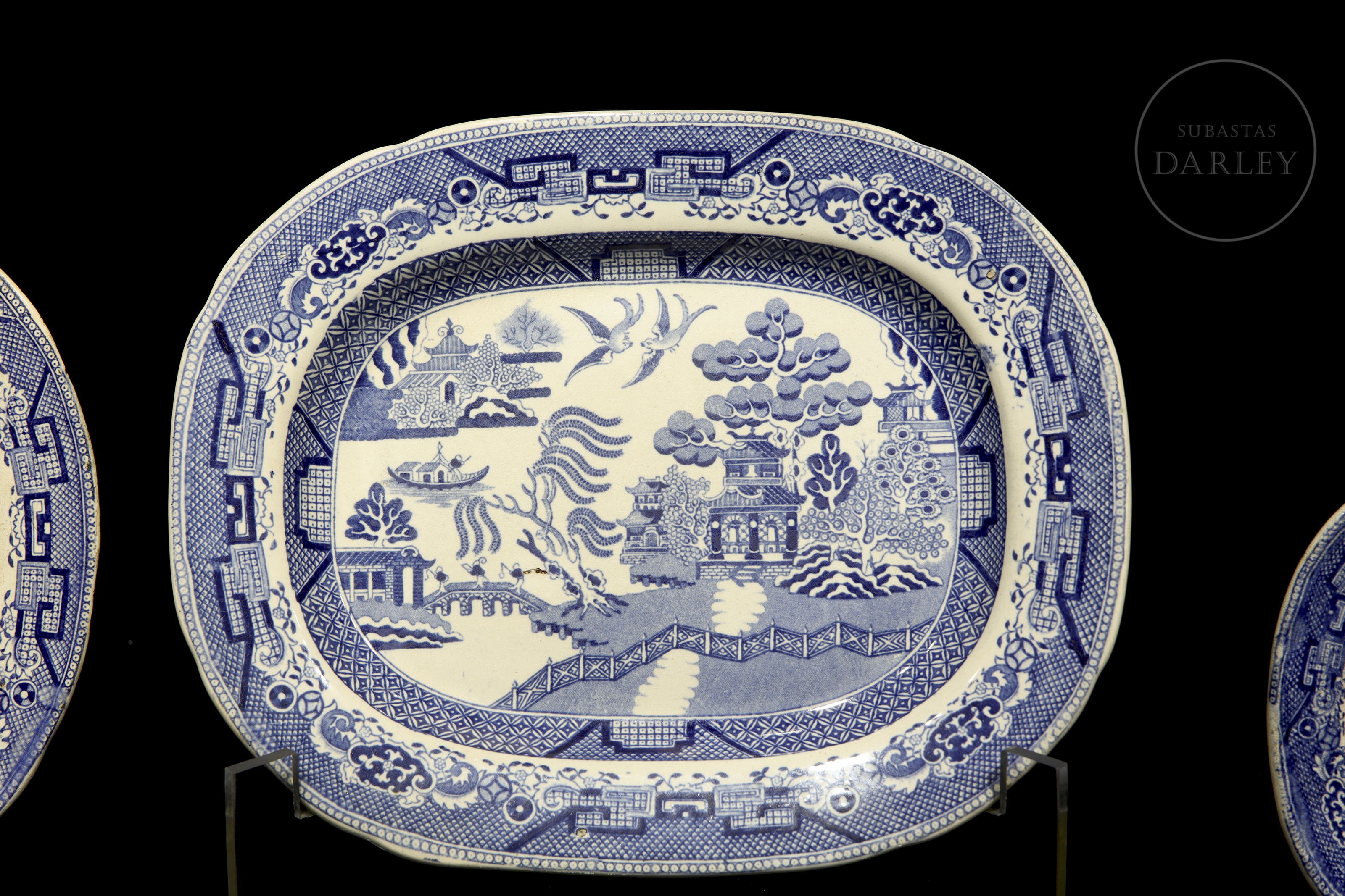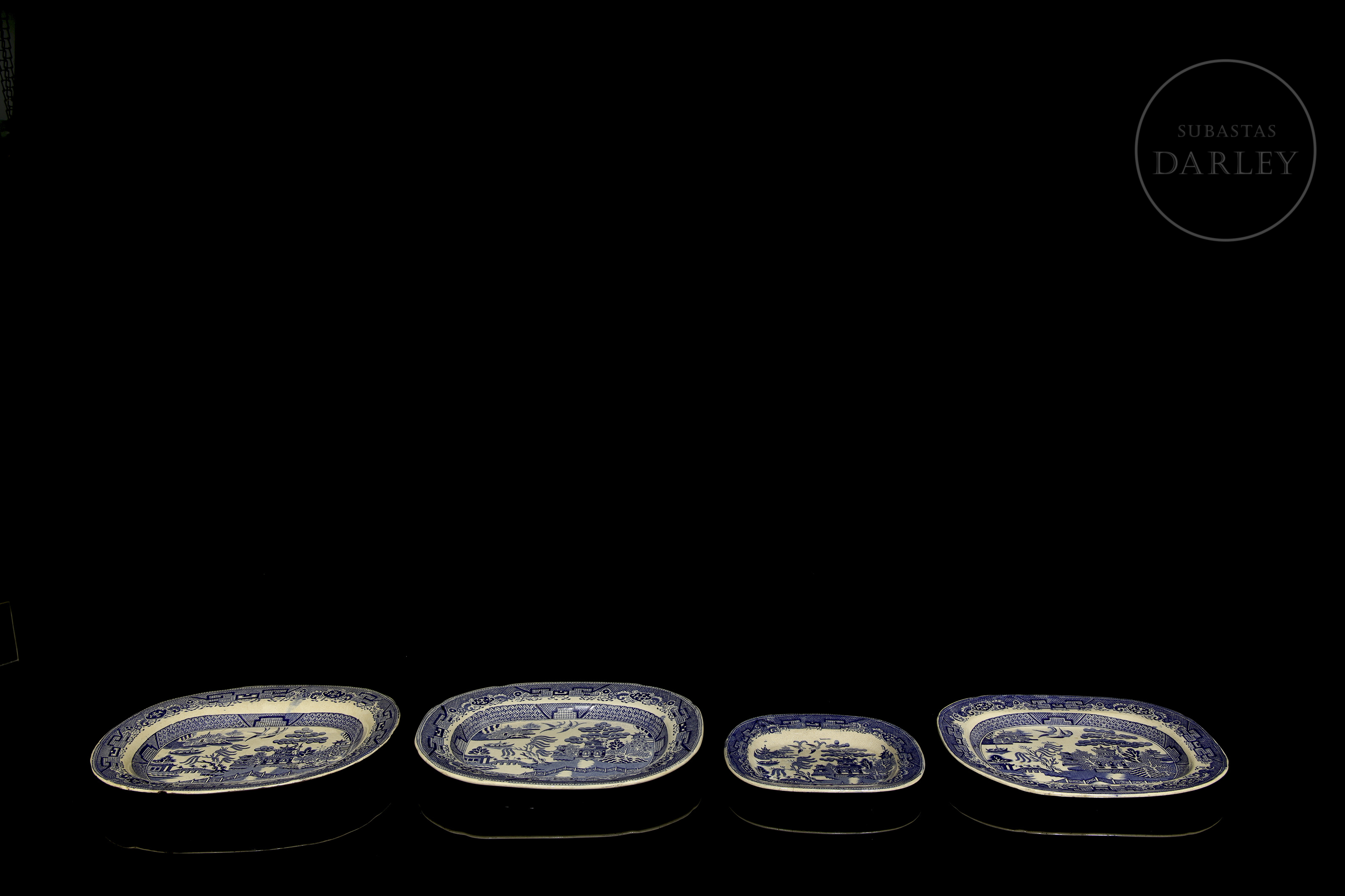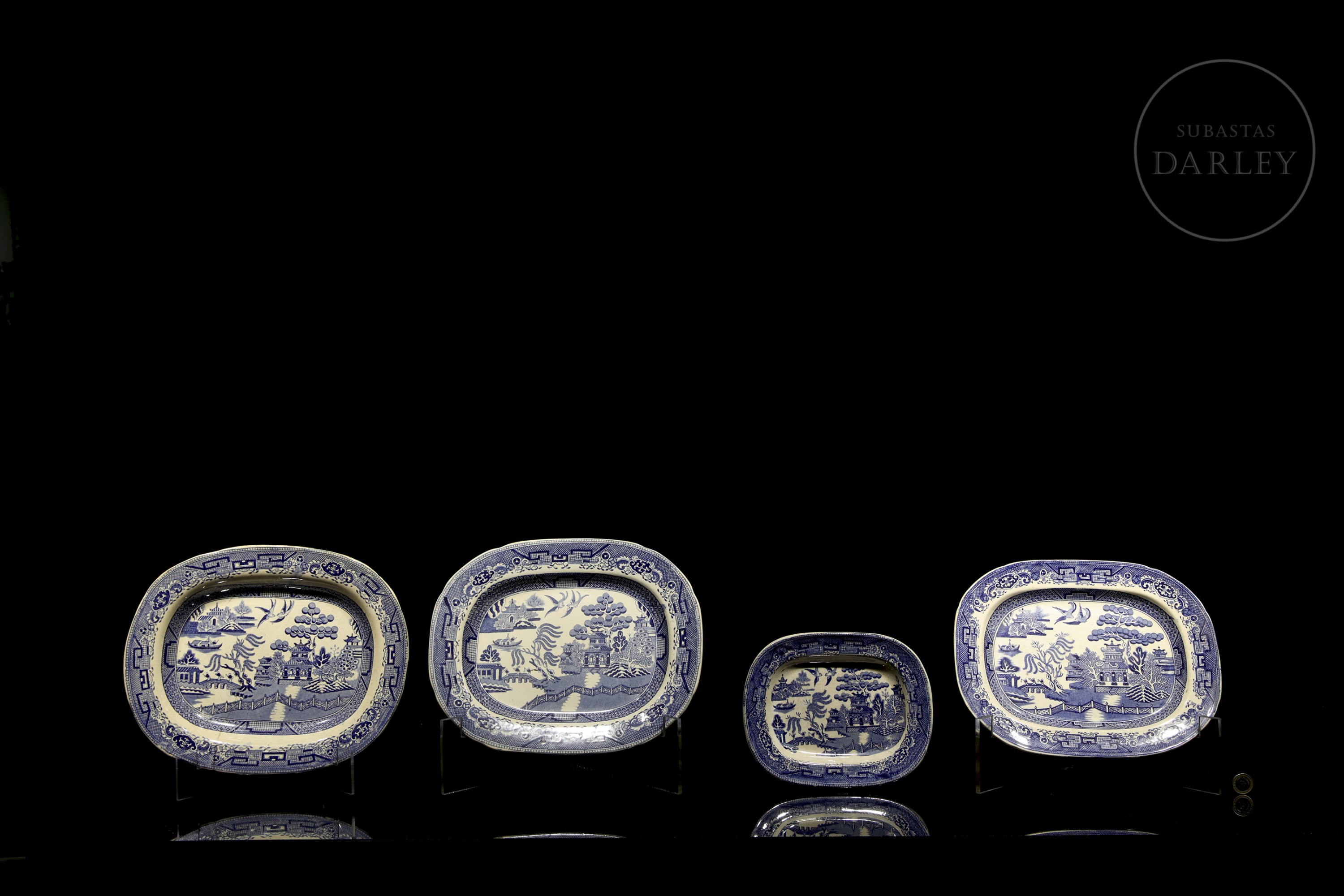 四只柳叶纹托盘,石质陶器,斯塔福德郡,十九世纪