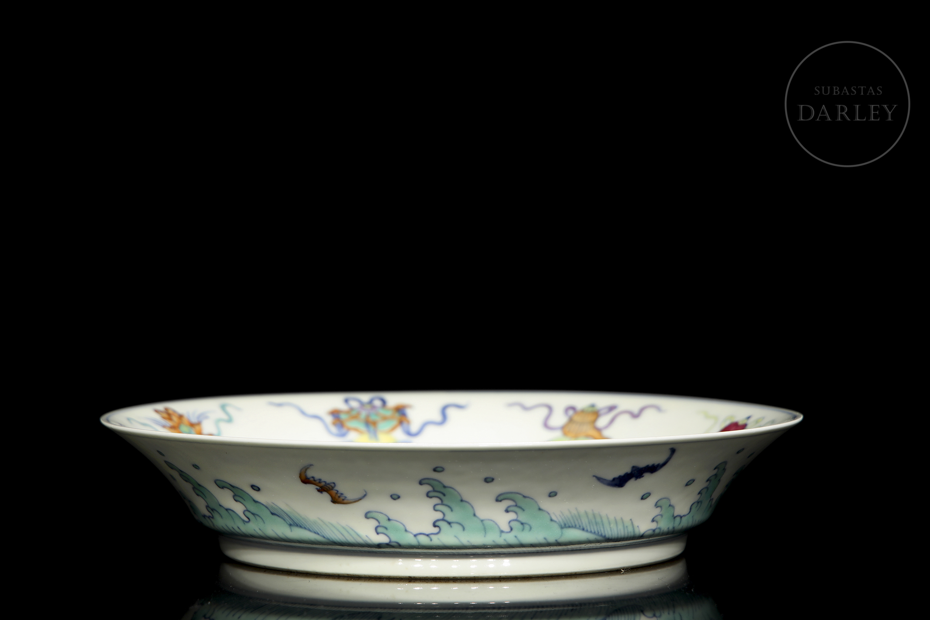 Glazed porcelain plate ‘Buddhist Emblems’, with Yongzheng mark