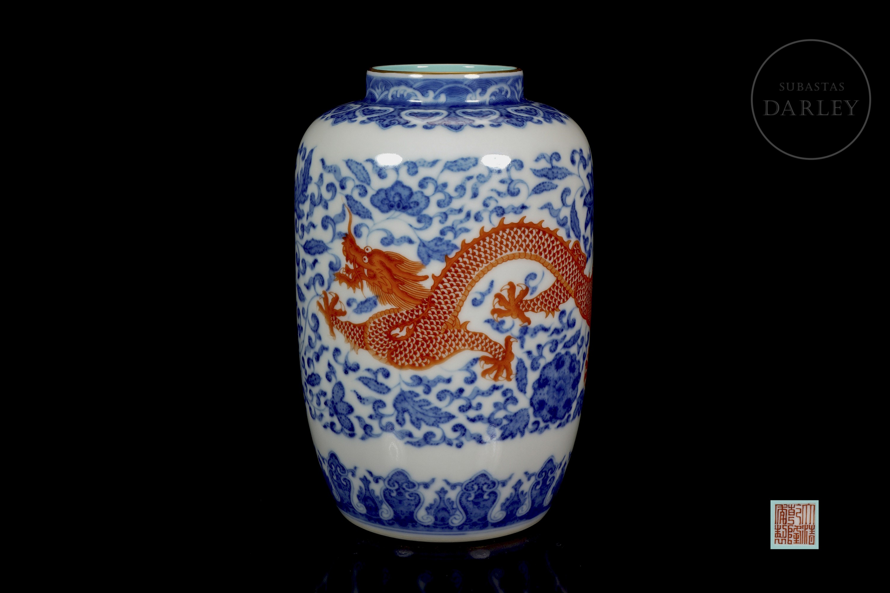 Glazed porcelain vase ‘Dragon’, with Qianlong seal
