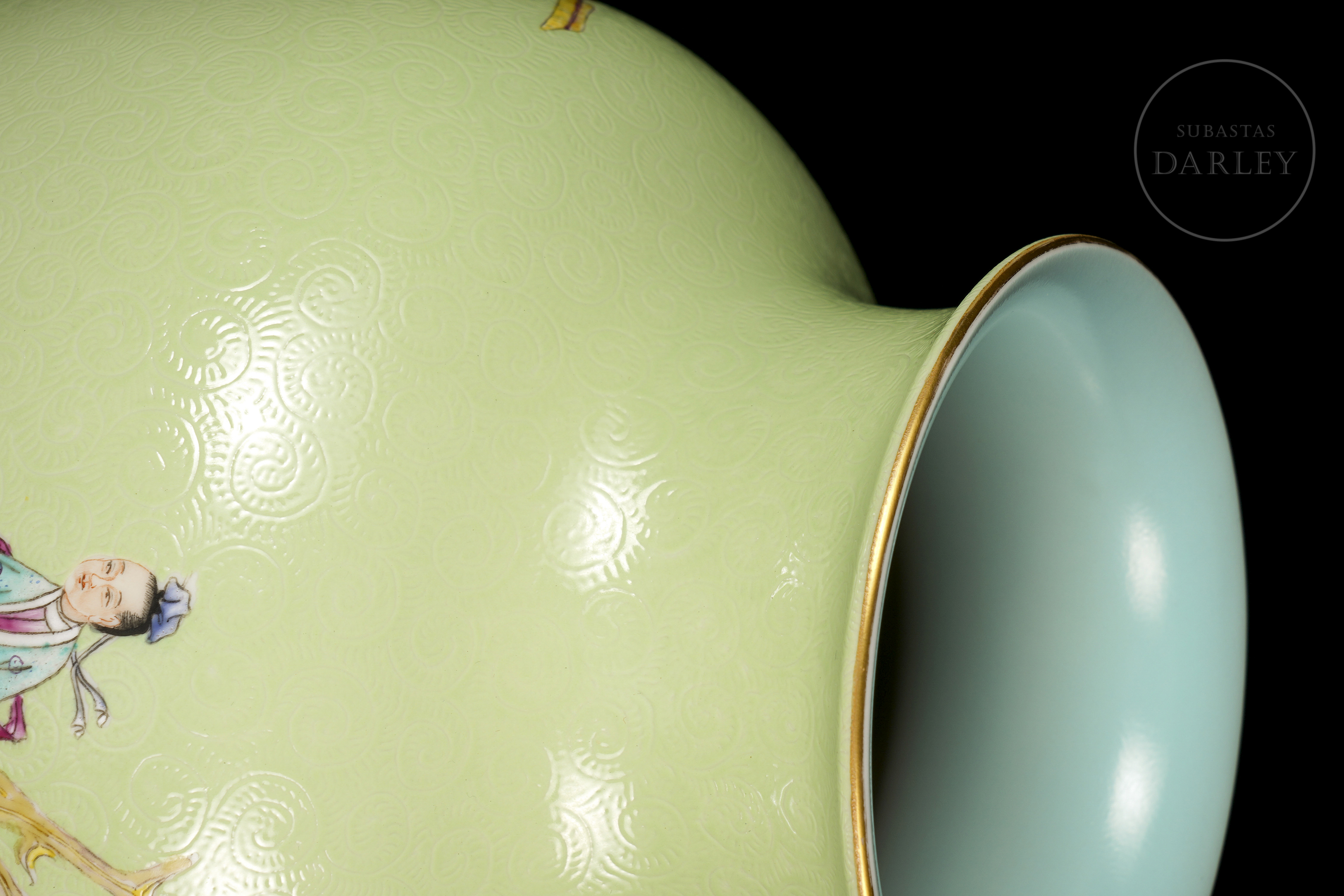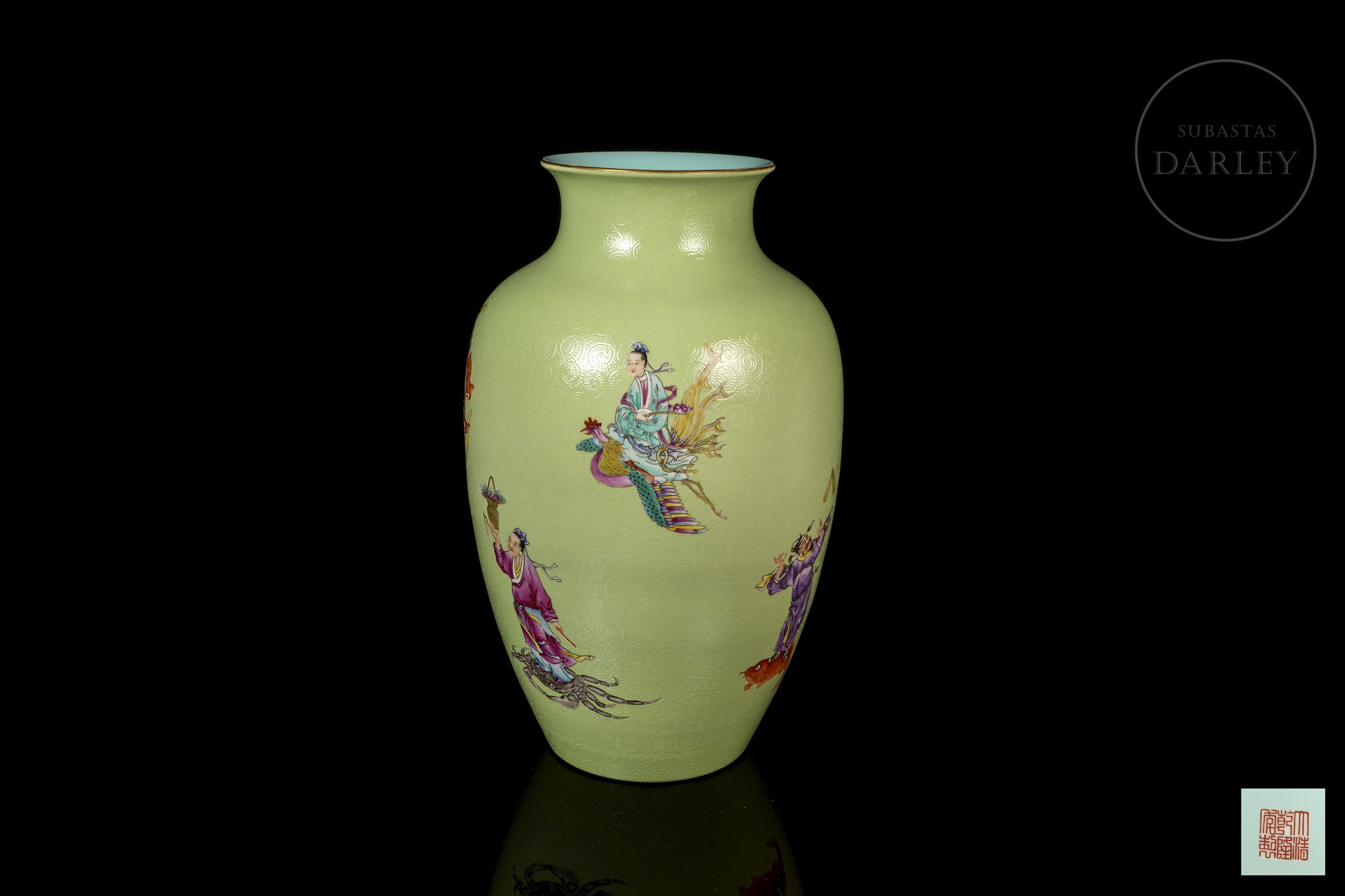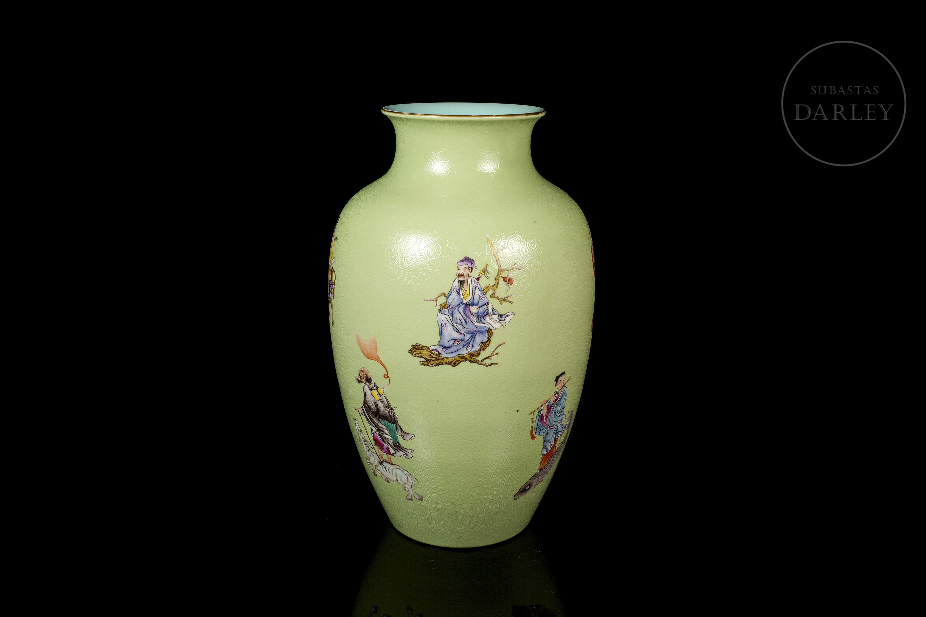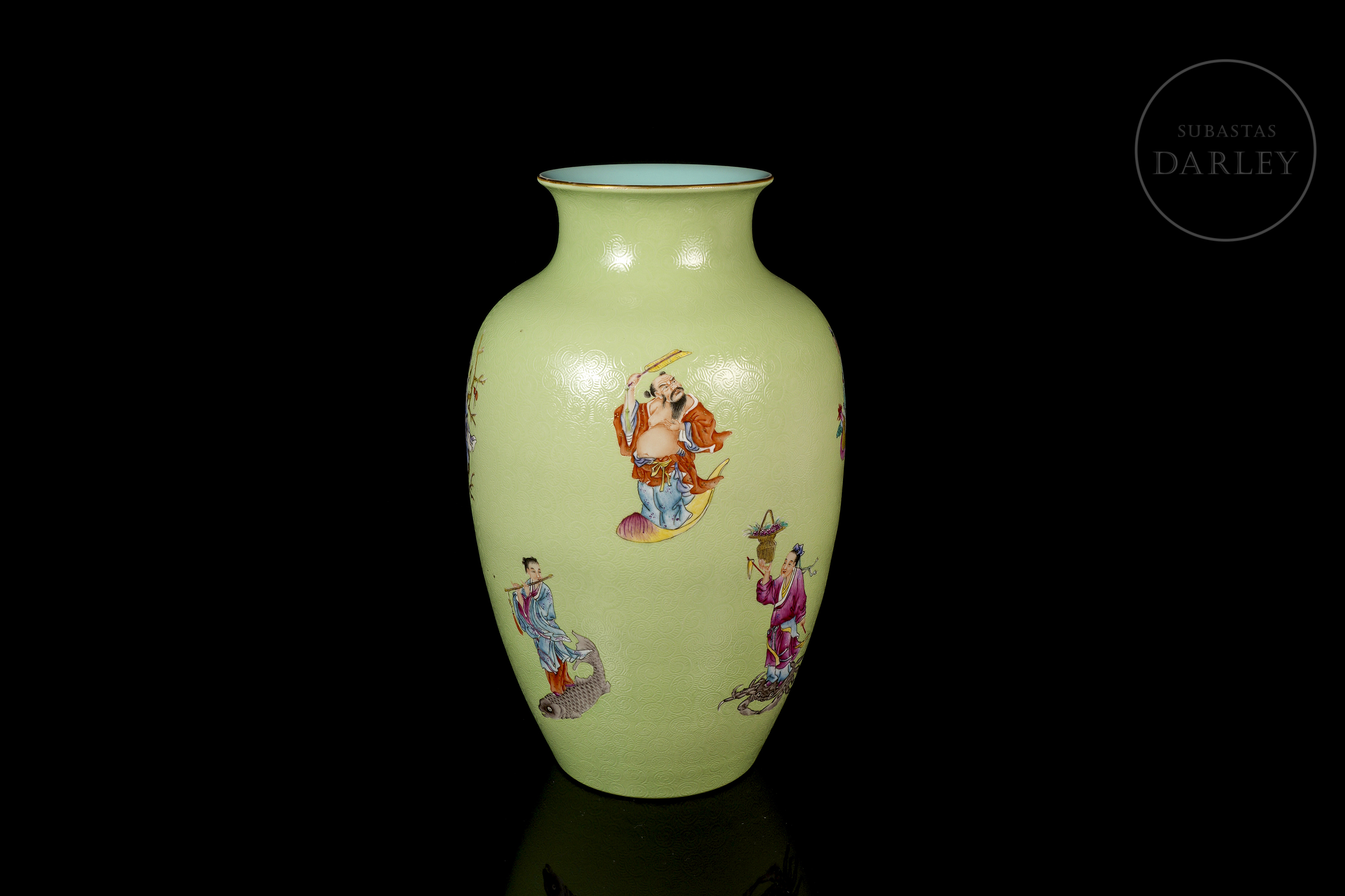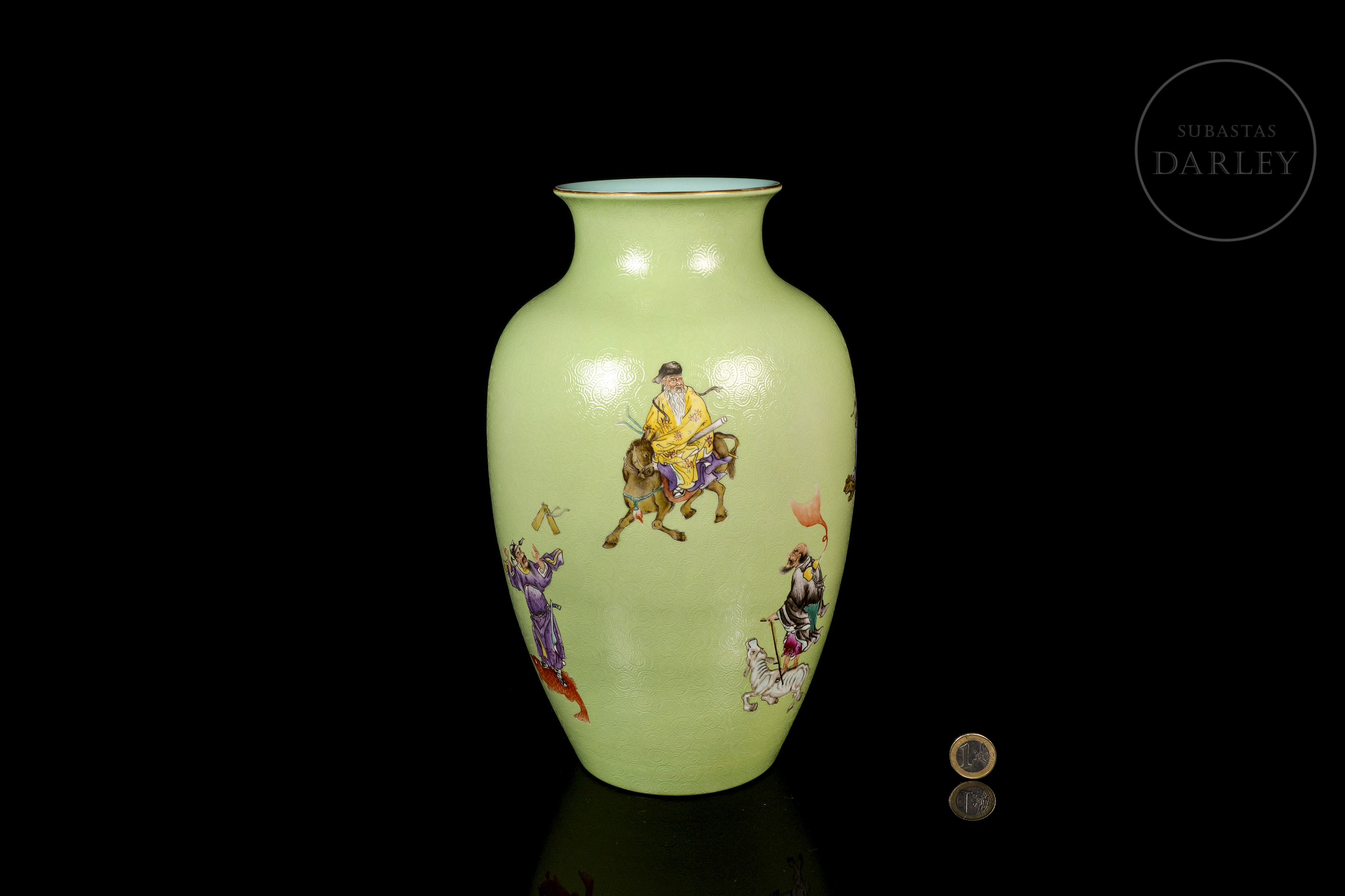 Glazed porcelain vase “Eight Immortals,” with Qianlong seal