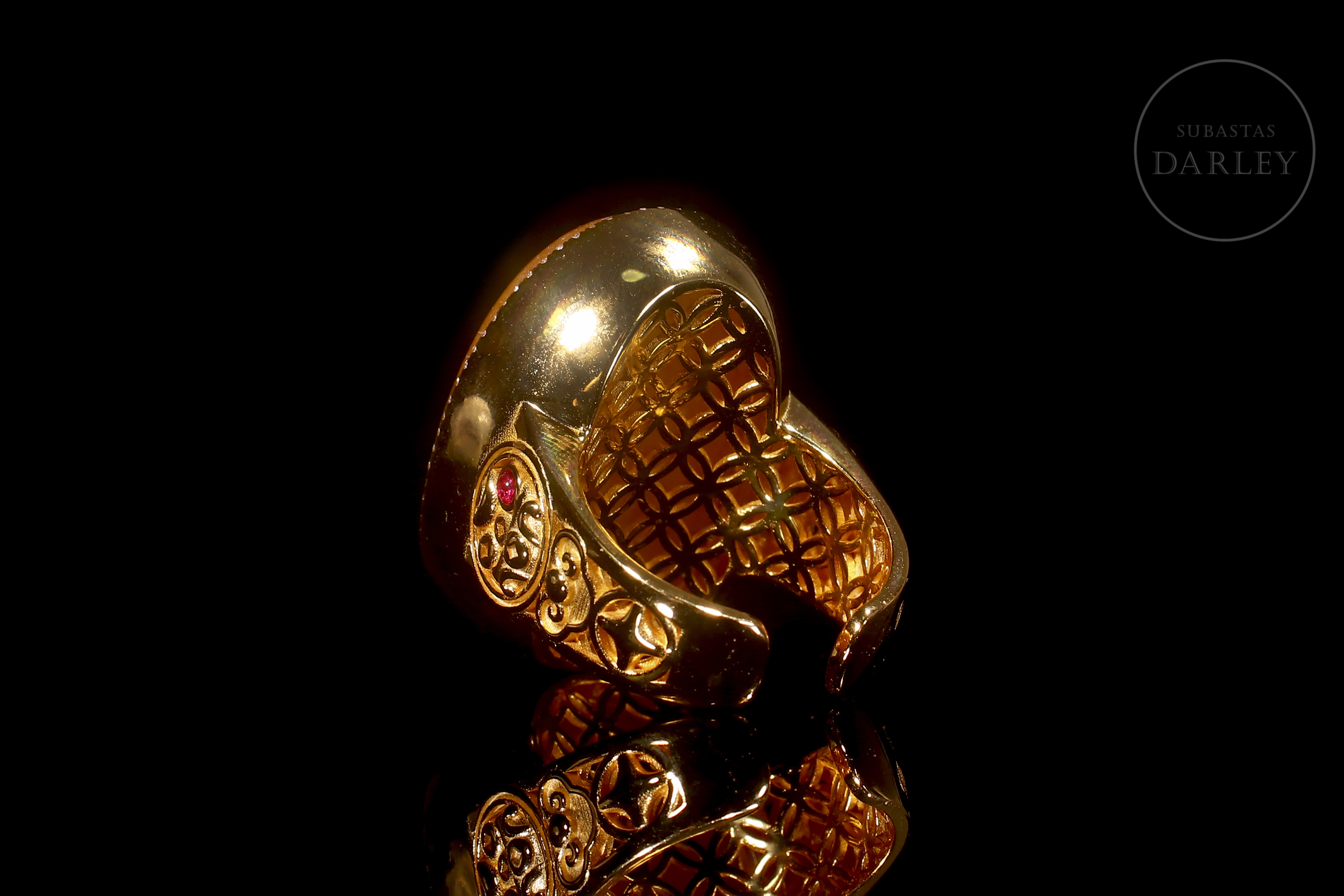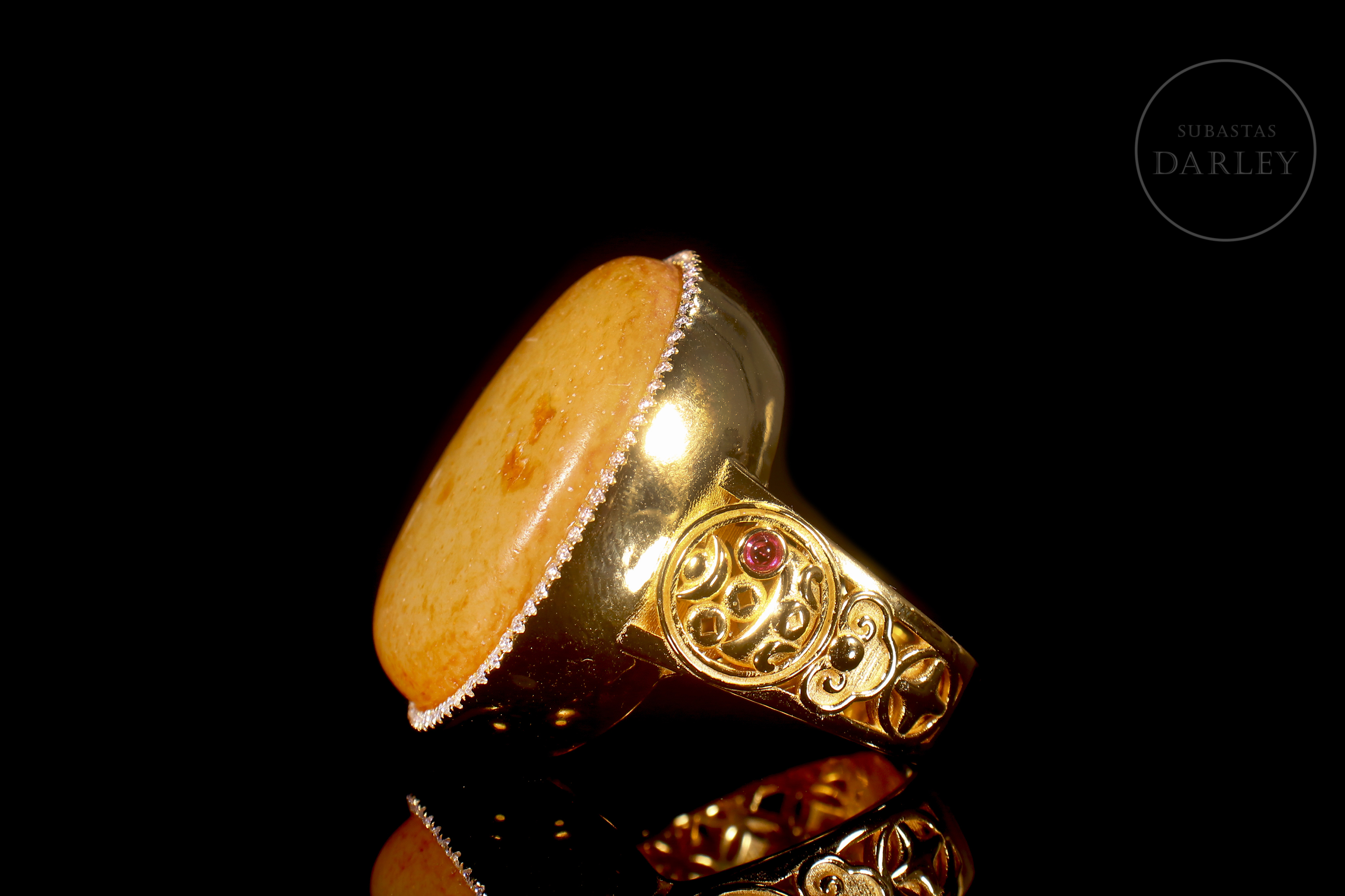 Gold-plated silver ring with Hetian jade, Qing dynasty