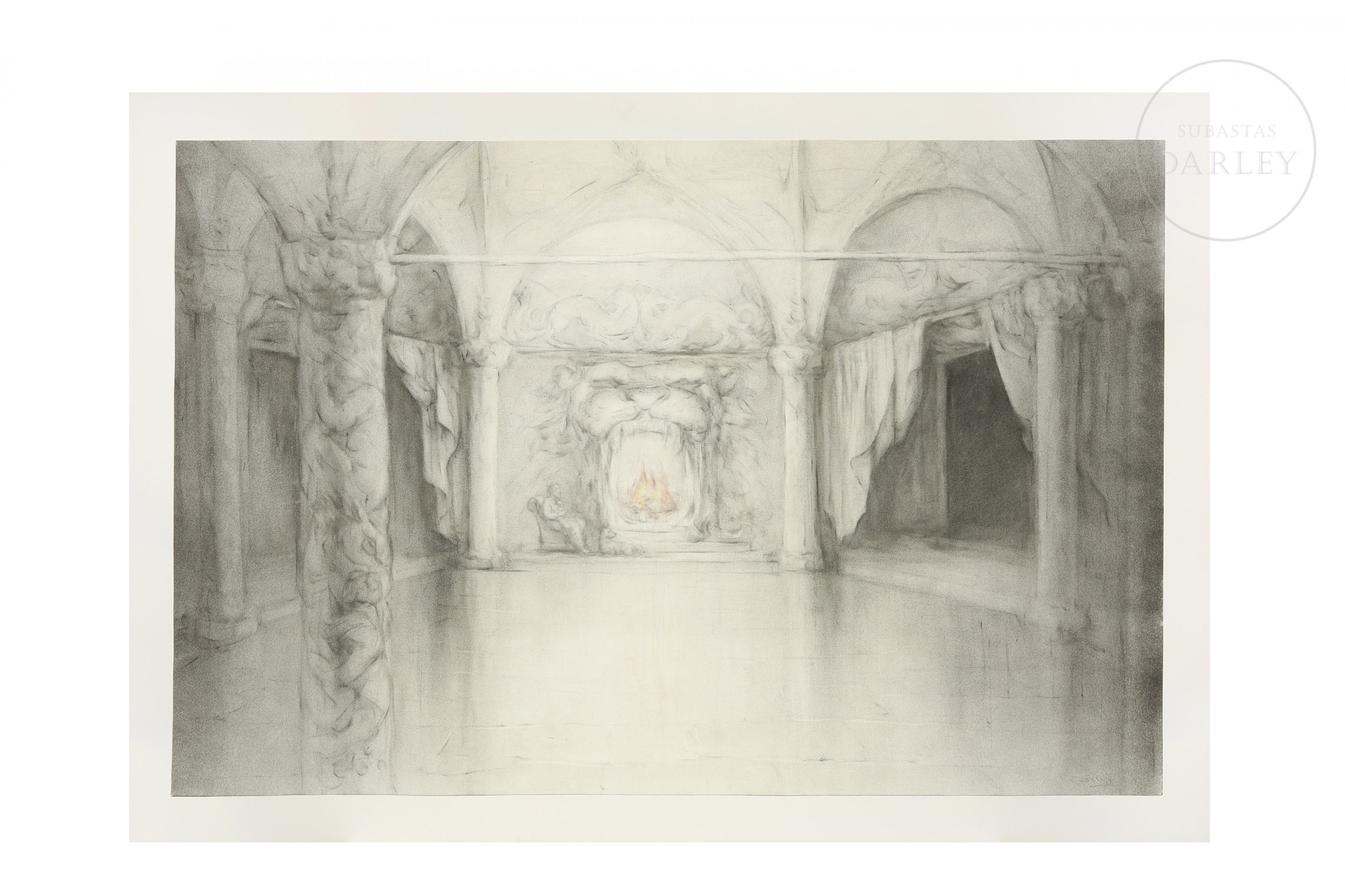 Mixed media on paper. Signed “Castejón 12” in the lower right corner. Mainly done in charcoal, with light polychrome in the center of the work. Placed on a paper support. Illustration made for “El ojo de Odín de Artur Balder”, 2012.