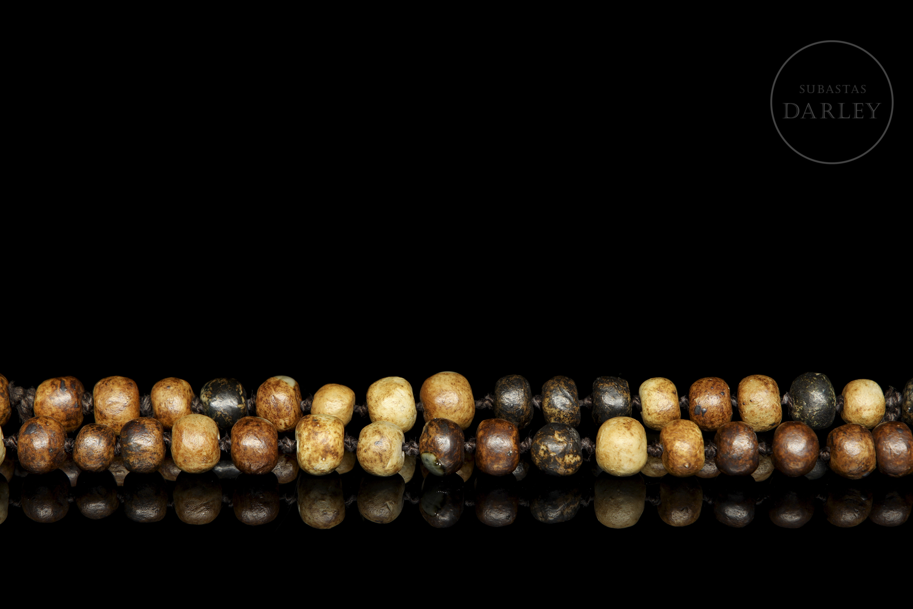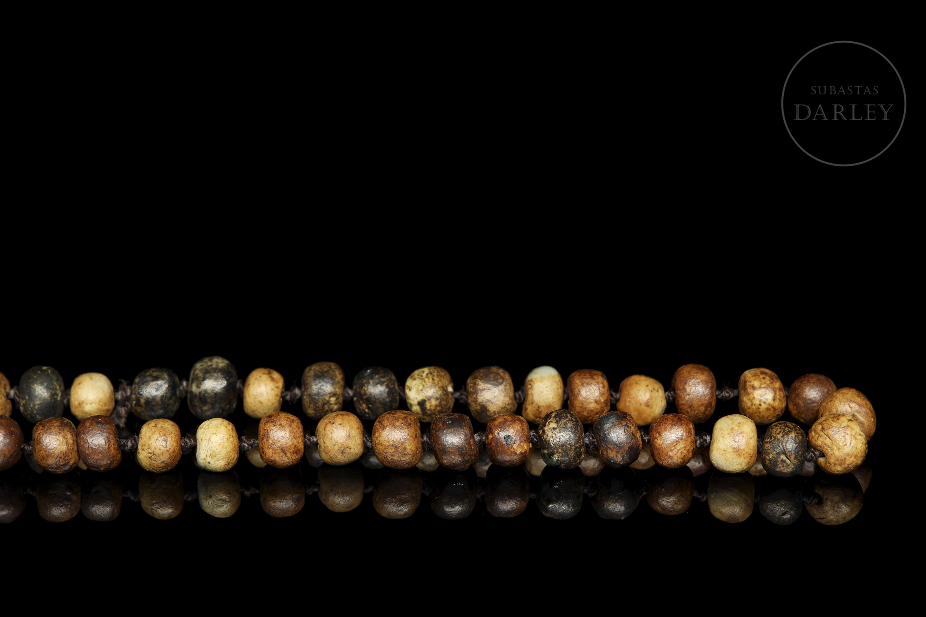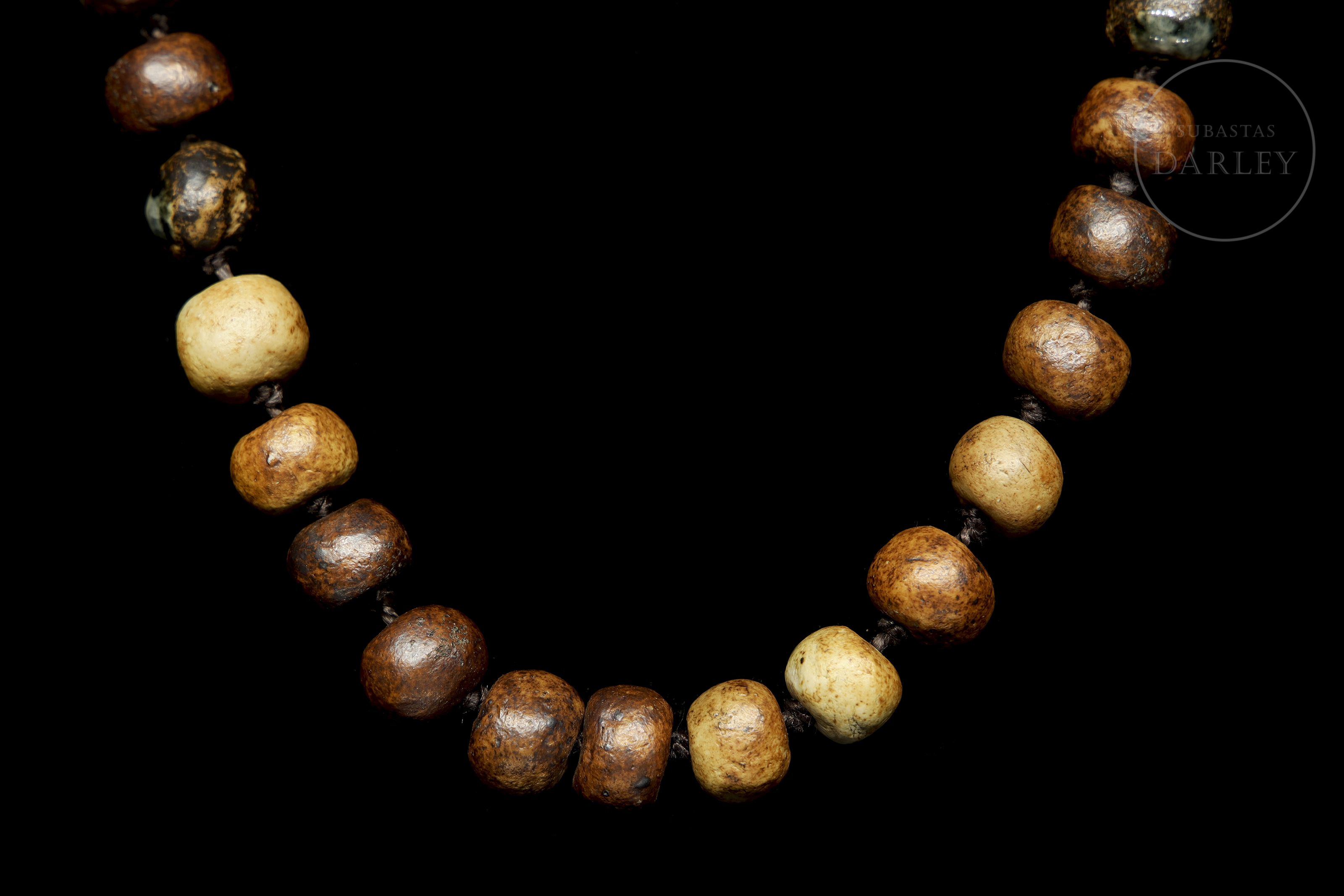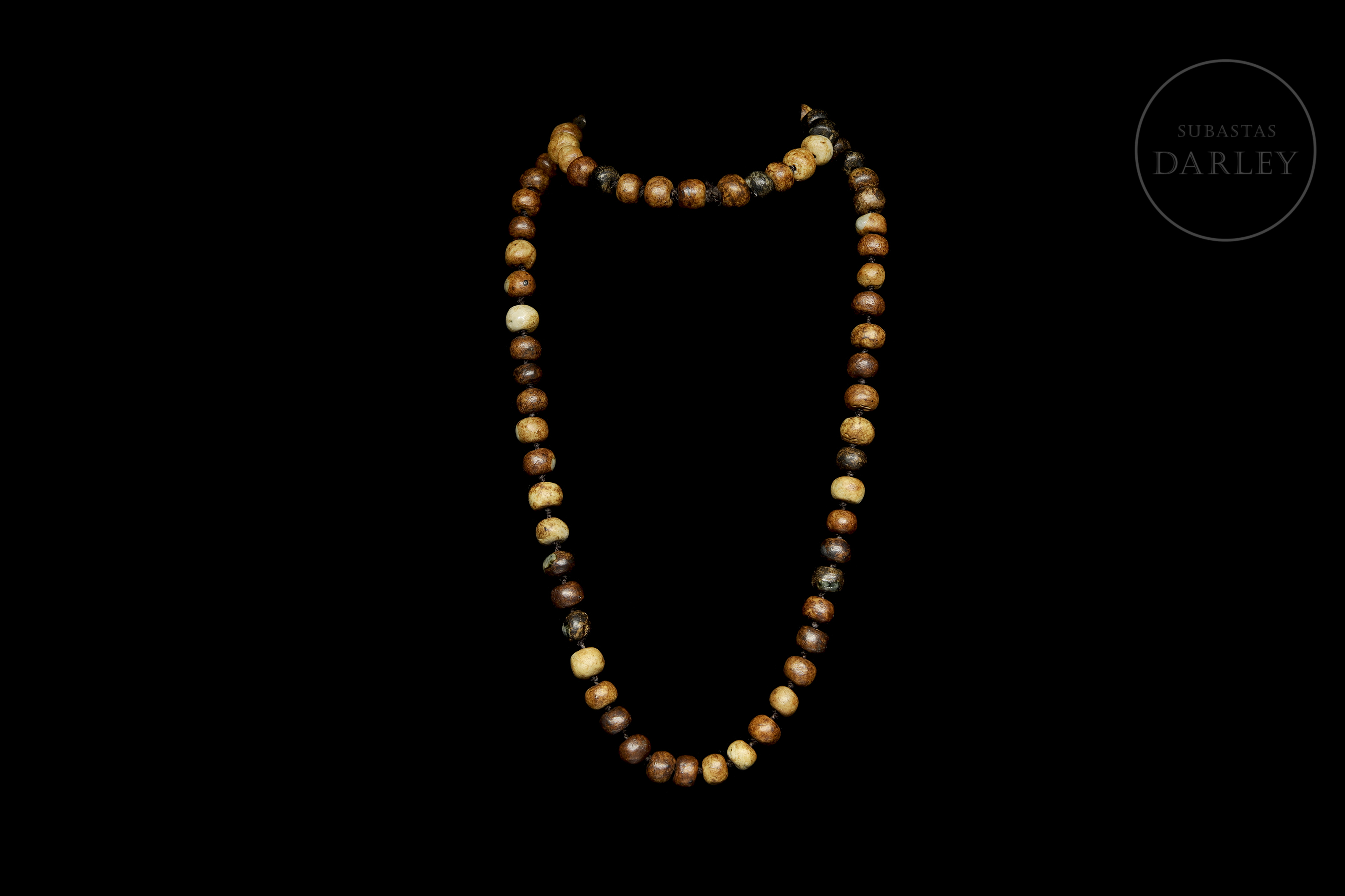 Necklace composed of a total of 83 spherical stone beads in shades of brown, ochre and black, with a polished surface and slight irregularities typical of their age. Qing Dynasty (1644–1912).