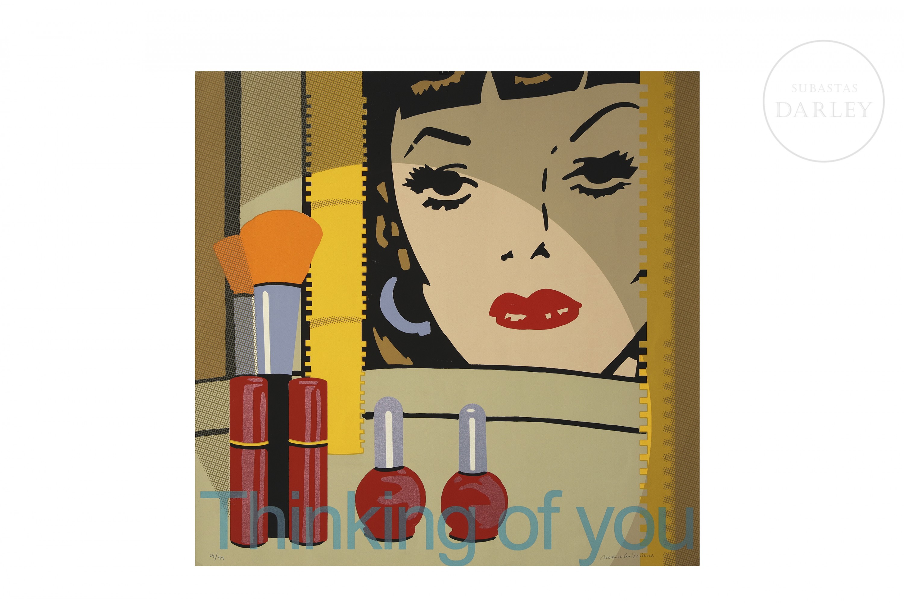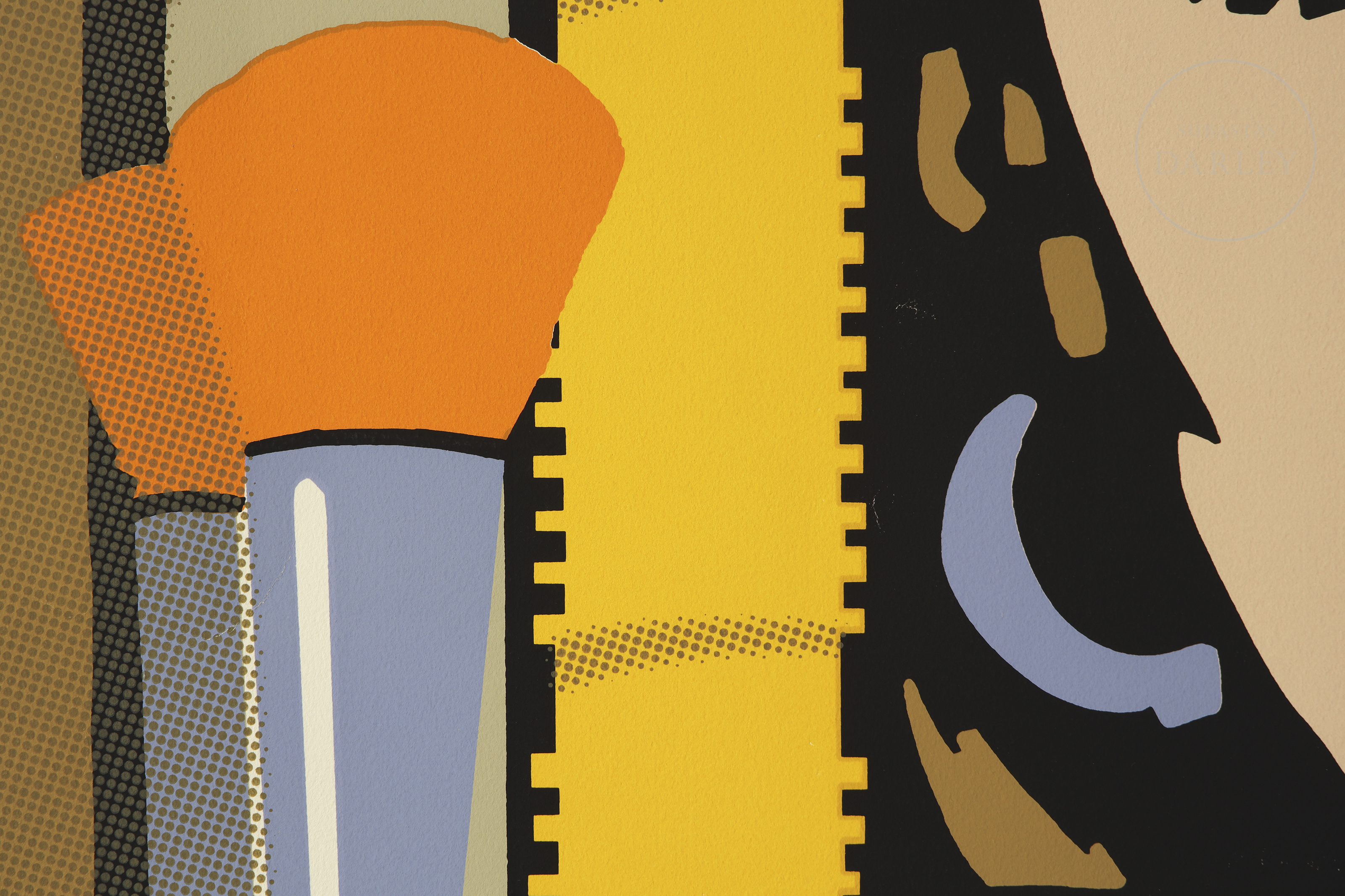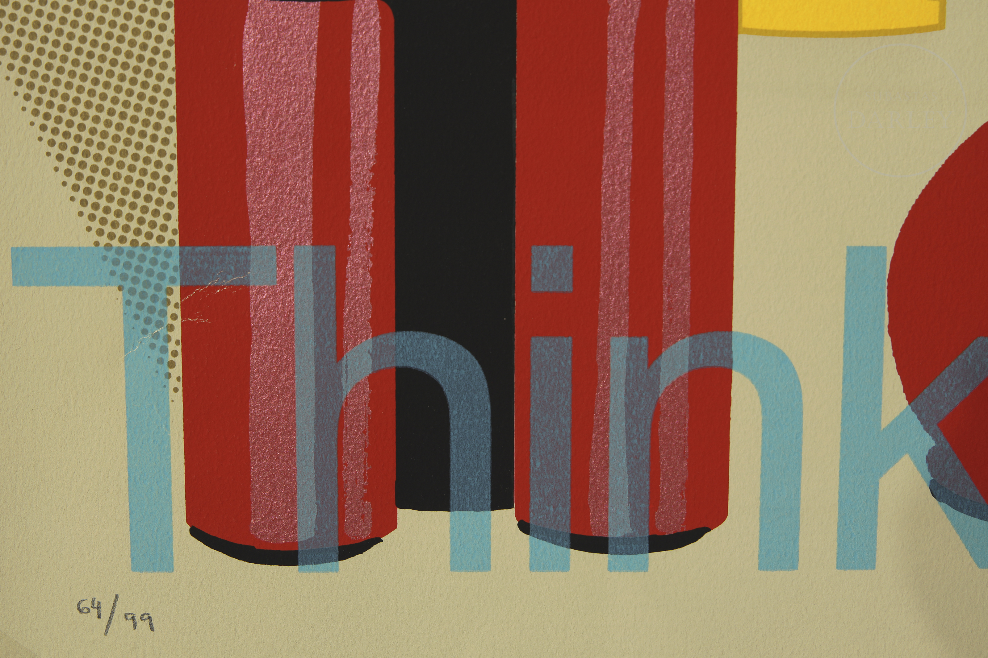 丝网印刷于纸上。作品底部题有标题,呈现流行艺术风格。右下角签名“Maria Luisa Sanz”,左下角铅笔编号“69/99”。出自埃里克·基尔克塞瑟工作室。