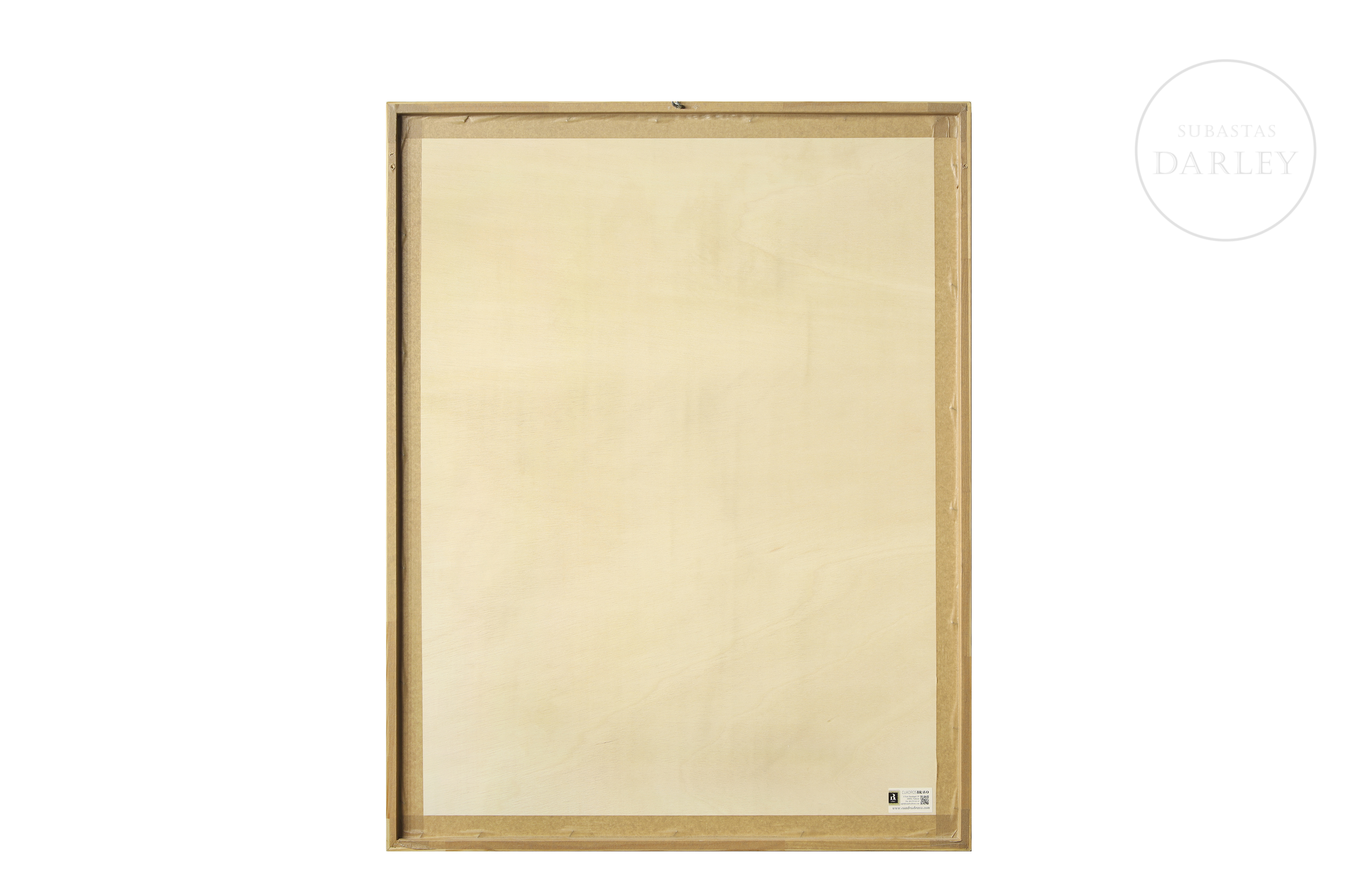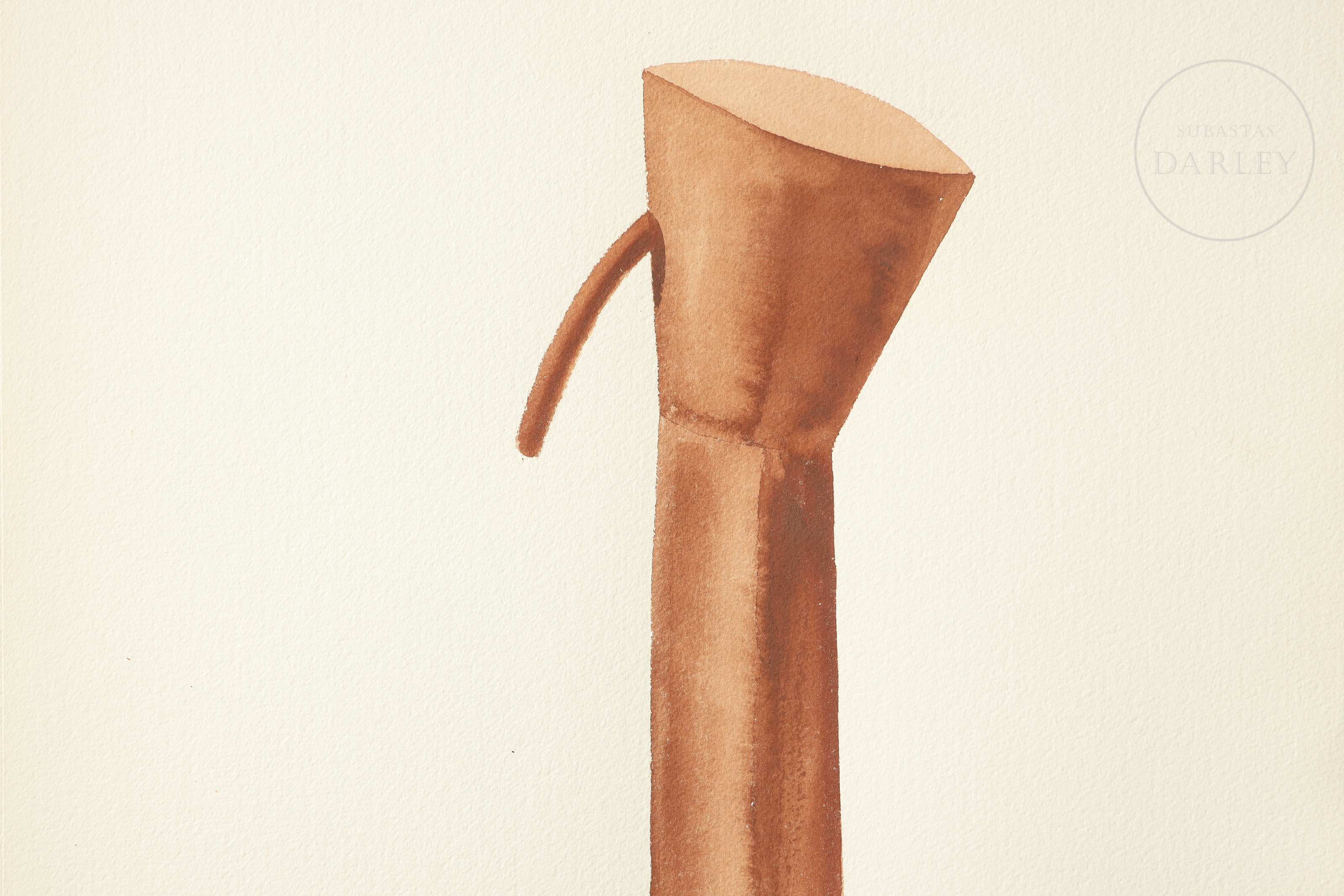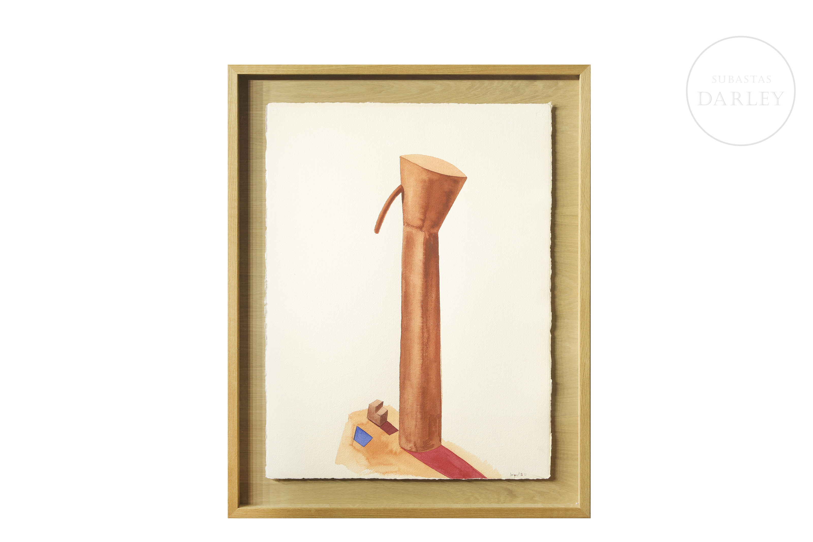 Watercolour on paper. In creating this work, the Valencian sculptor resorts on several of his recurring themes, while maintaining his usual aesthetic inspired by architectural elements. Signed and dated in the lower right corner of the work ‘Miquel/90’.