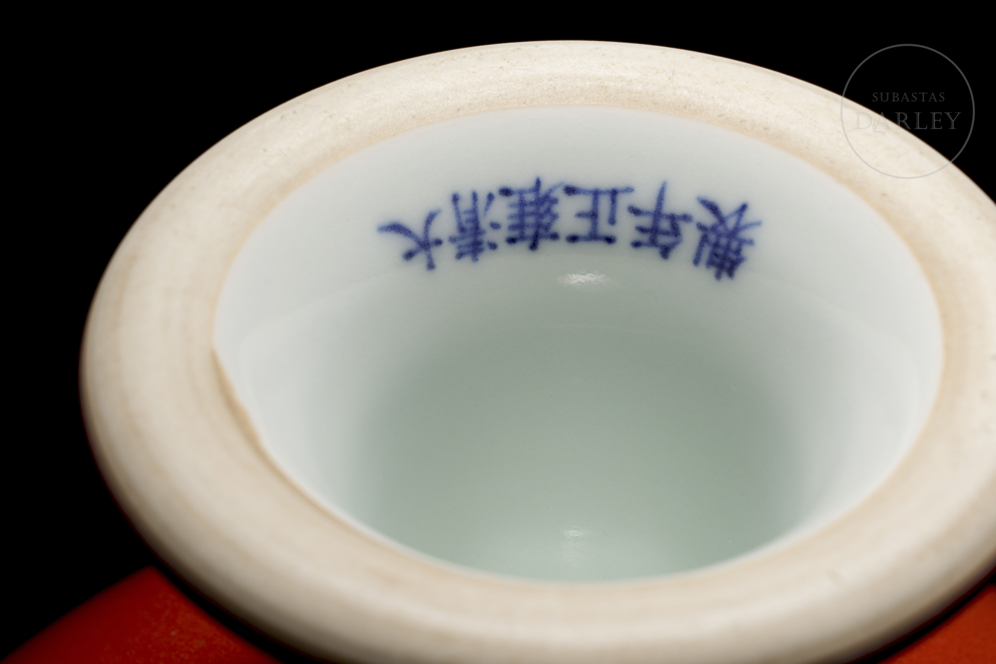 Porcelain cup with two-colour glaze, with Yongzheng mark