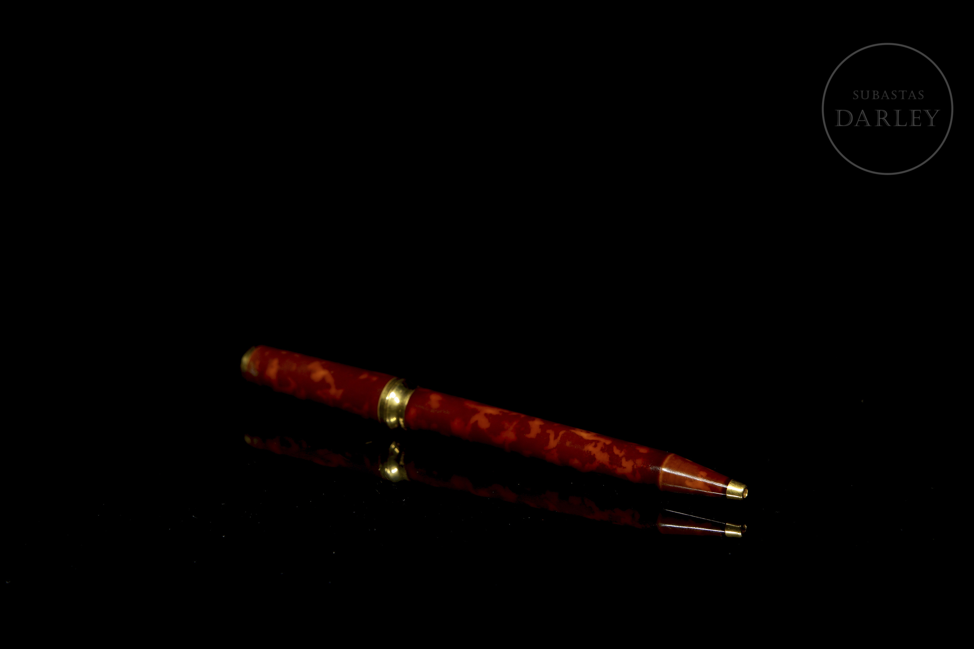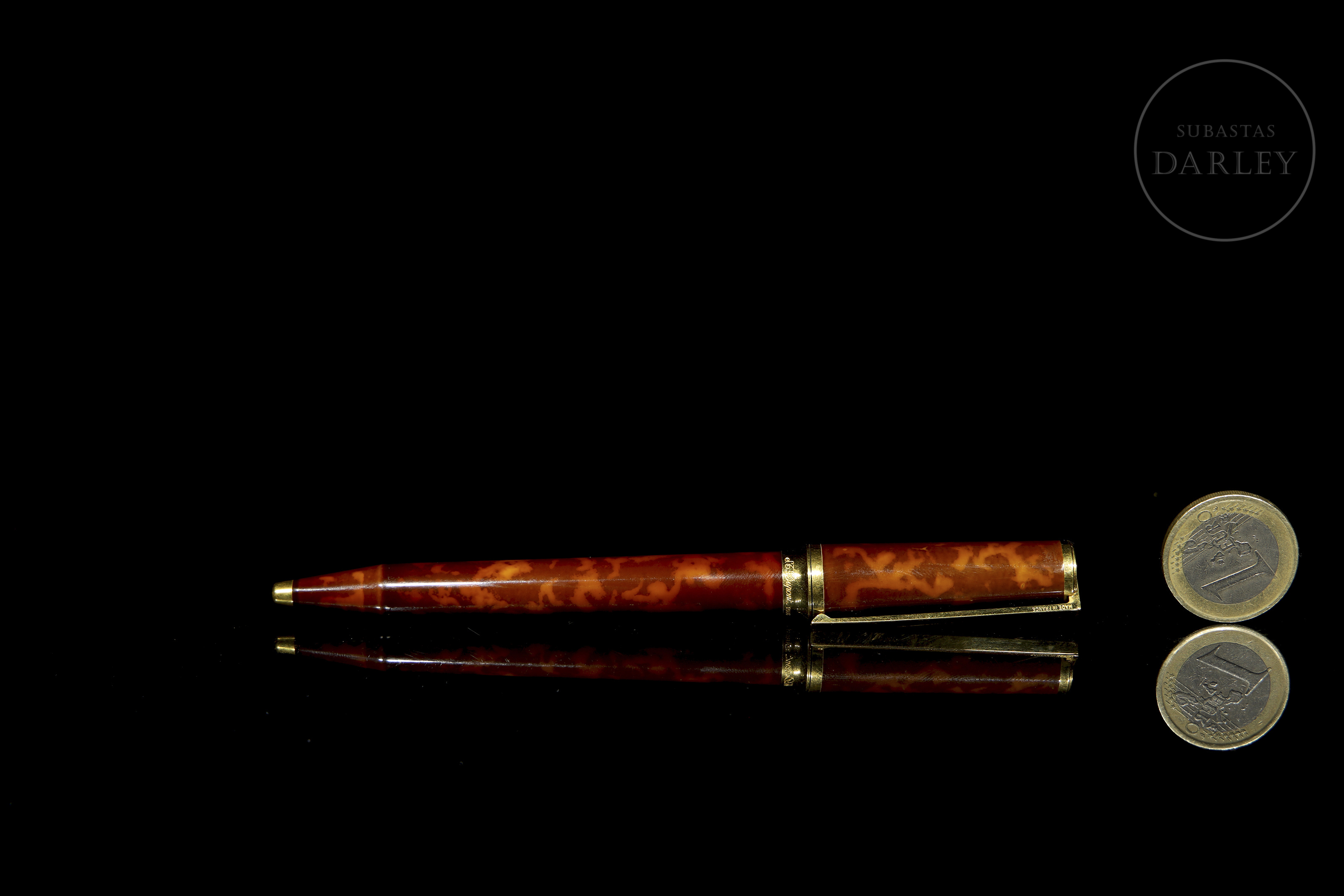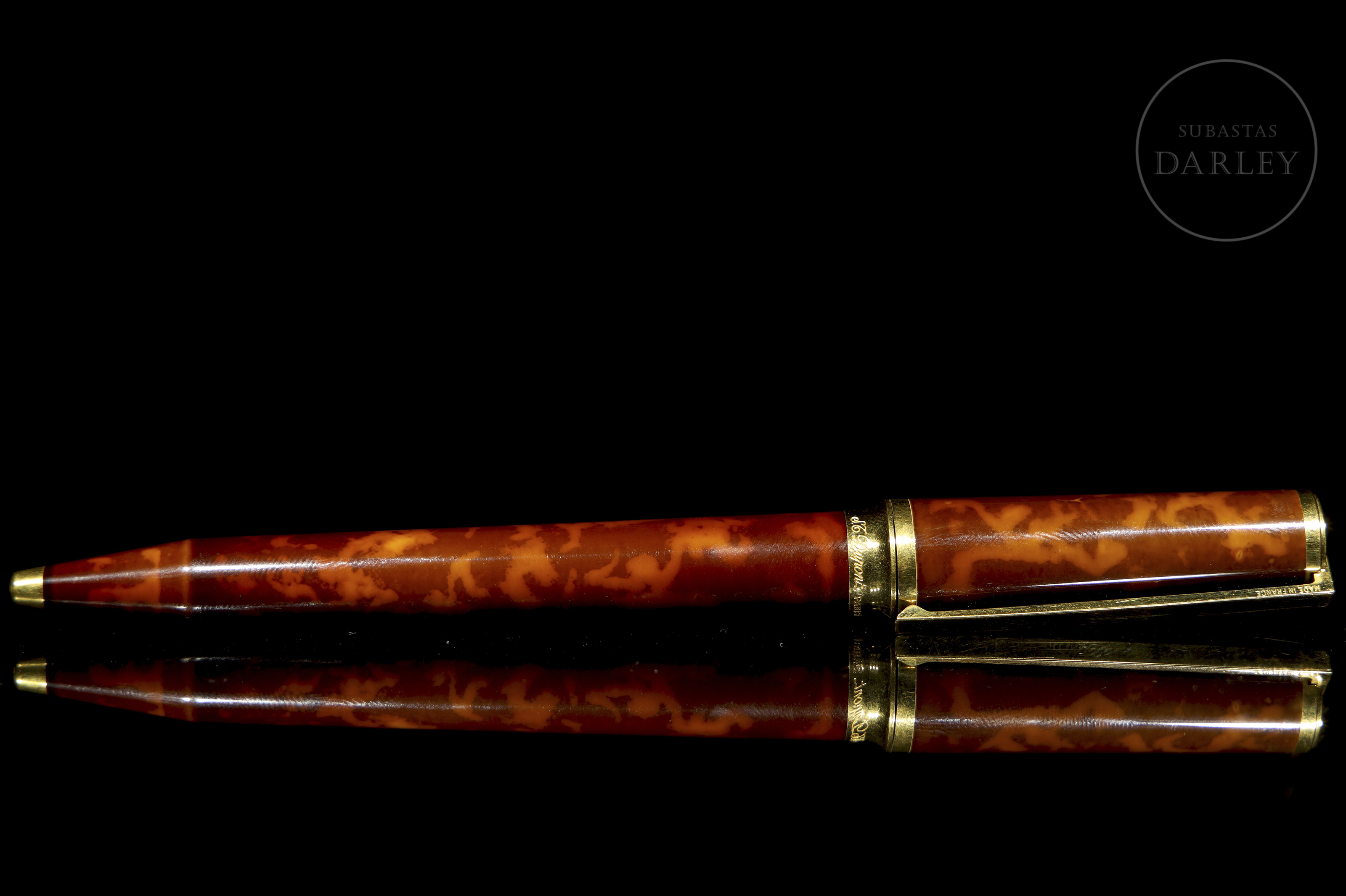 法国品牌杜邦圆珠笔,型号0490236,附原装盒。M2型号,笔身采用天然中国漆制成,大理石纹饰面配以金色细节。笔芯状态良好。