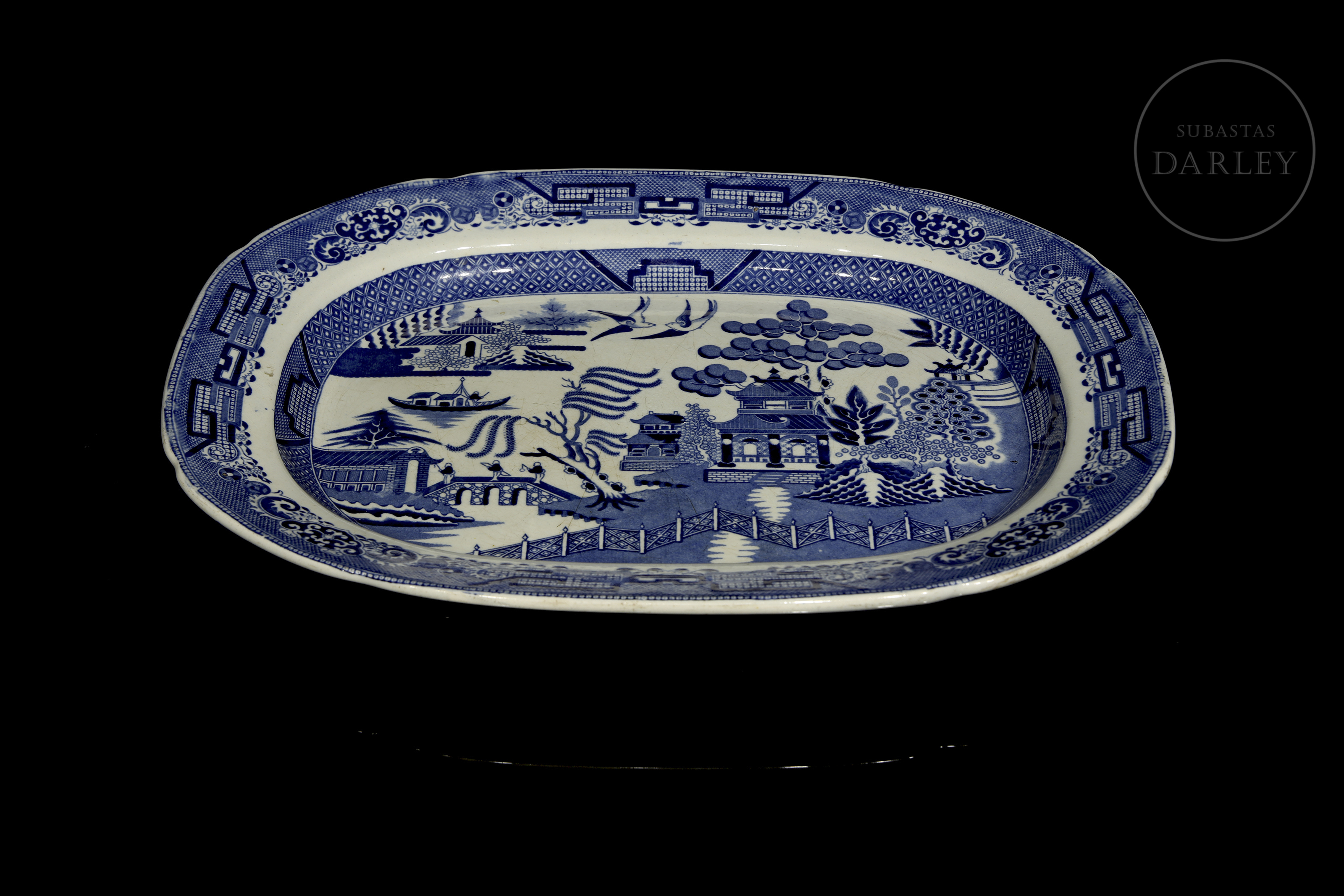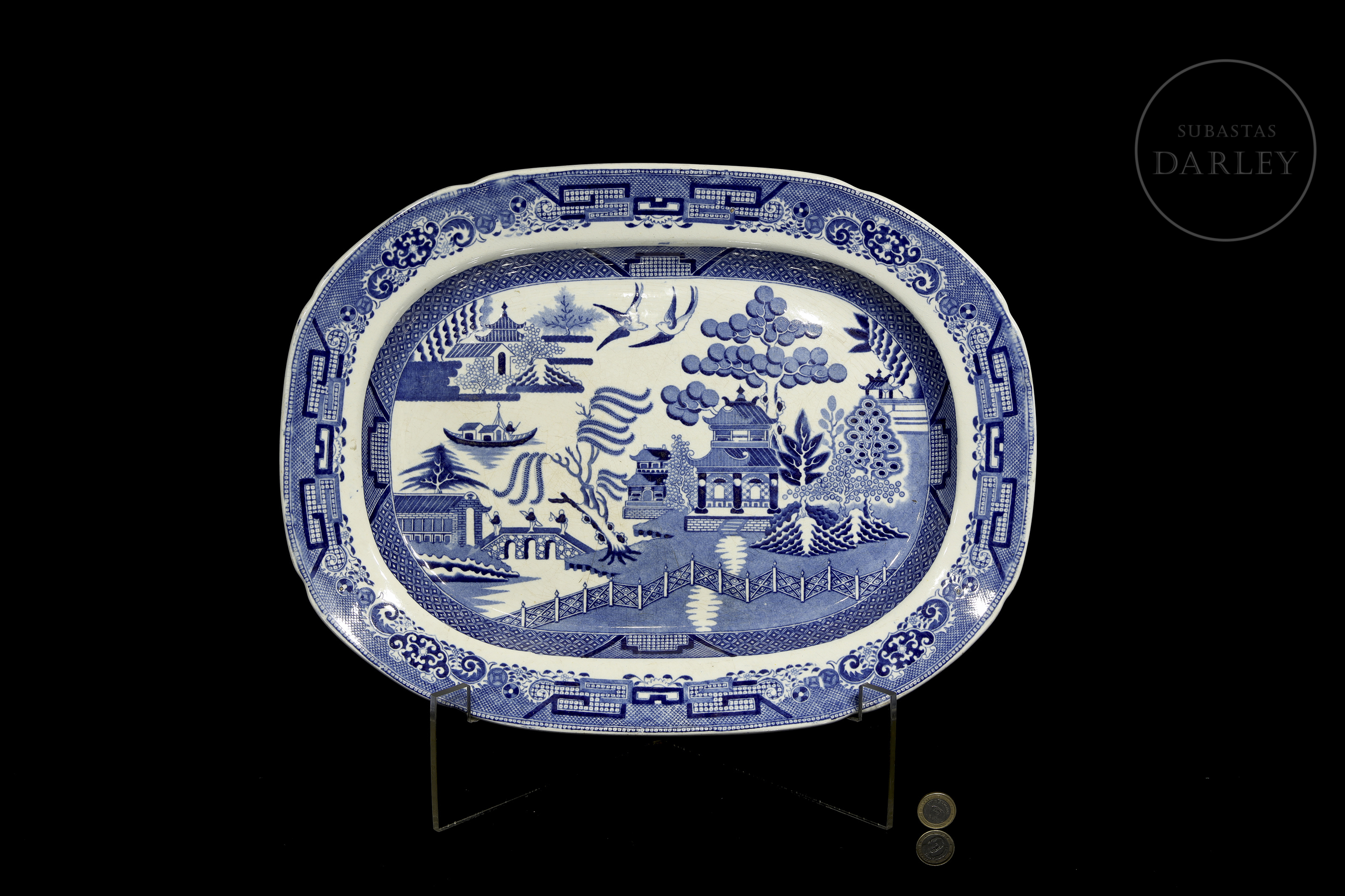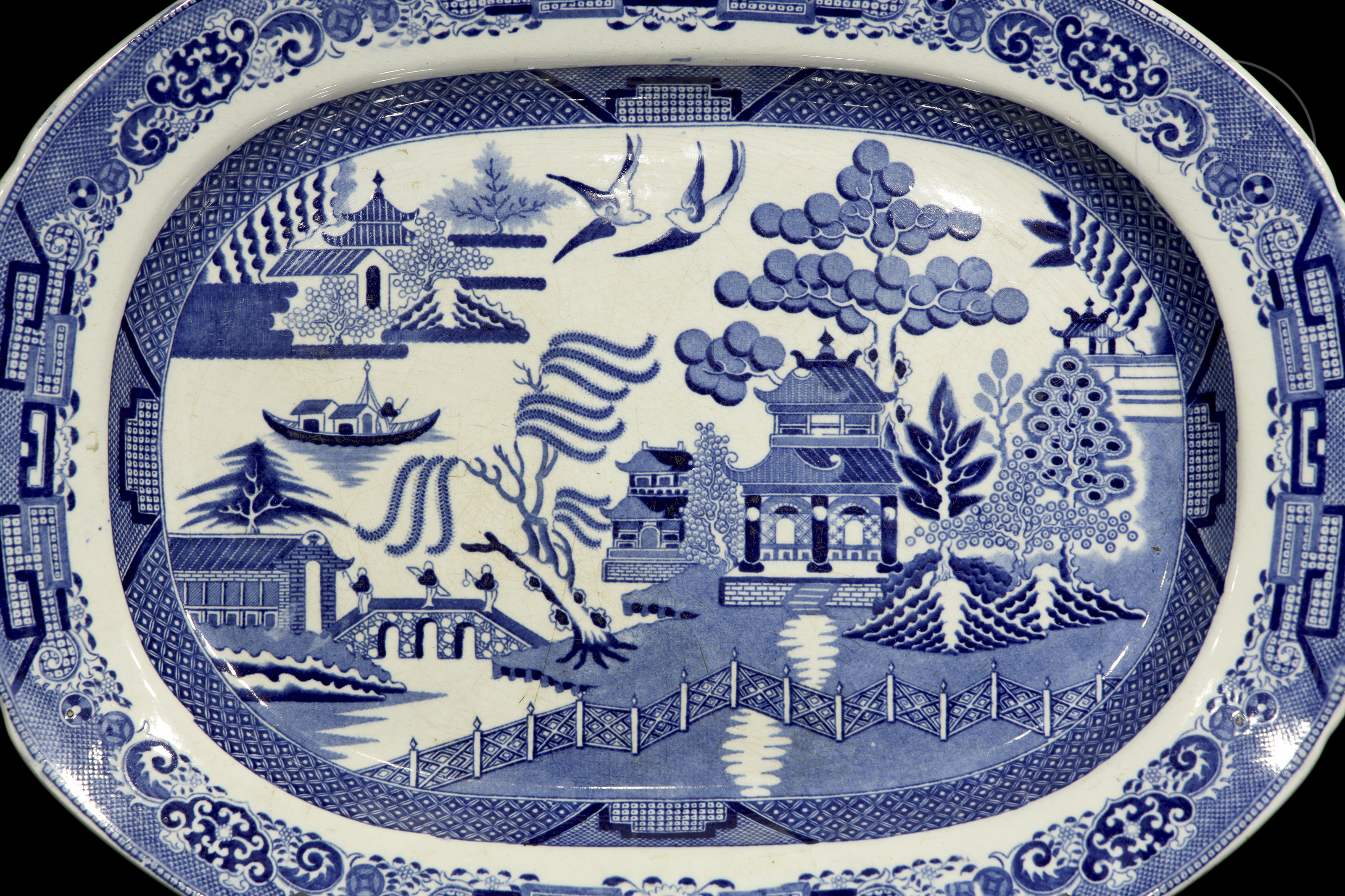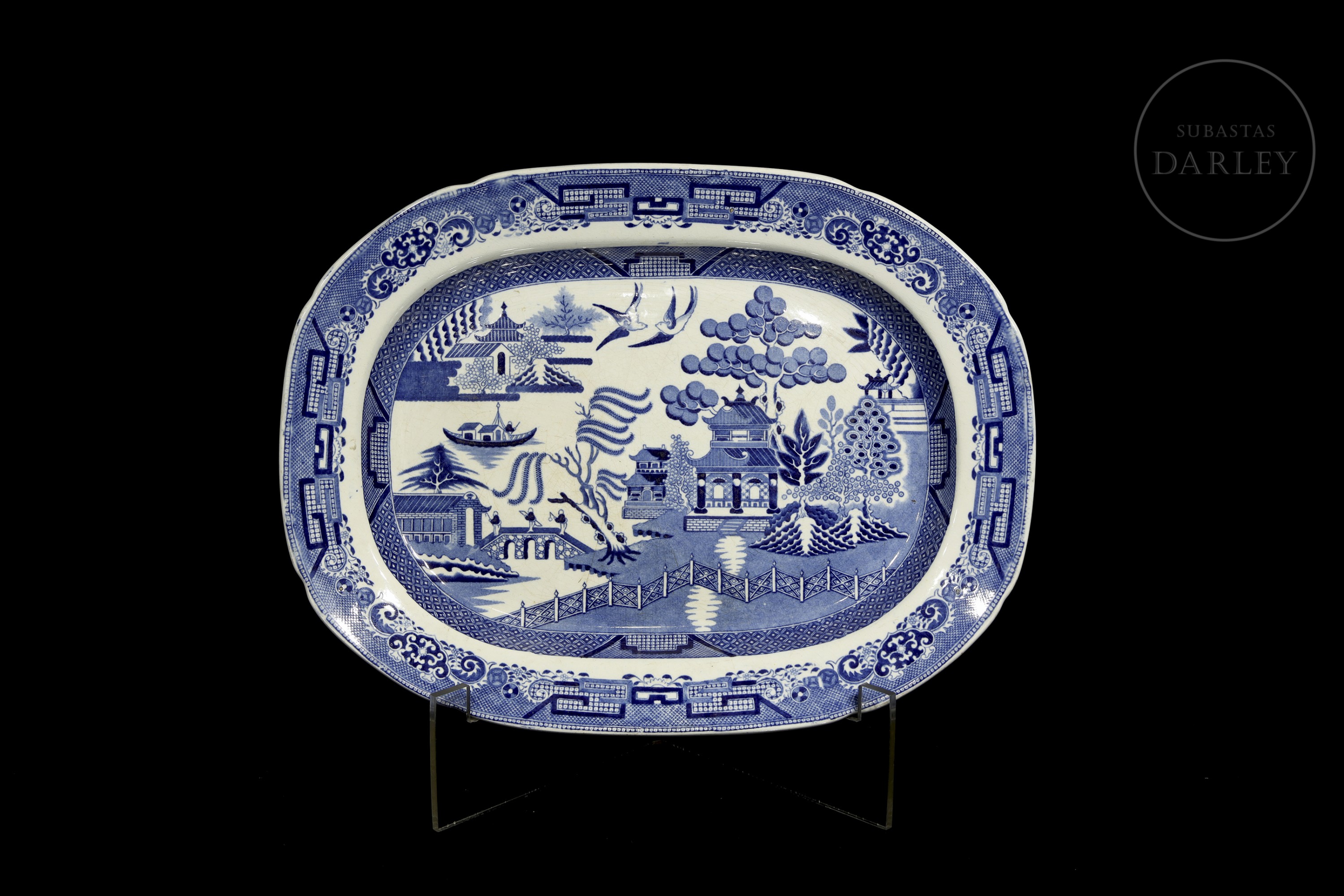 柳树纹托盘,石质瓷器,斯塔福德郡,十九世纪