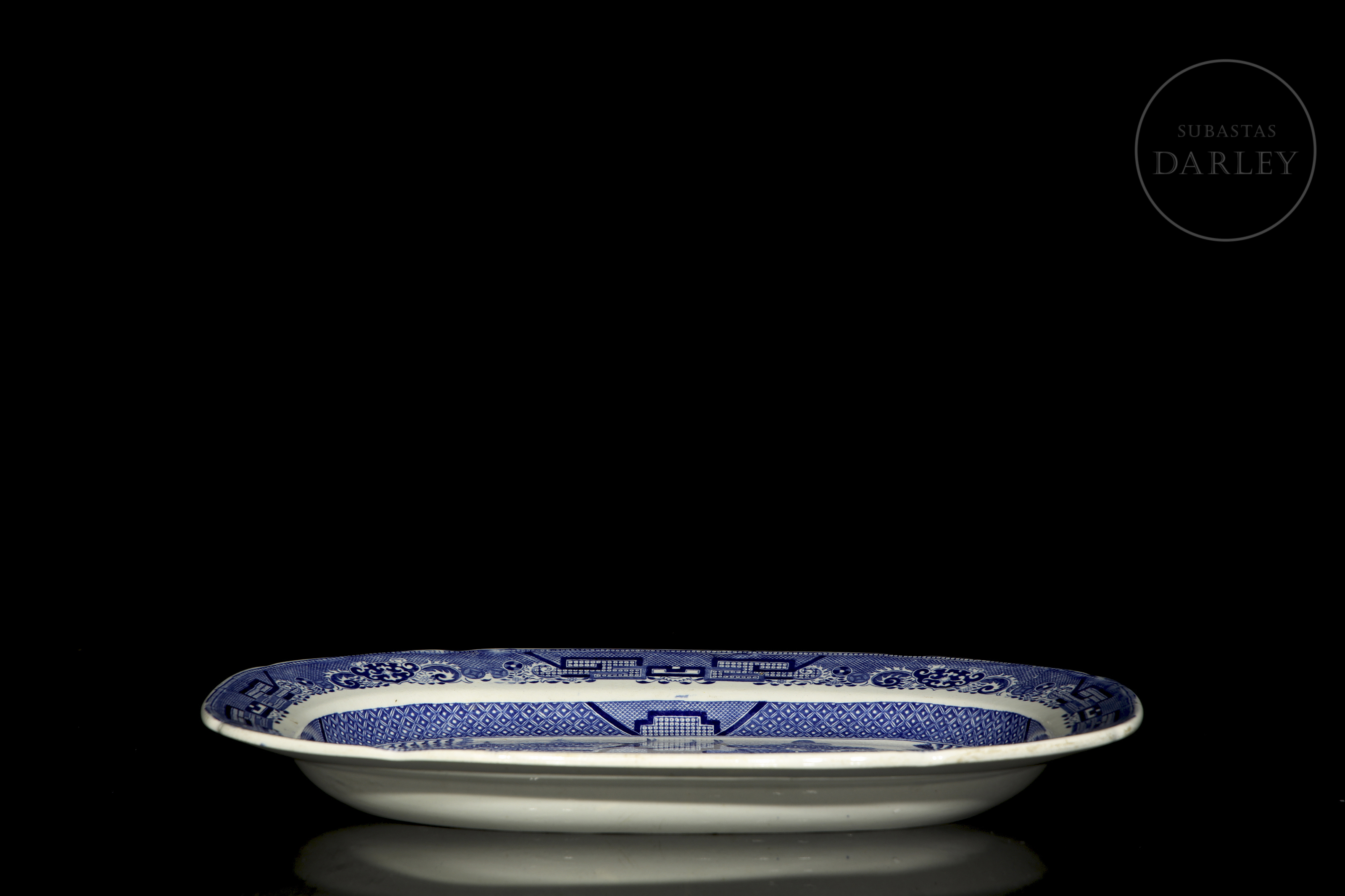 十九世纪末英国陶瓷托盘,饰以经典蓝白相间的柳树纹样。采用斯塔福德郡研发的耐用陶瓷材质,旨在与中式瓷器相抗衡。