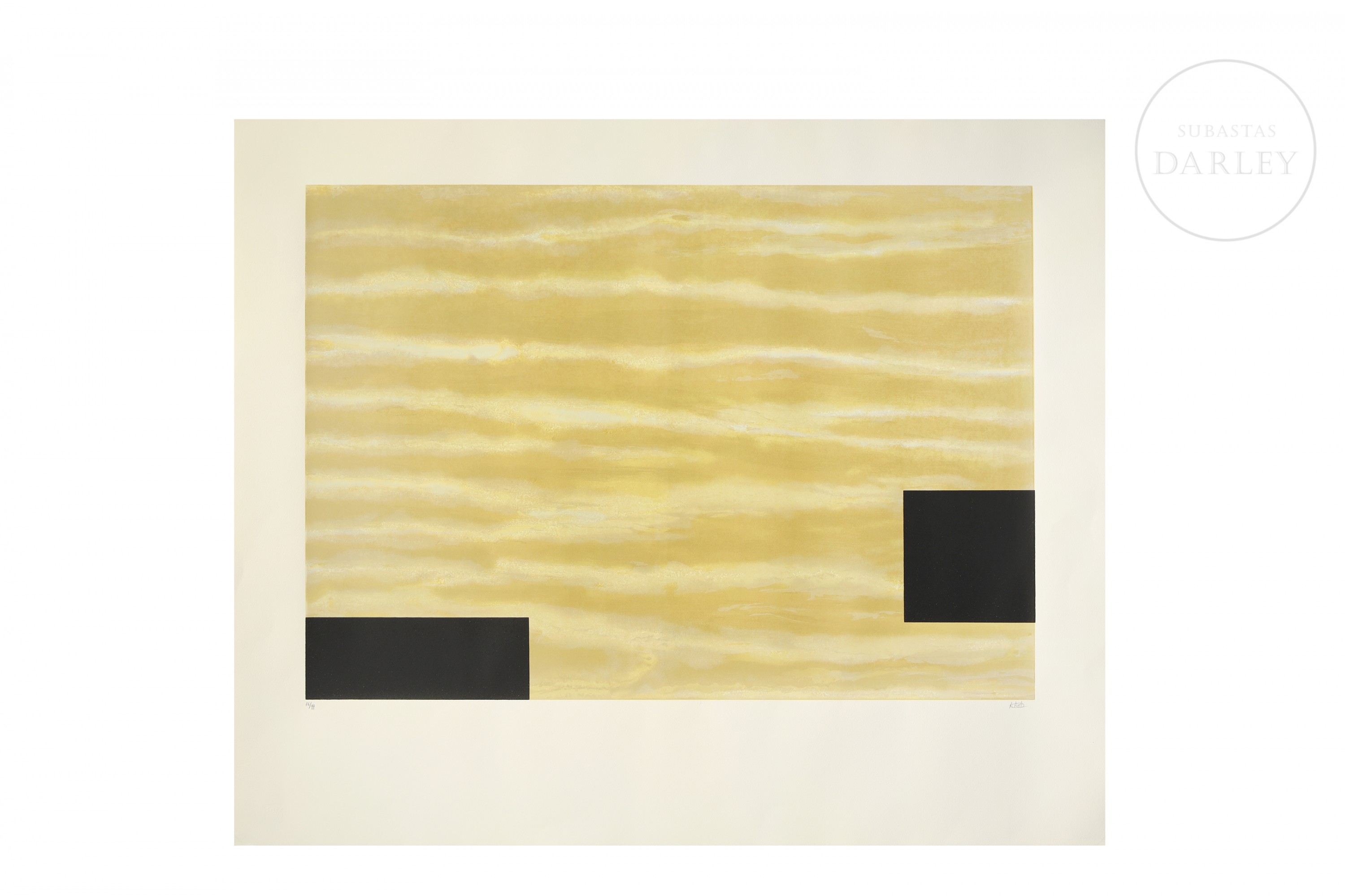 丝网印刷于纸上。中性背景上的几何构图。右下角铅笔签名,左下角铅笔编号“76/99”。