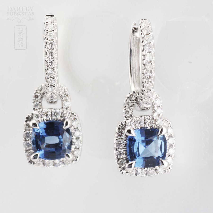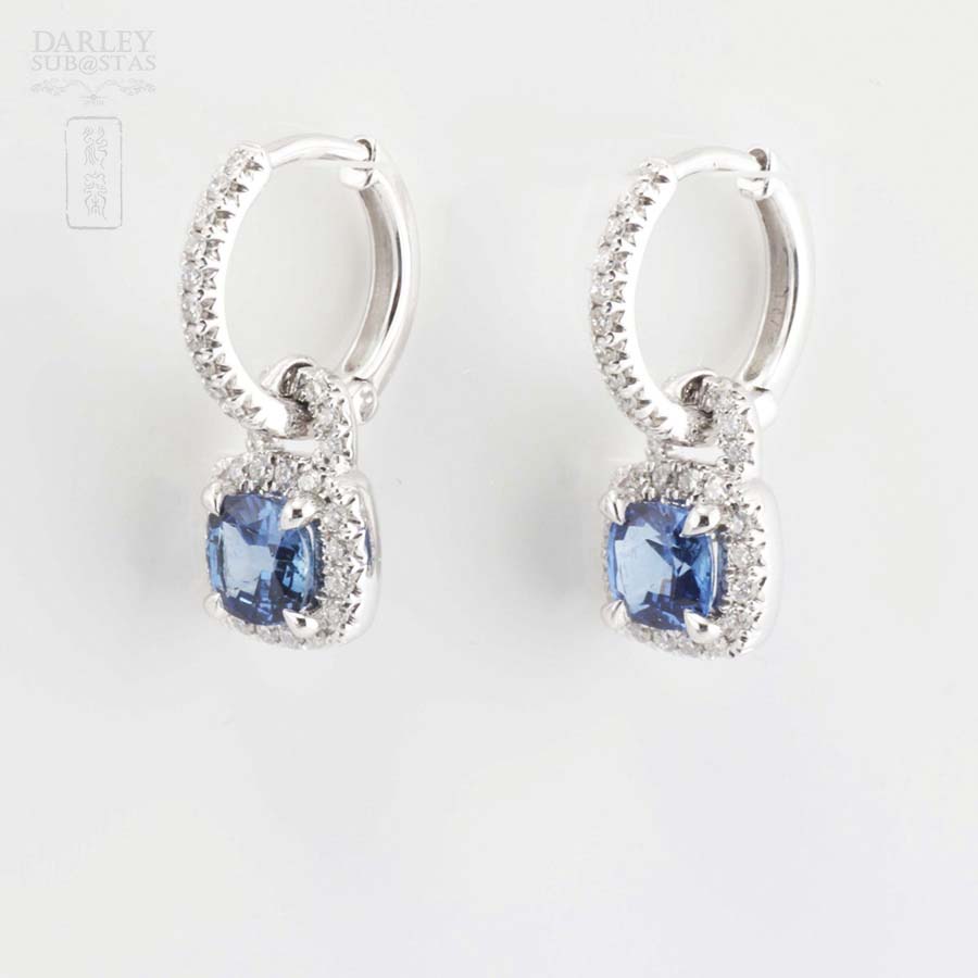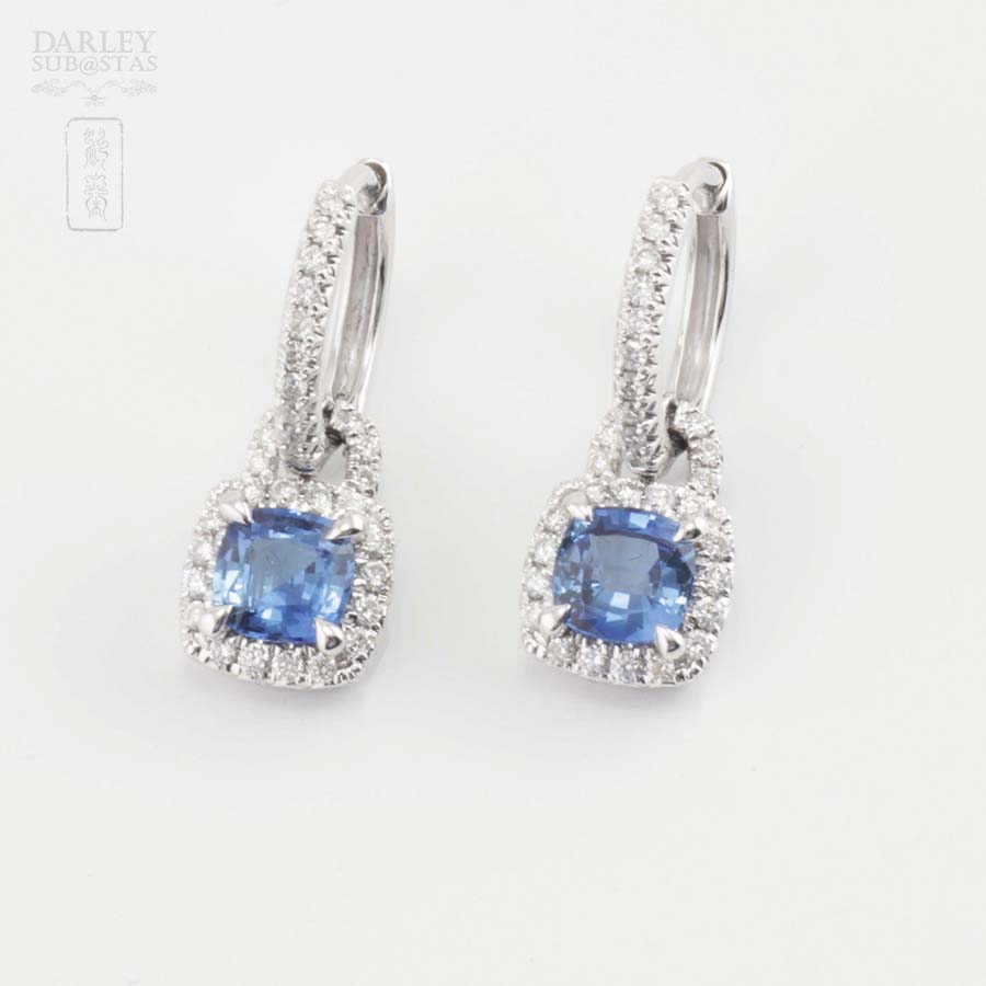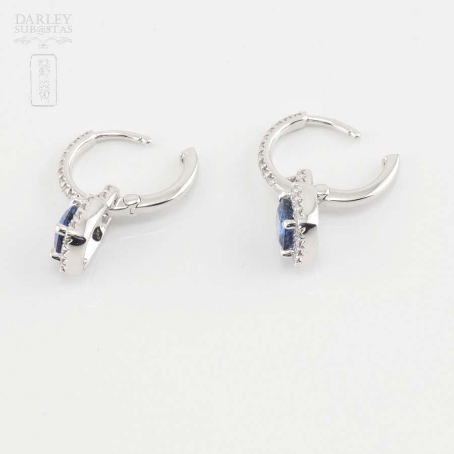 18K白金配蓝宝石镶钻石耳环