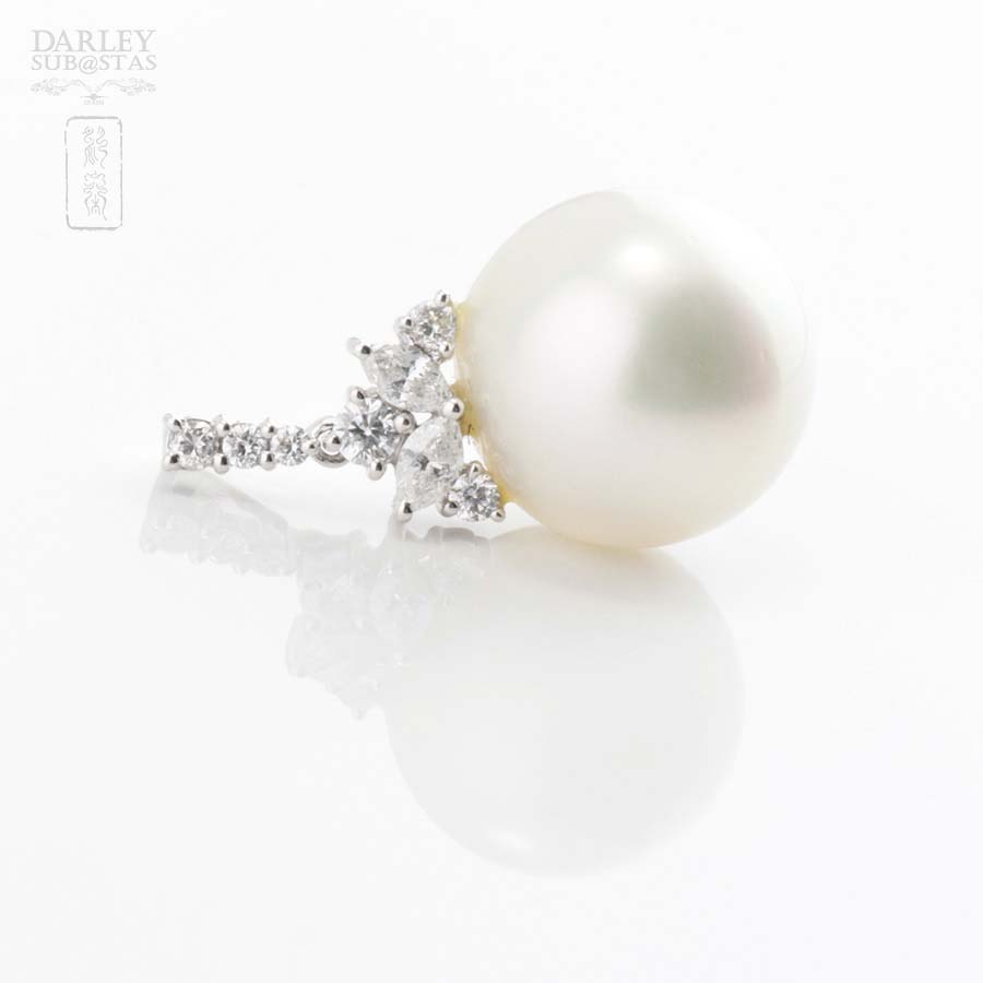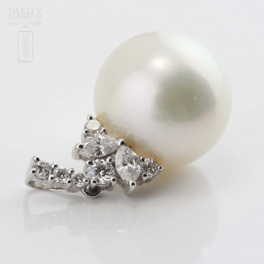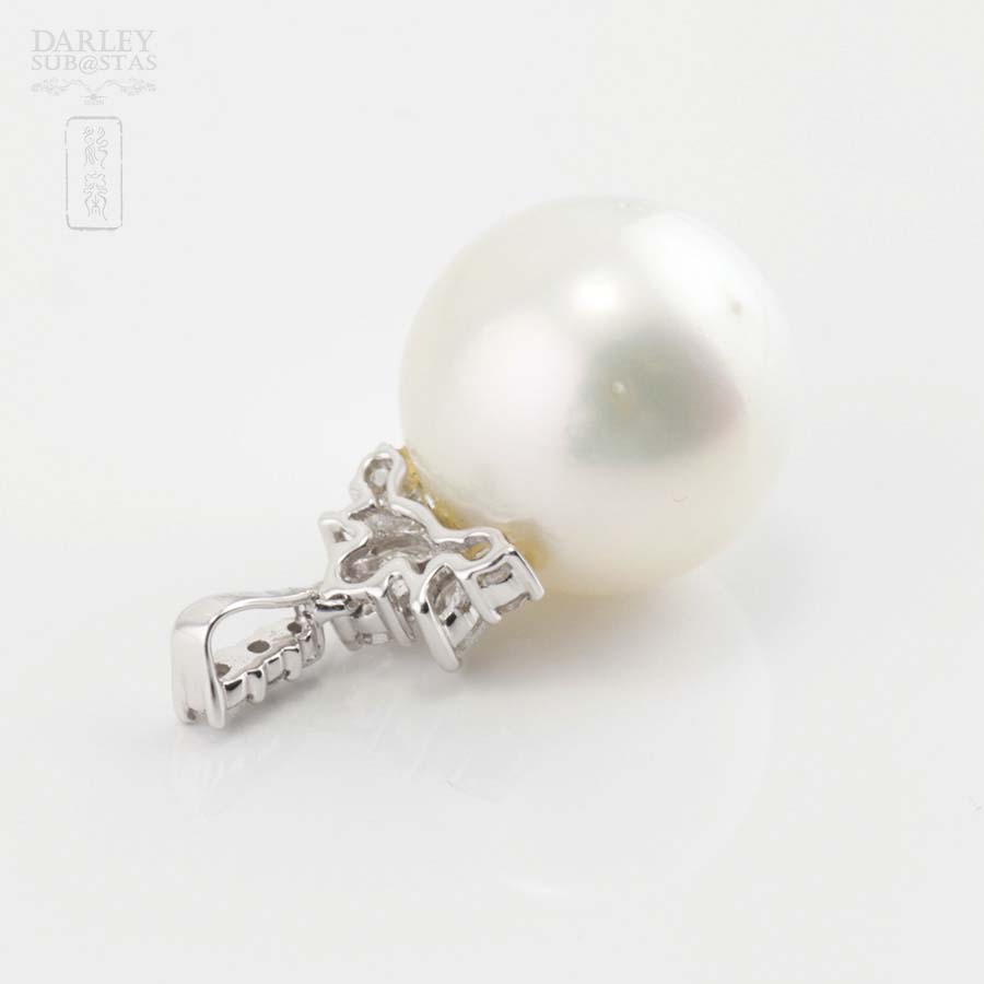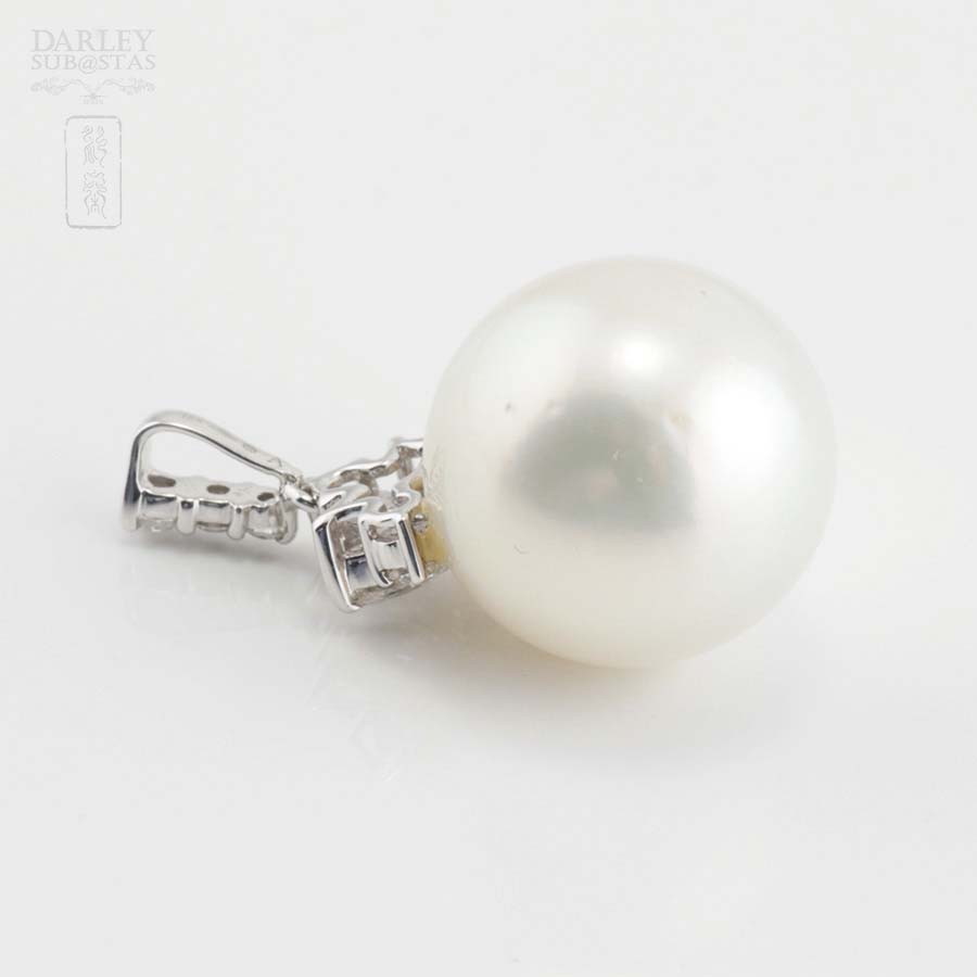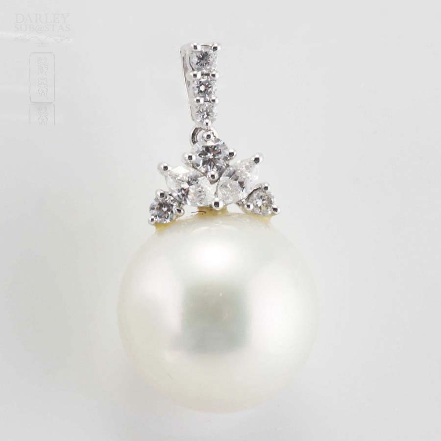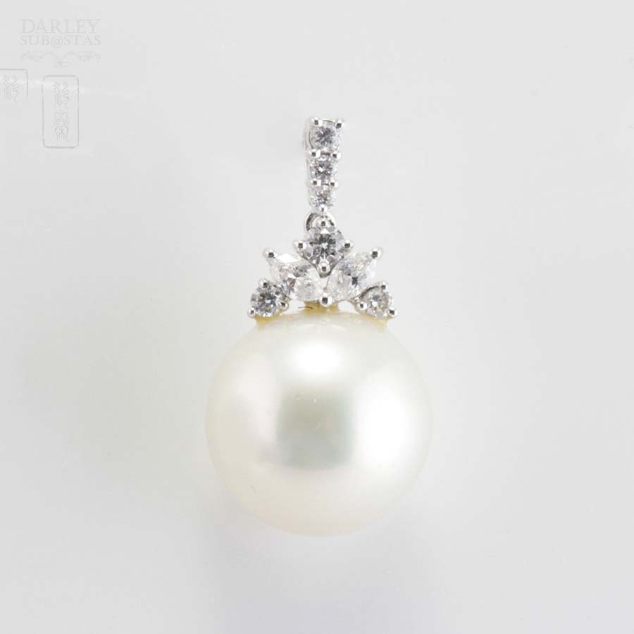 Pendant in 18k white gold. Beautiful and elegant model with 13mm natural Australian pearl. It is decorated with 6 diamonds, brilliant cut and two in carved marquise.
