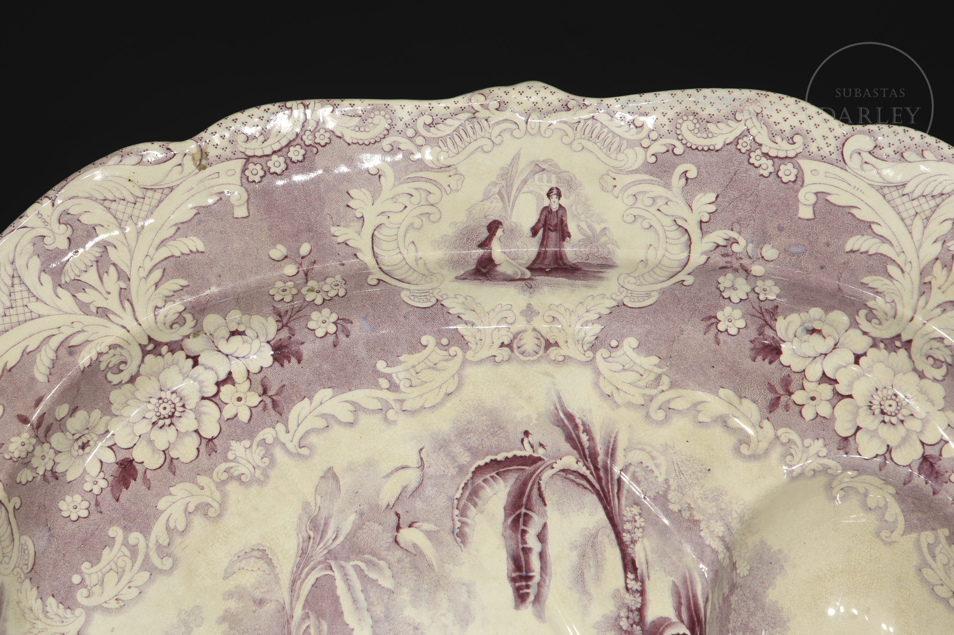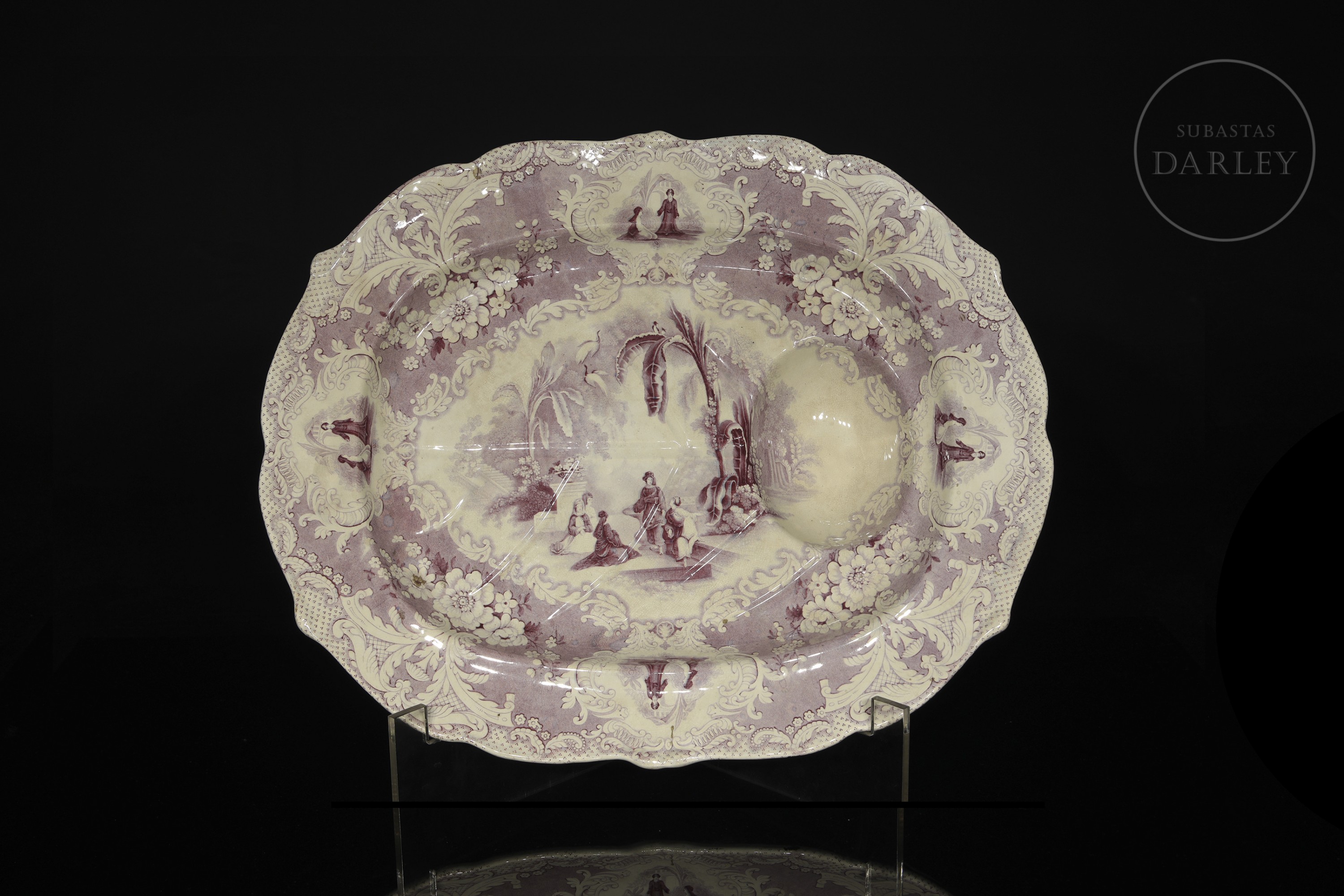 > 米德尔斯堡陶器厂,英国瓷质洗礼盆《天方夜谭》,19世纪
