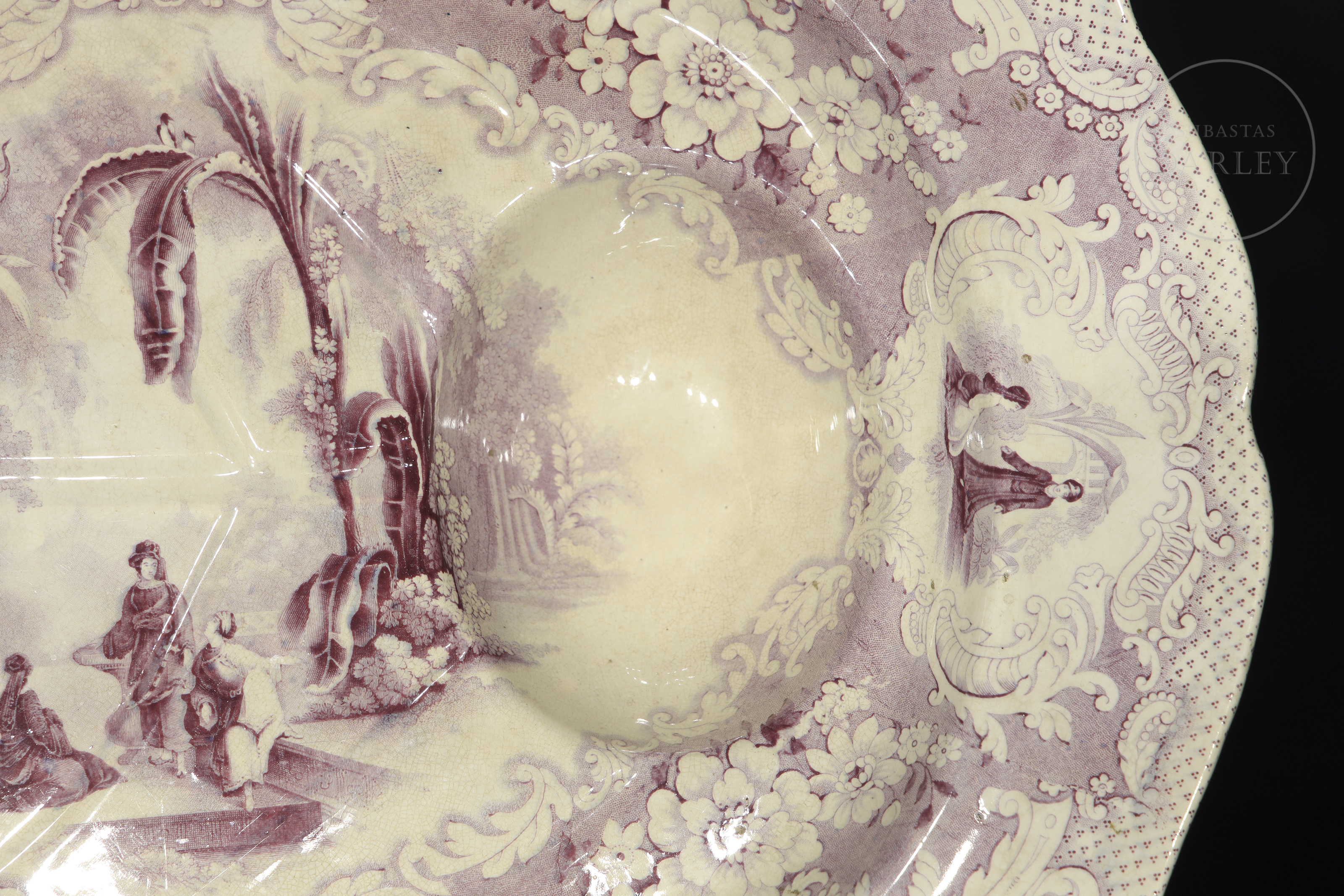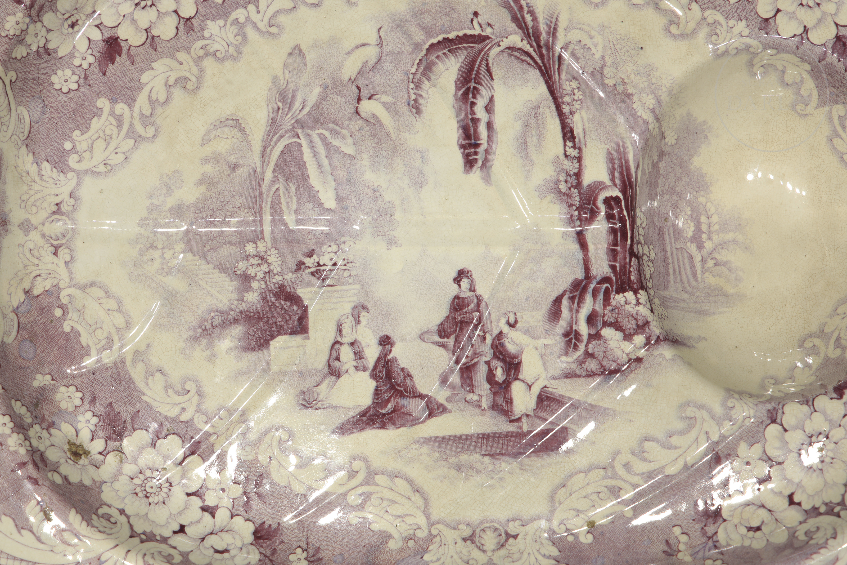 来自米德尔斯堡的英国瓷碗。此款设计是斯塔福德郡转印瓷的经典范例,背面印有“阿拉伯之夜”字样。