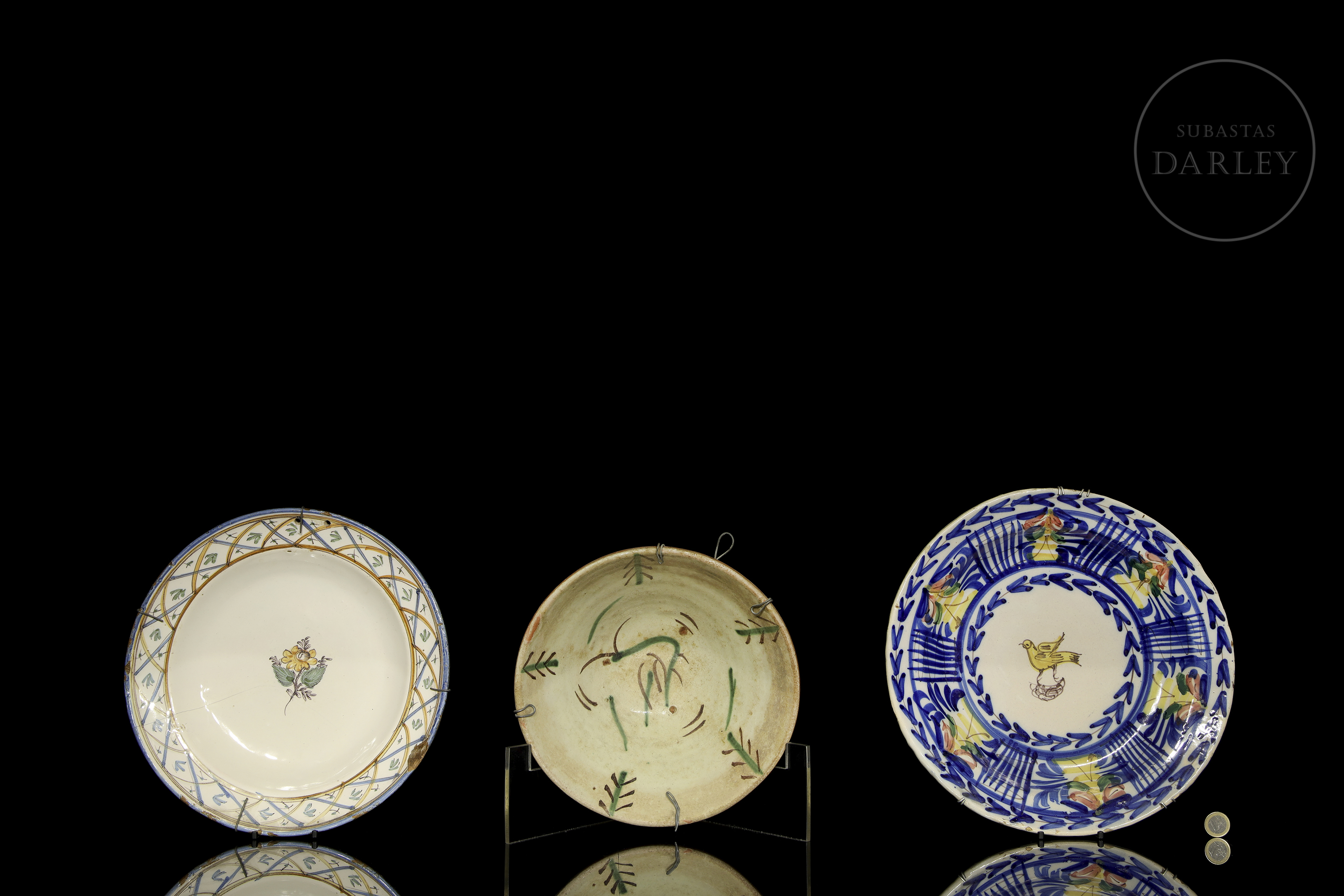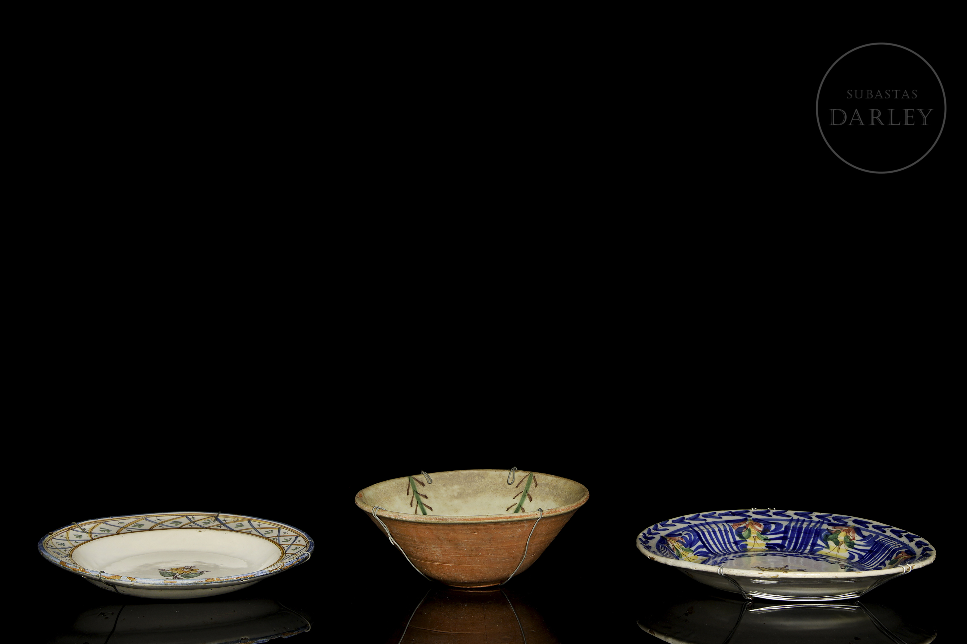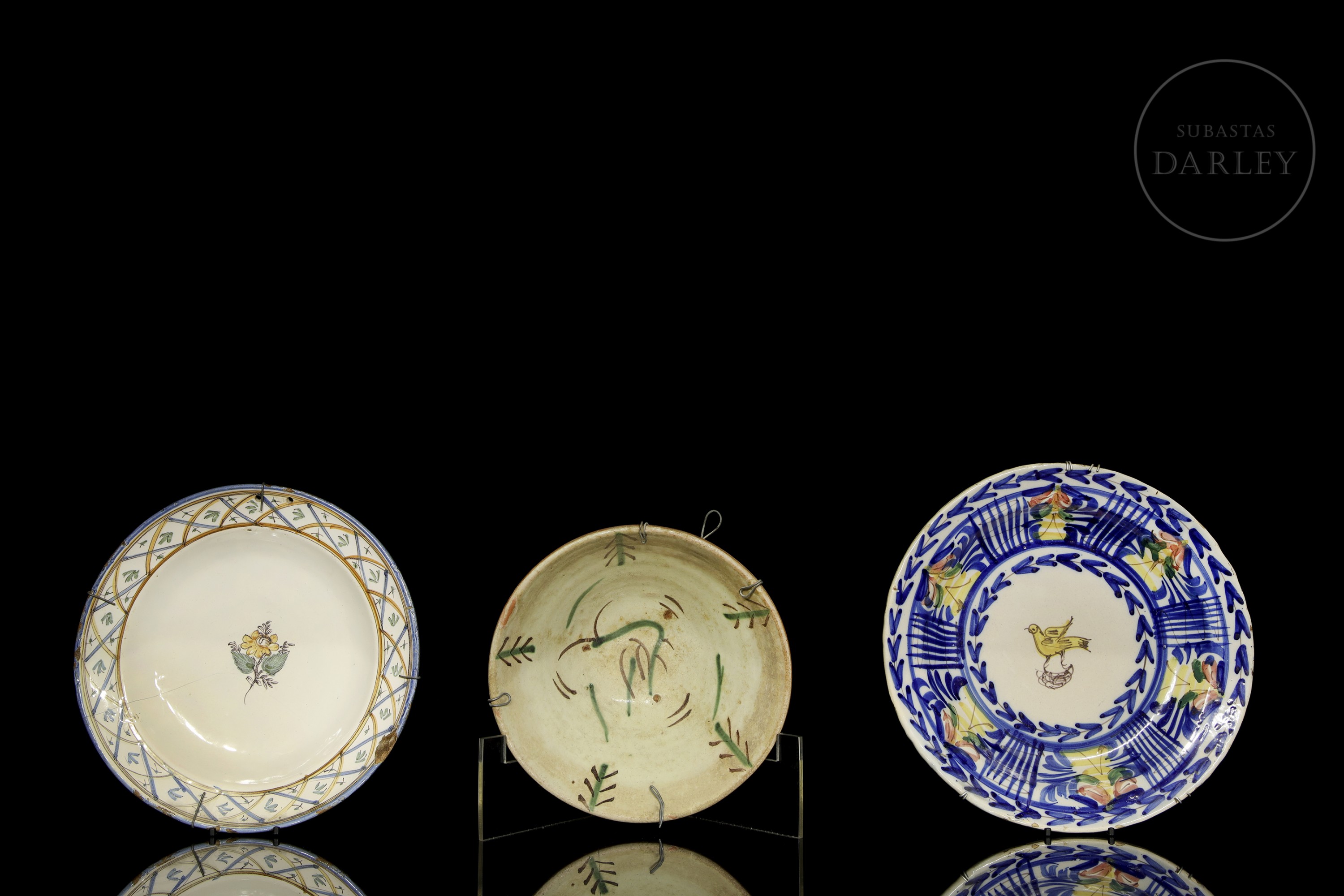 > 三件彩釉陶瓷盘,20世纪