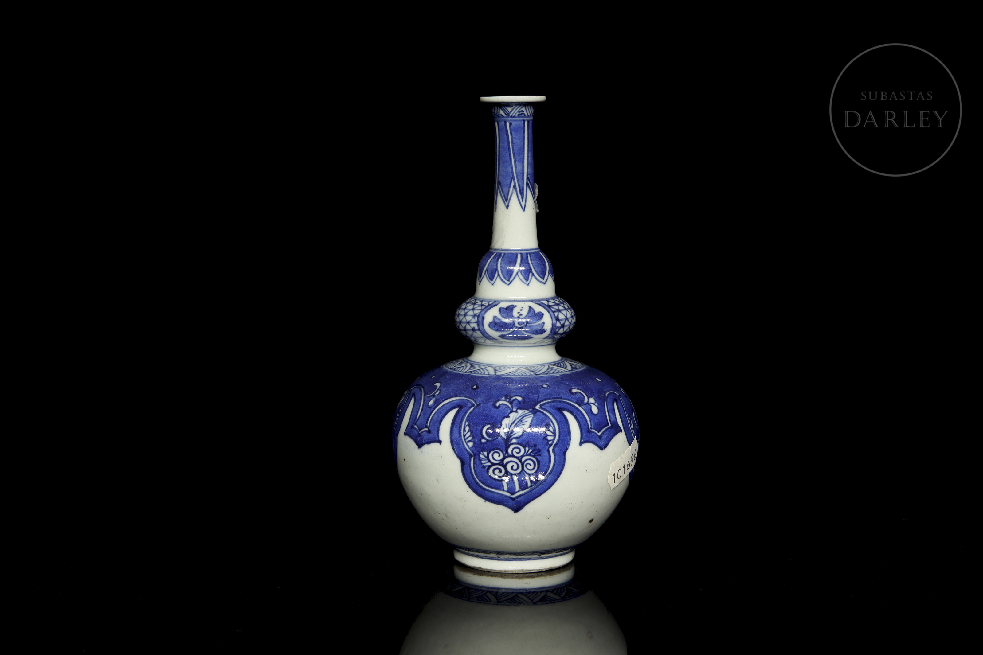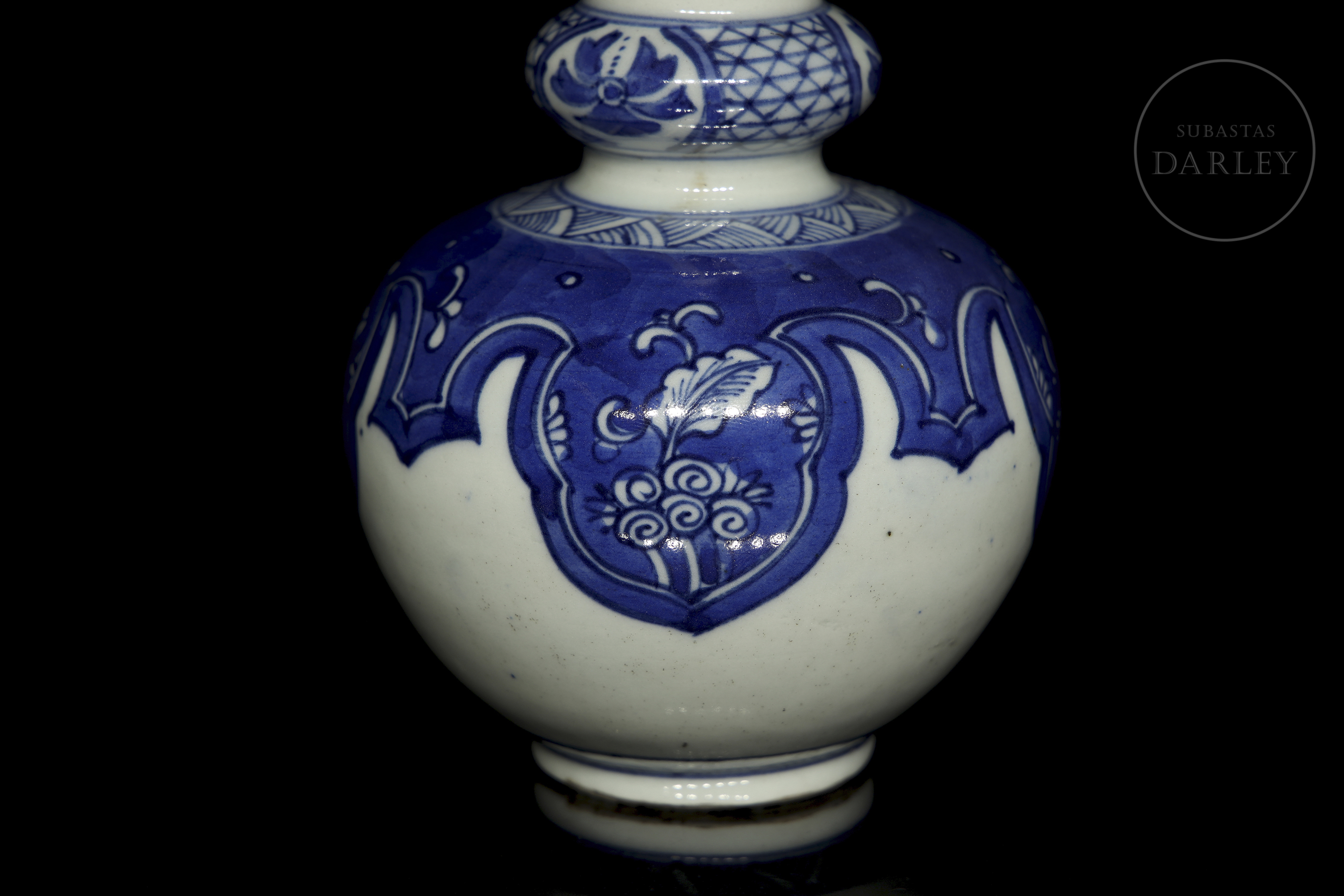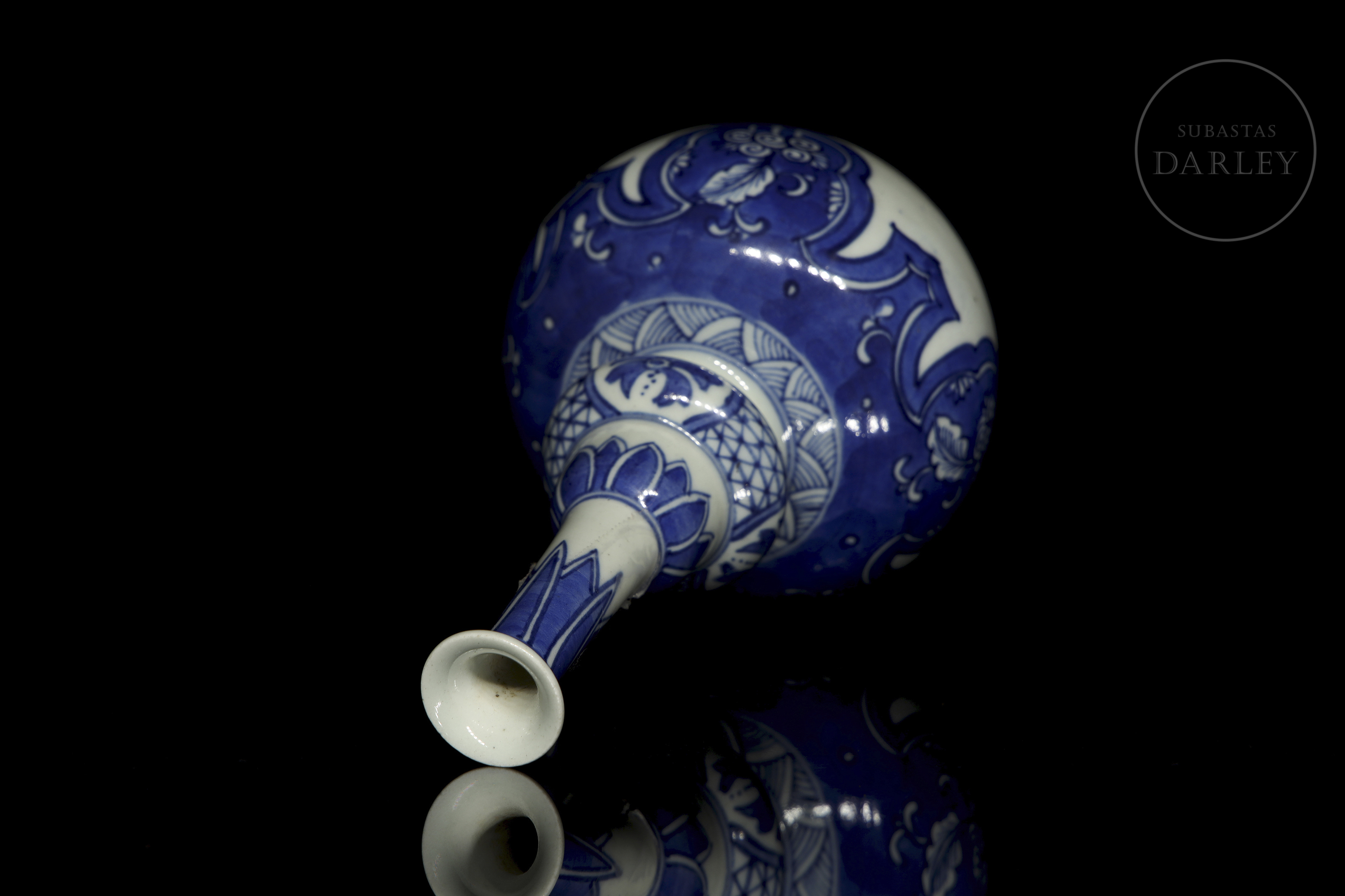 Blue and white porcelain bottle with floral motifs, Qing dynasty