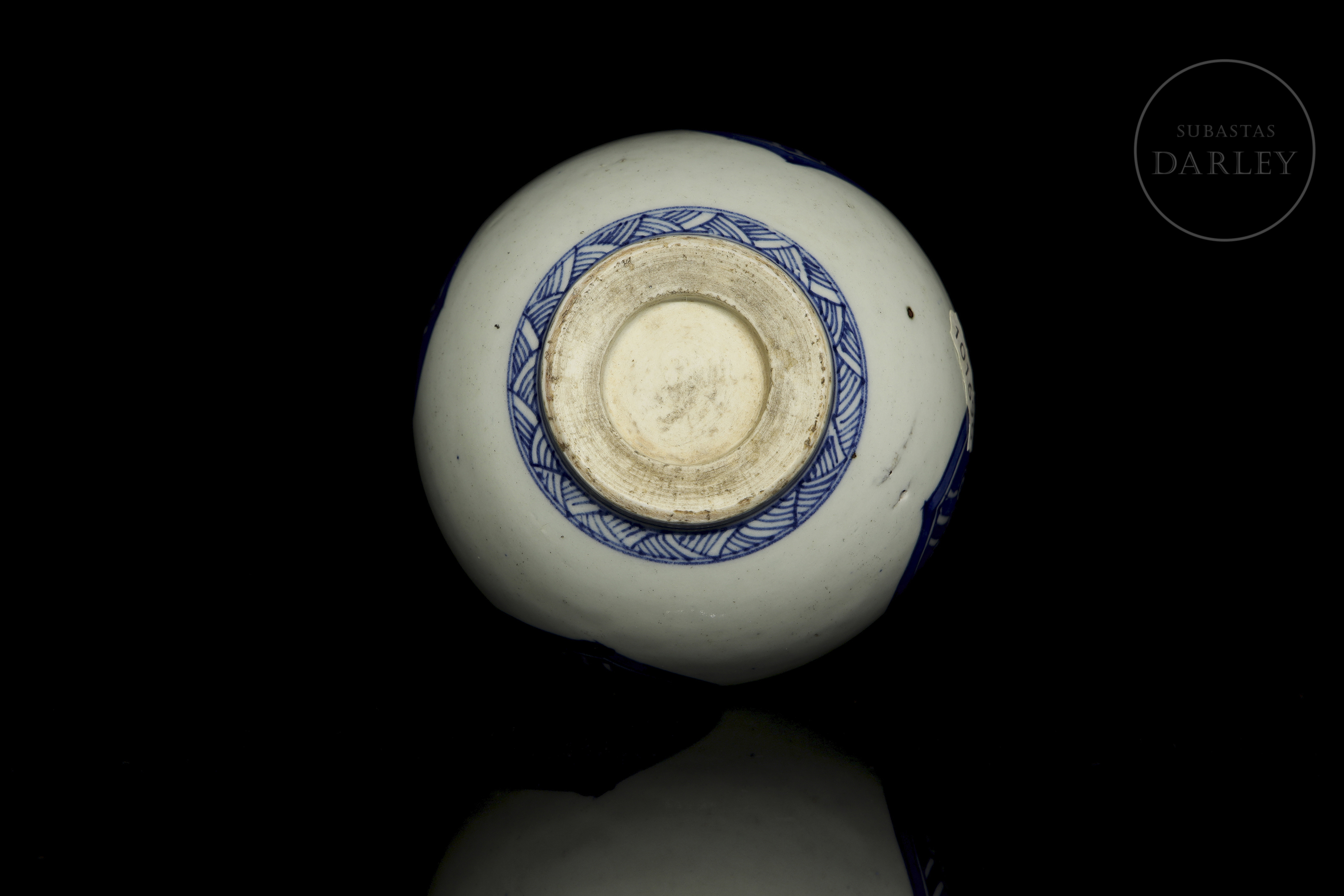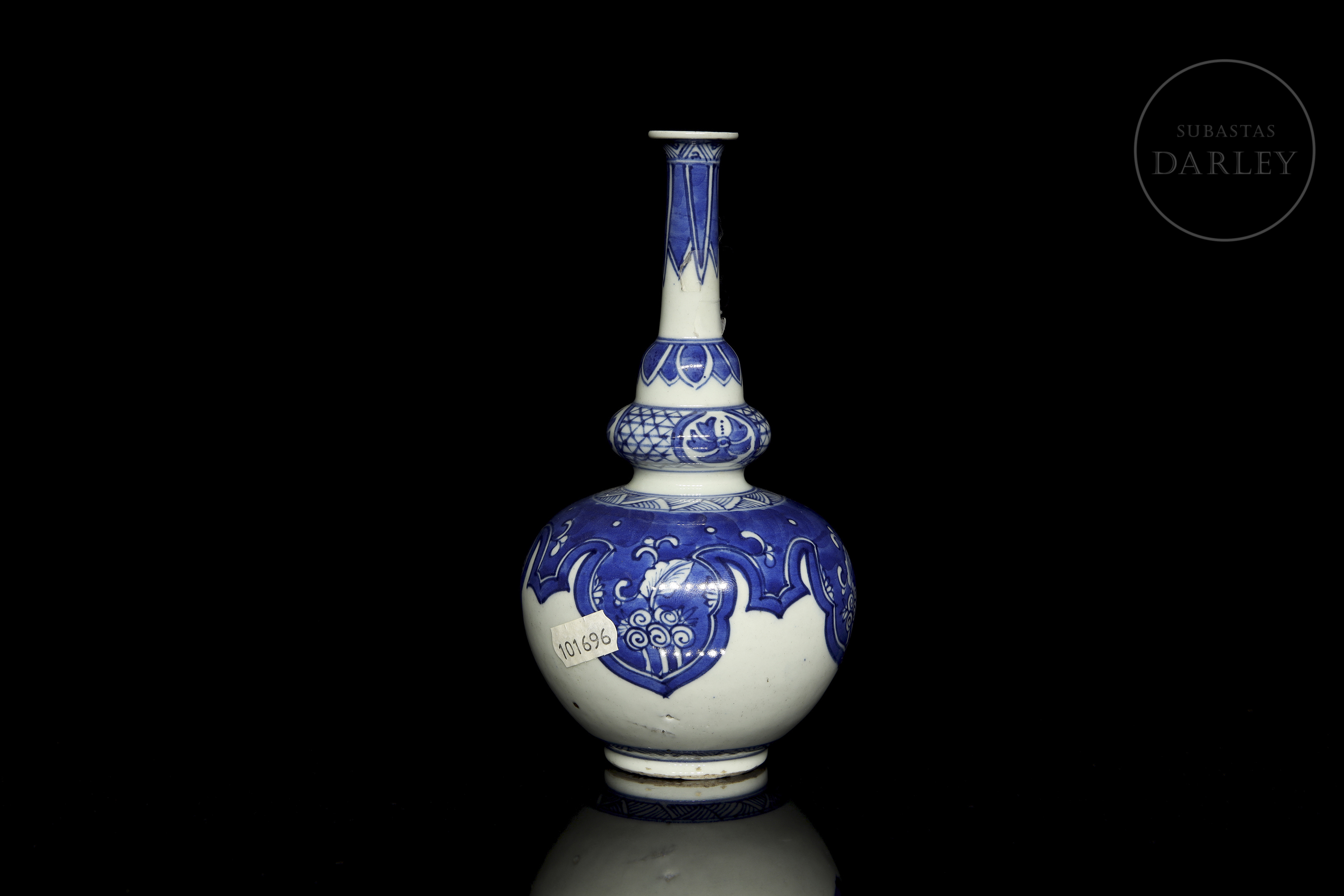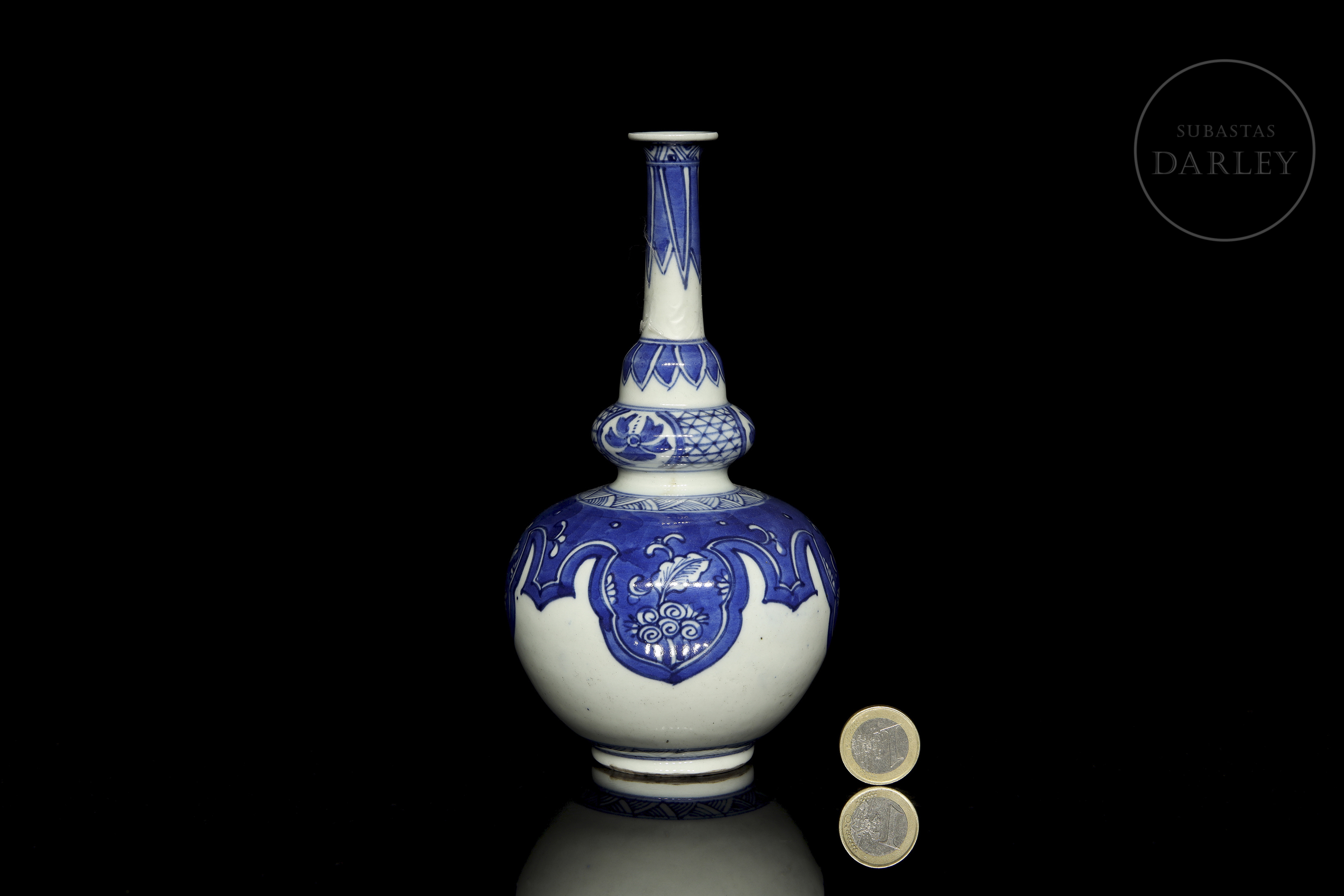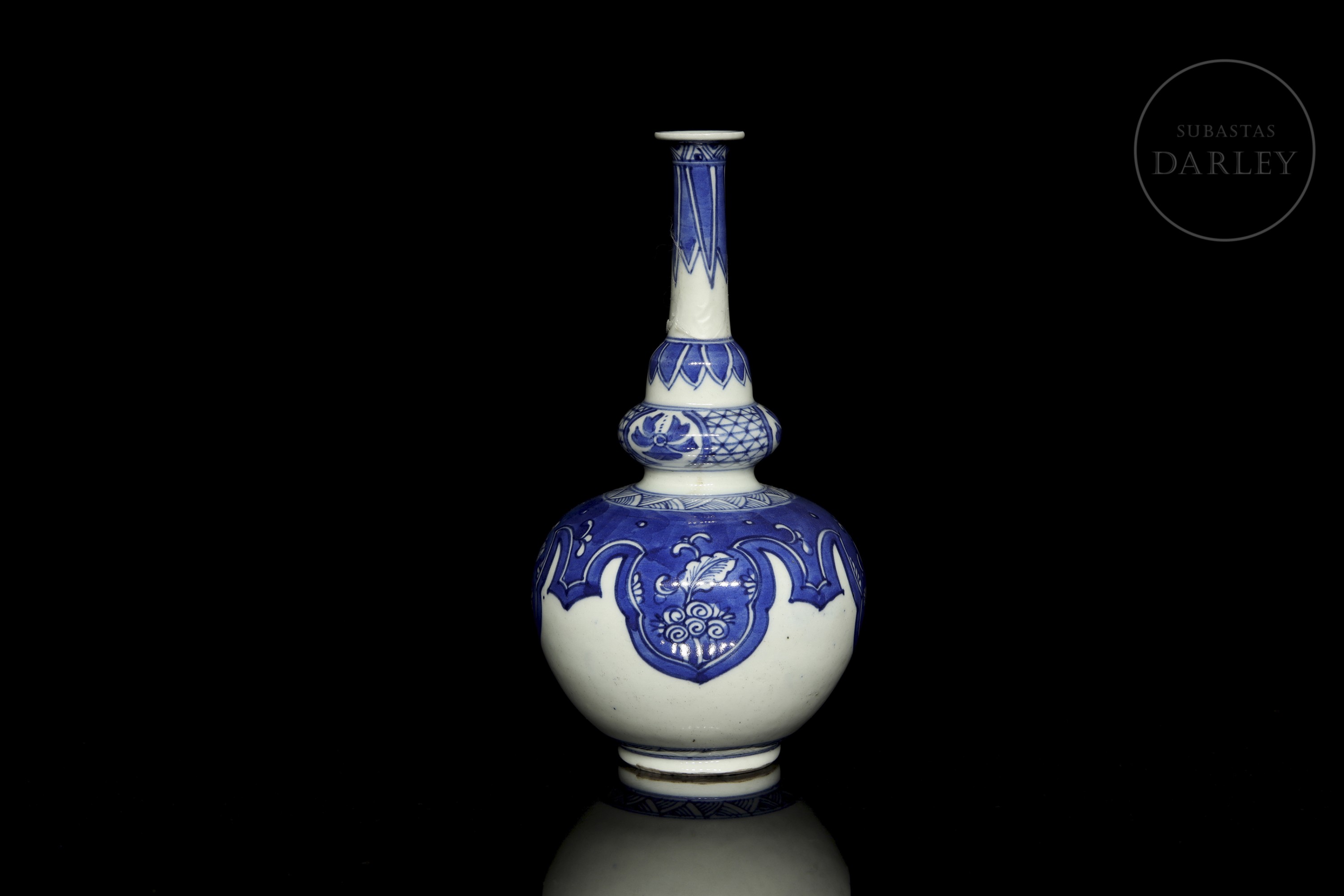 Blue and white porcelain bottle with floral motifs, Qing dynasty