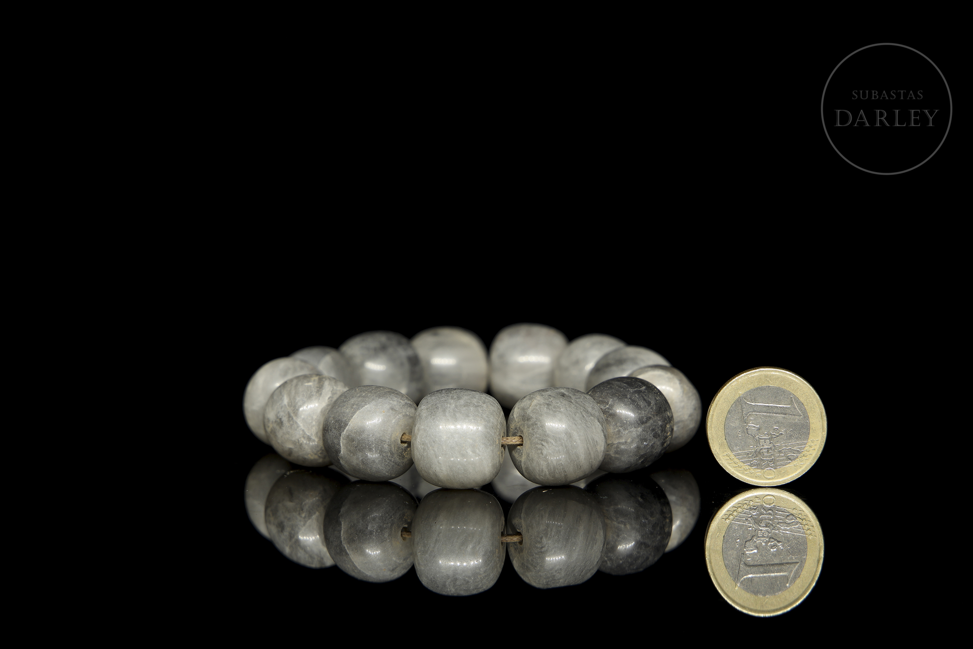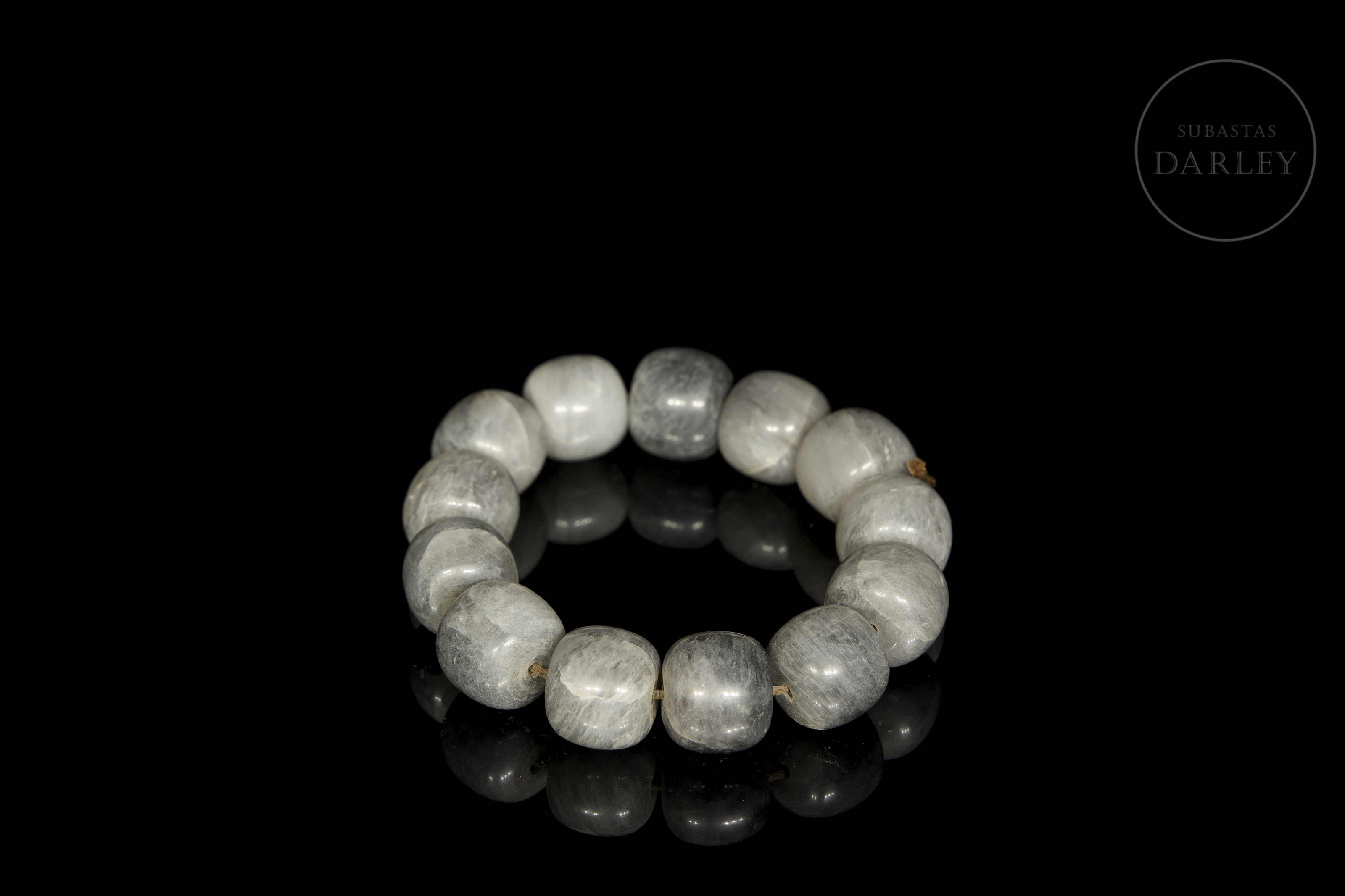 Bracelet with thirteen greyish jade beads, 20th century