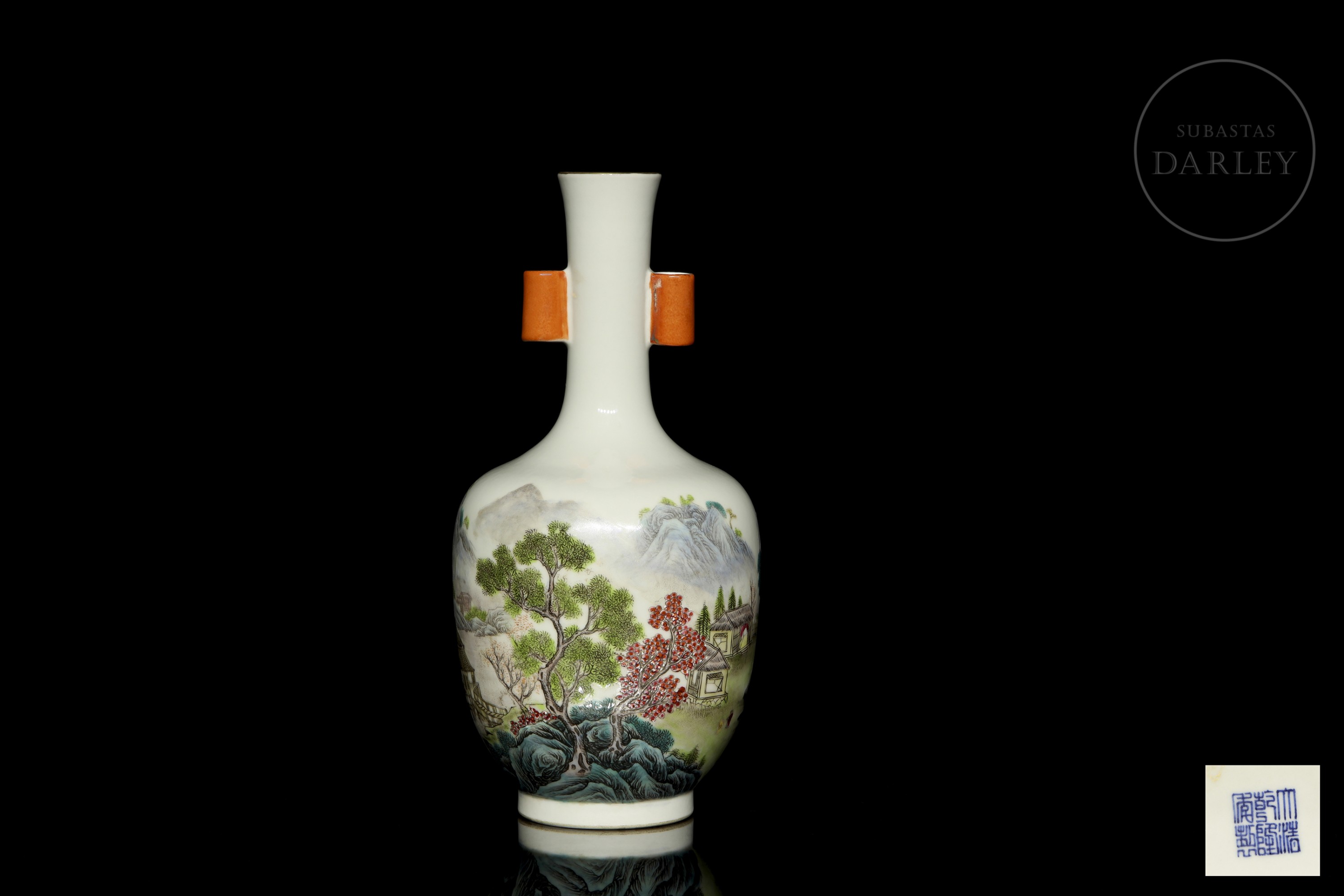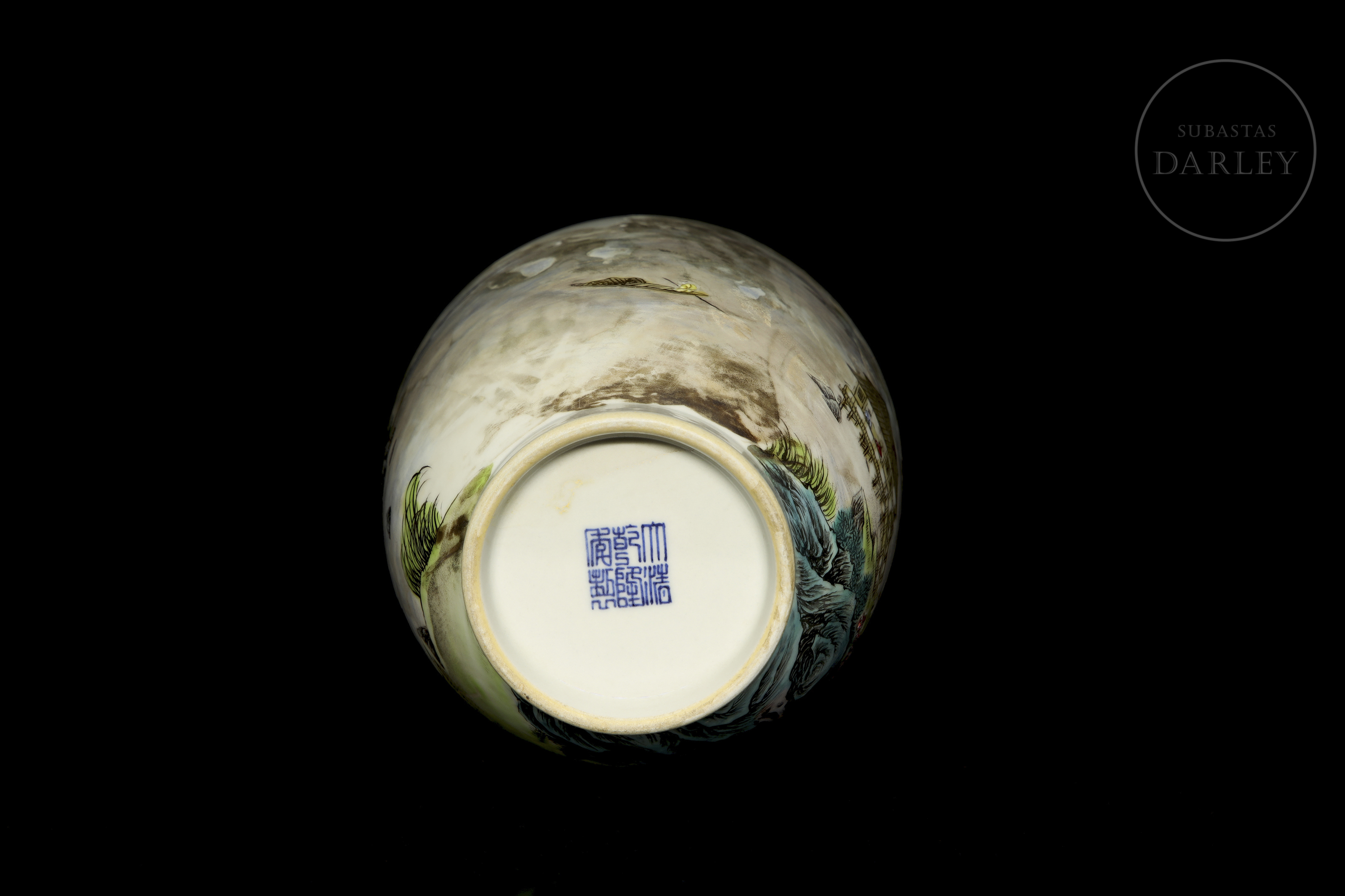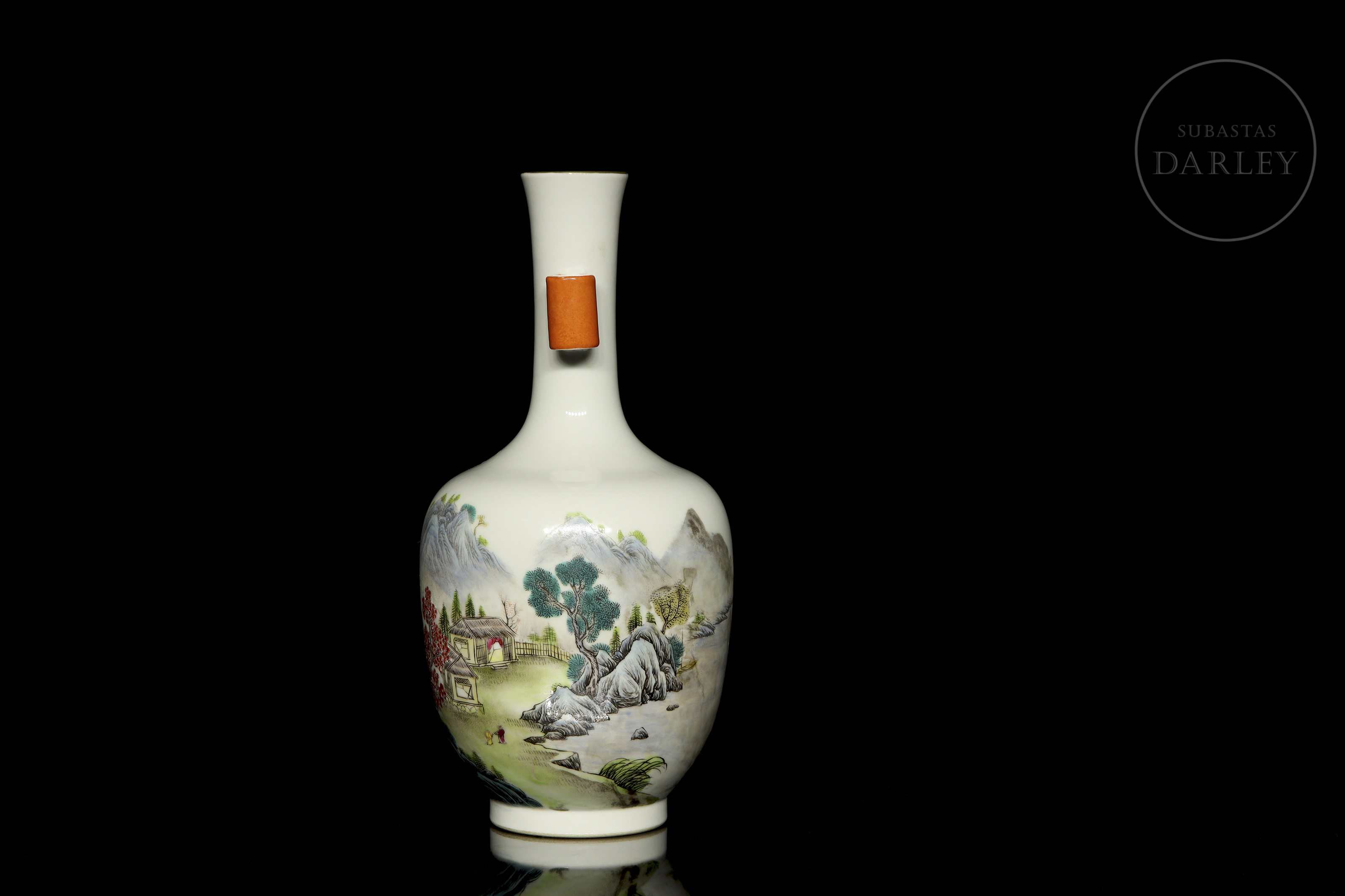 Enameled porcelain vase “Landscape”, with Qianlong mark