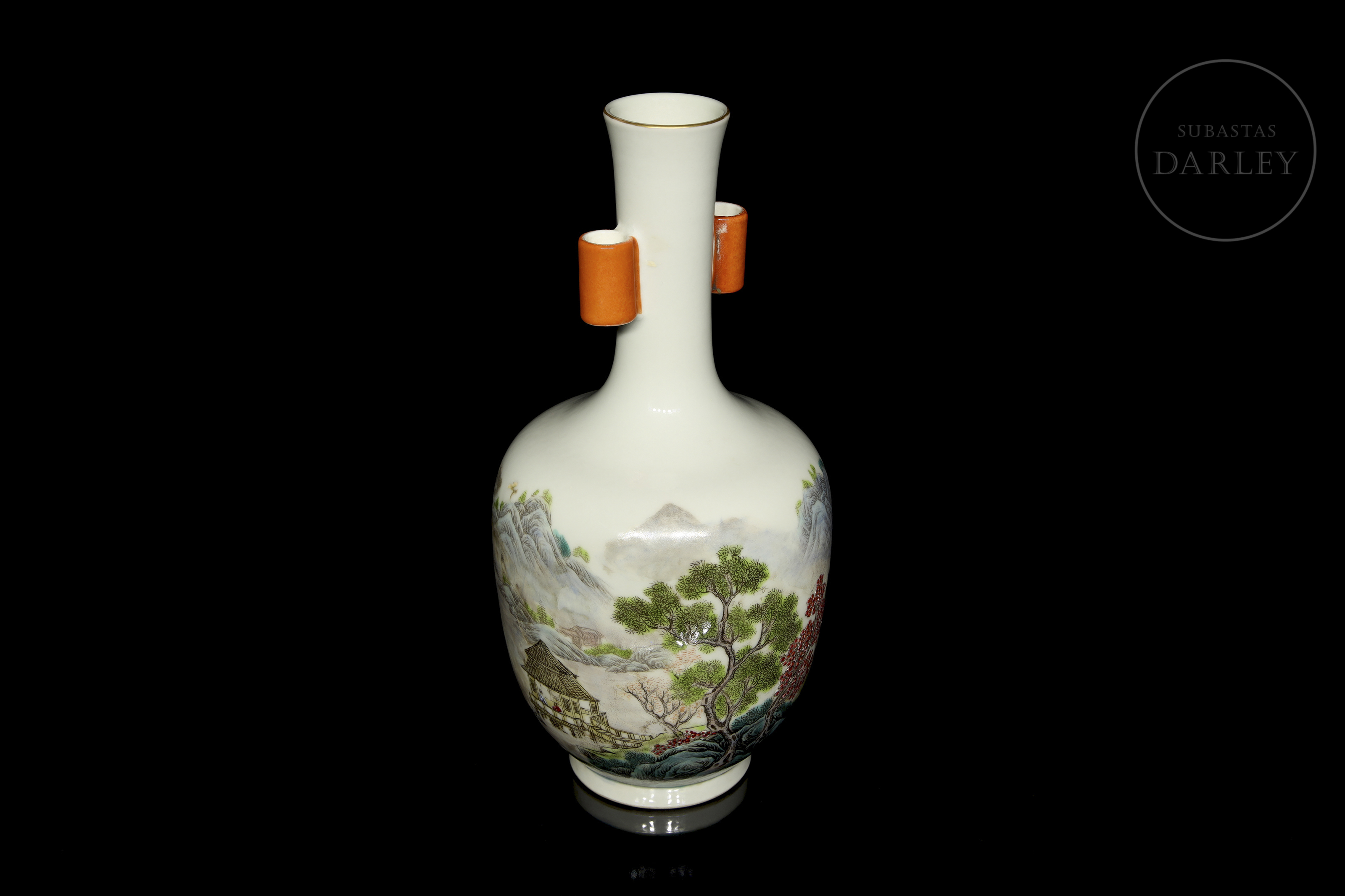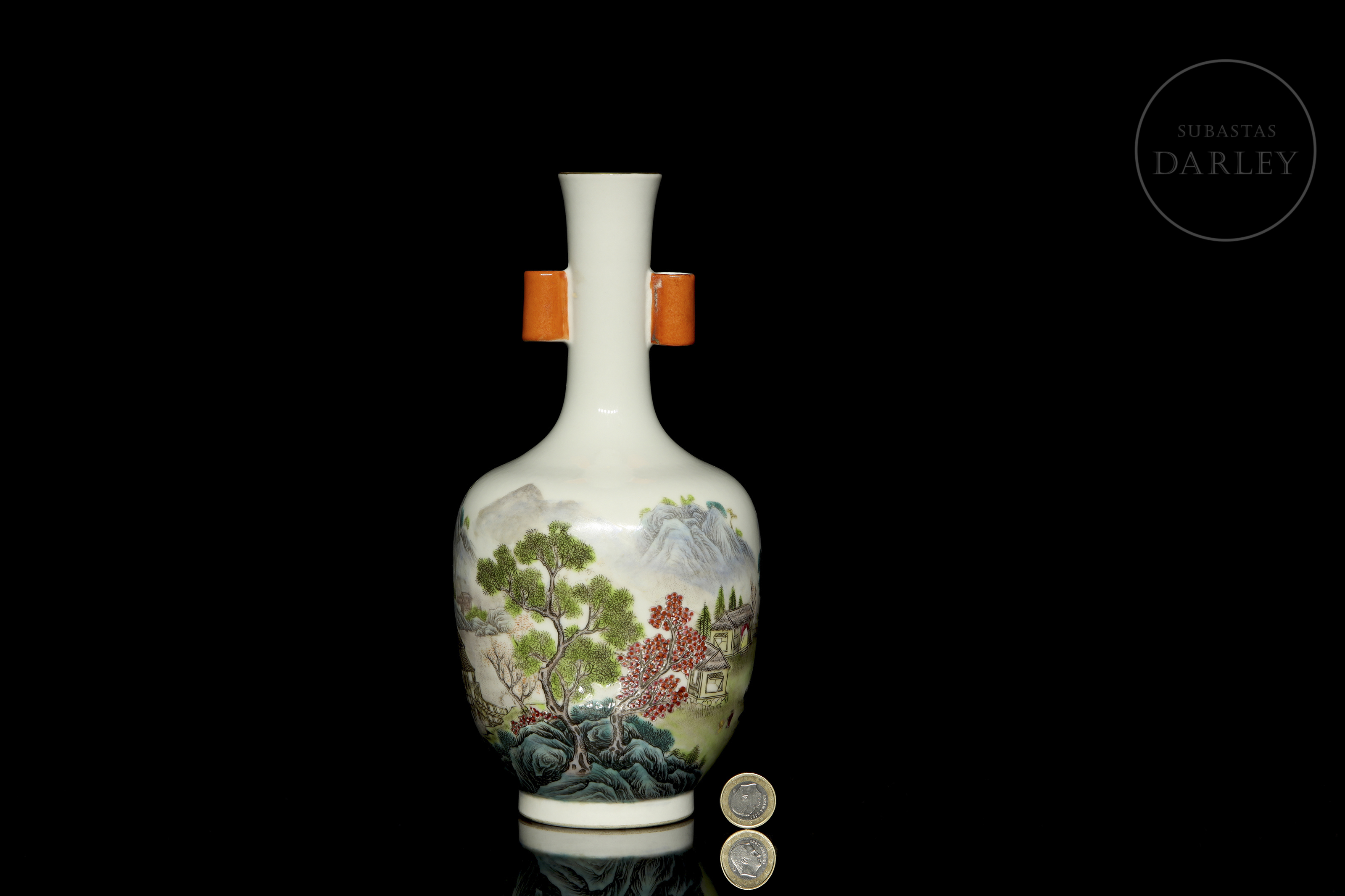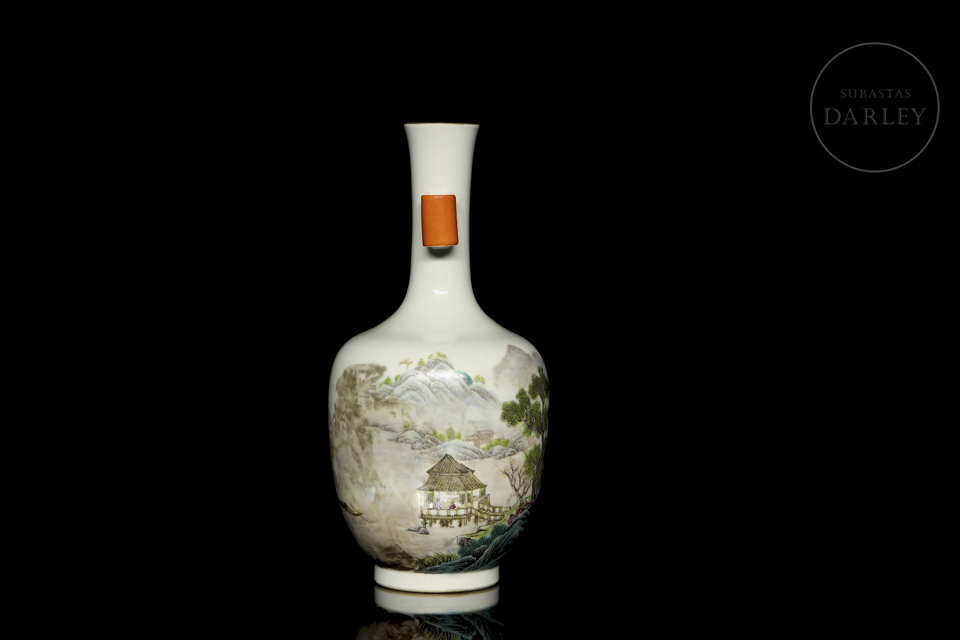 Enameled porcelain vase “Landscape”, with Qianlong mark
