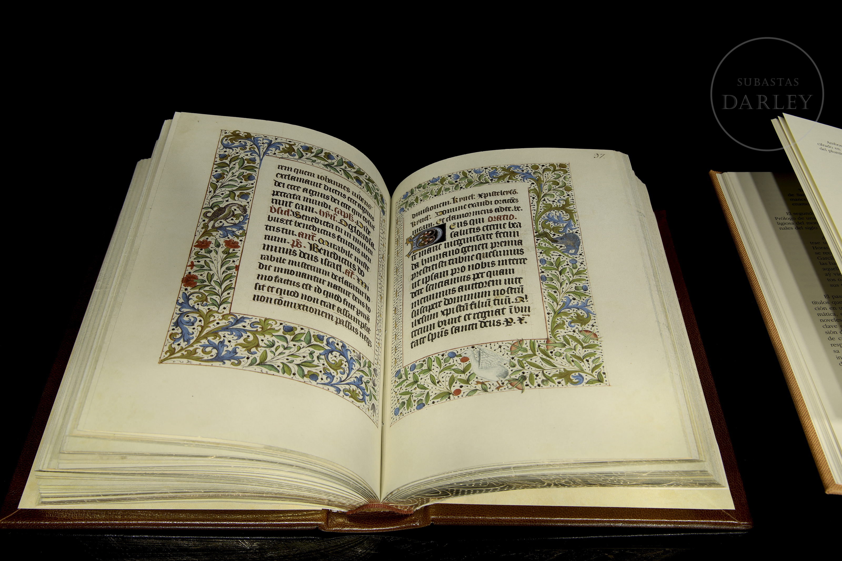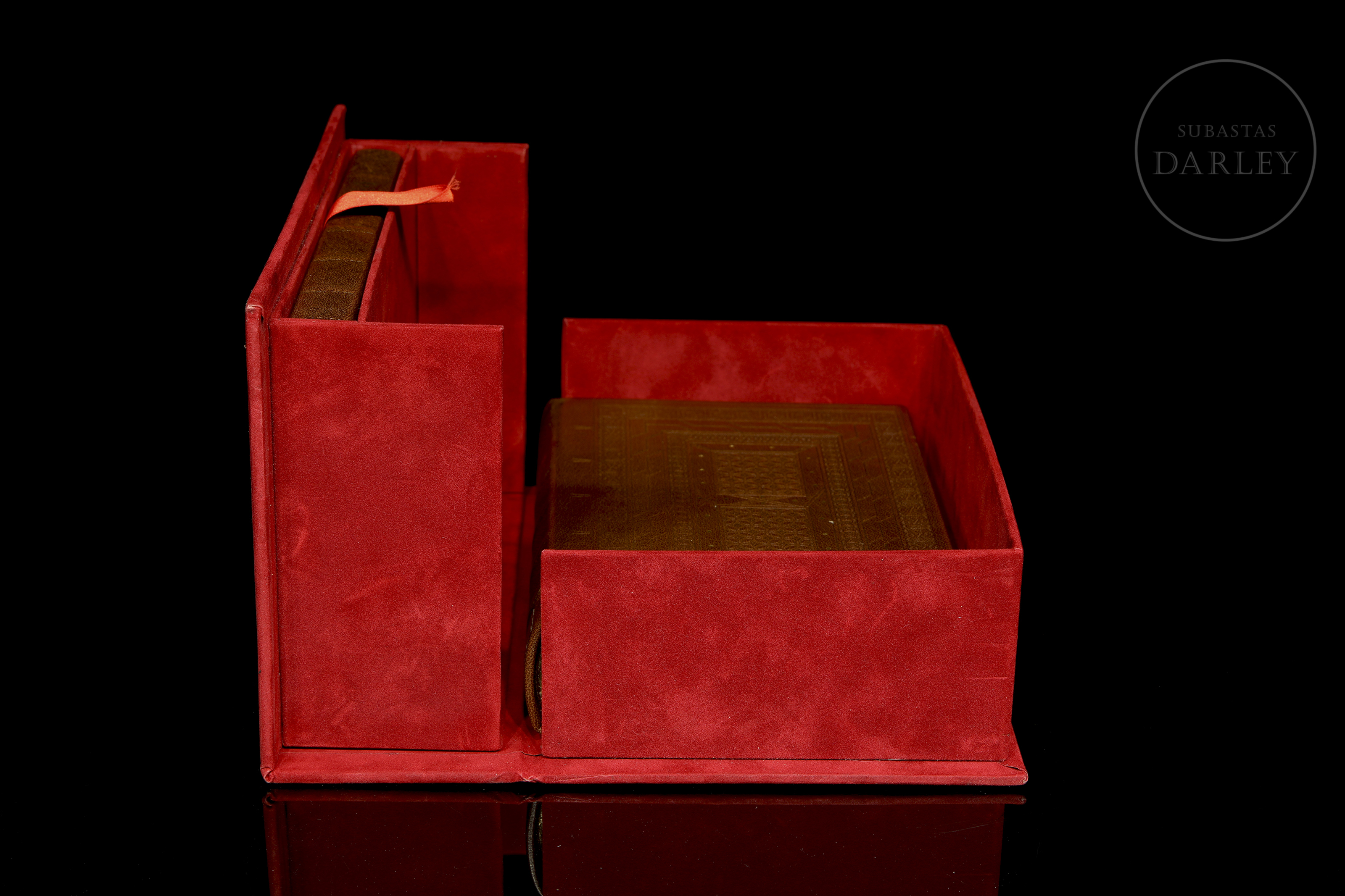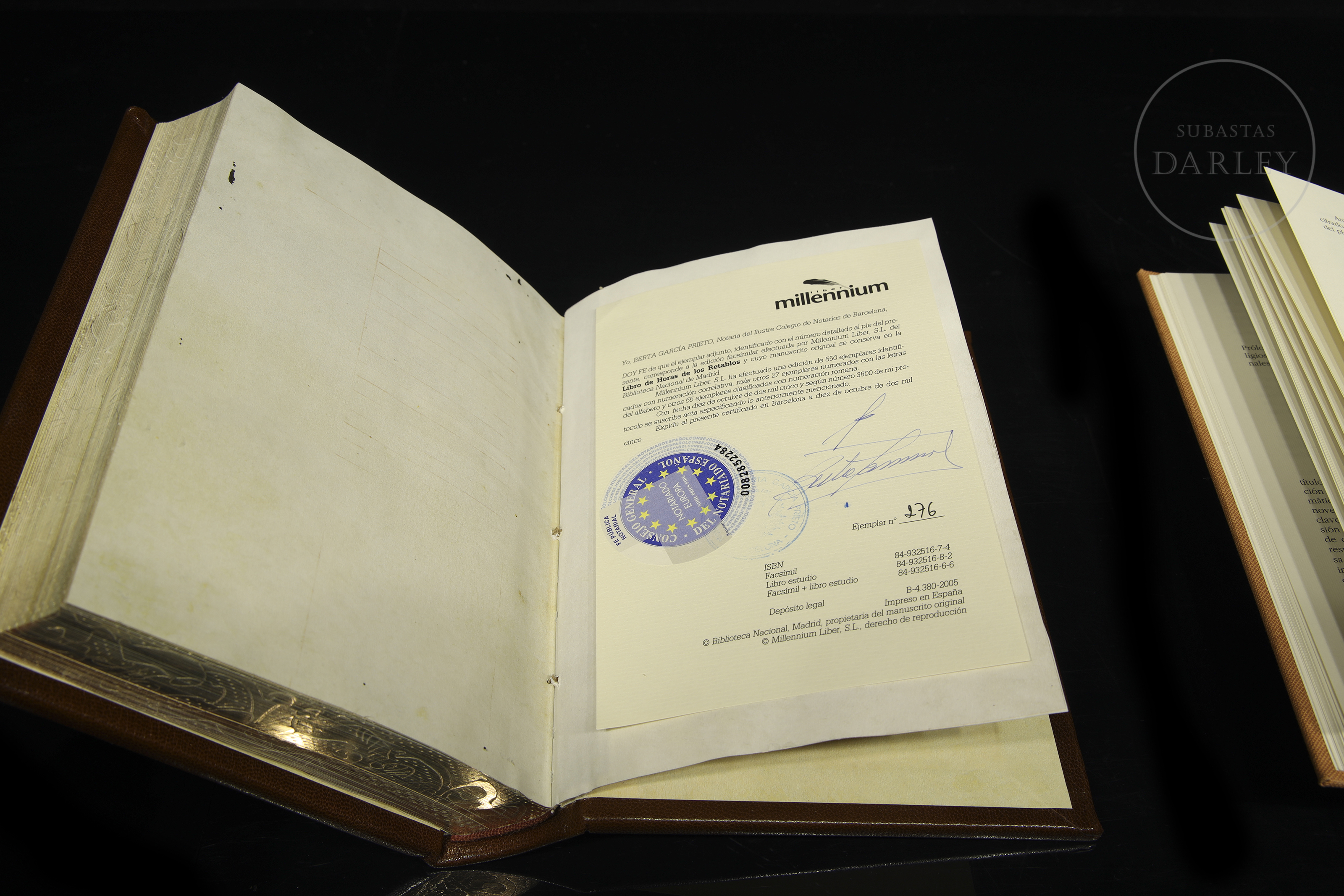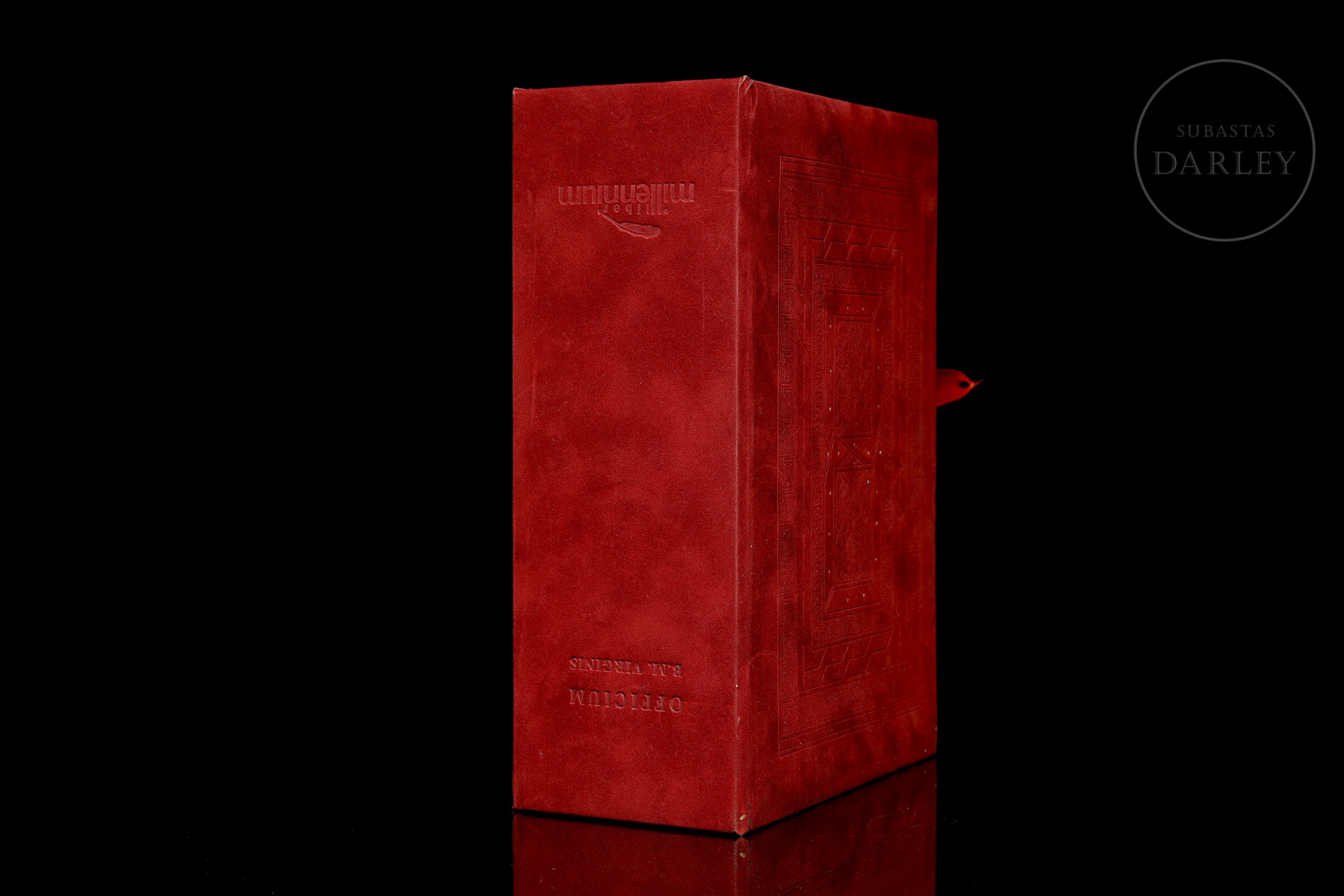 Facsimile of the "Libro de horas de los retablos" whose manuscript is preserved in the Biblioteca Nacional, Madrid. Suspicions fell on books of hours that ended up being banned by the Inquisition. This edition is proof of this as the code has been censored in one of the most popular prayers to Mary. The marked text is a historical document that bears witness to the dangers inherent in intransigence and intolerance. Published by Millennium Liber sl. The edition consists of 550 copies, this one numbered 276. Two books in a beautiful wooden case lined with red velvet.