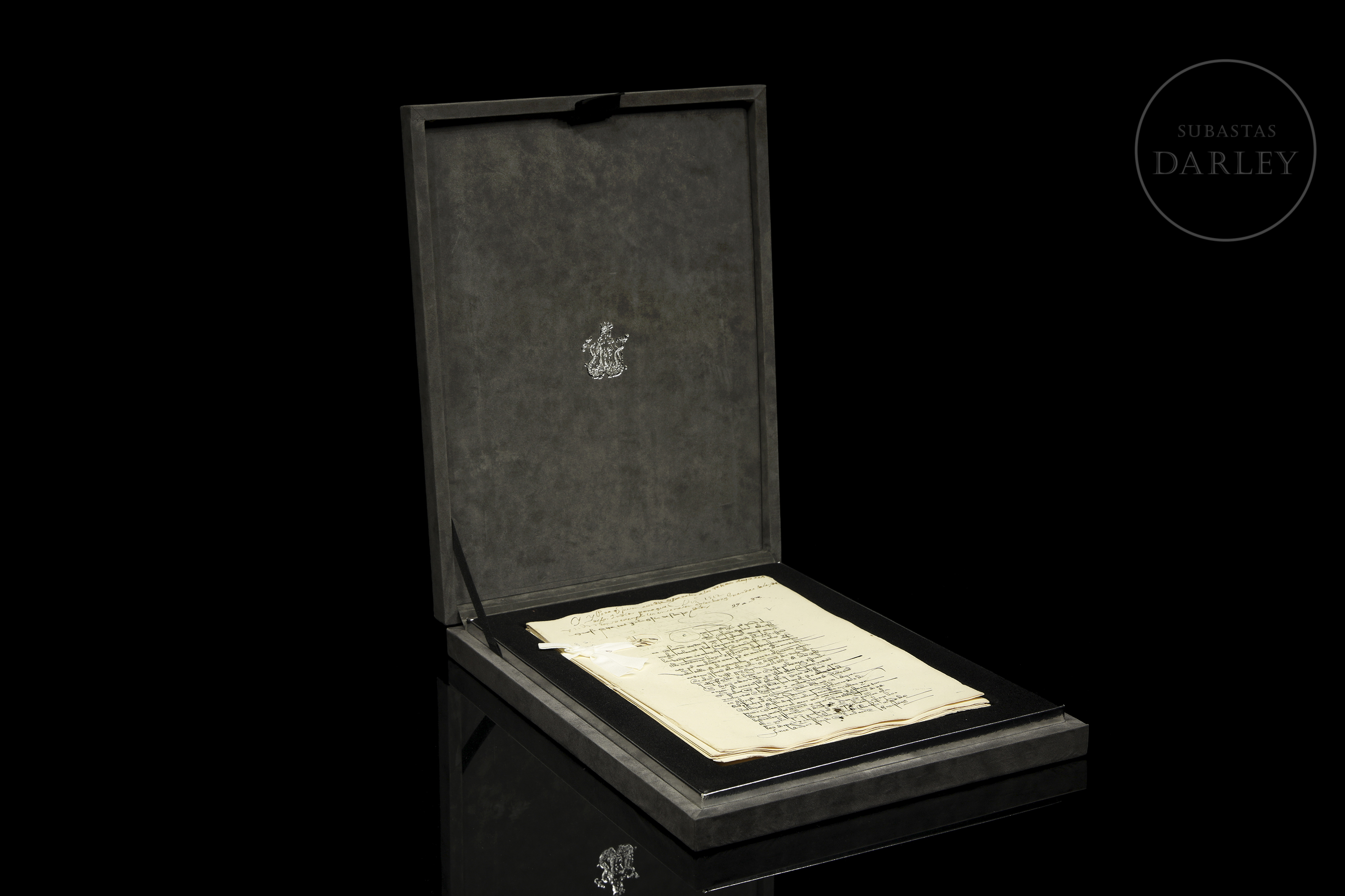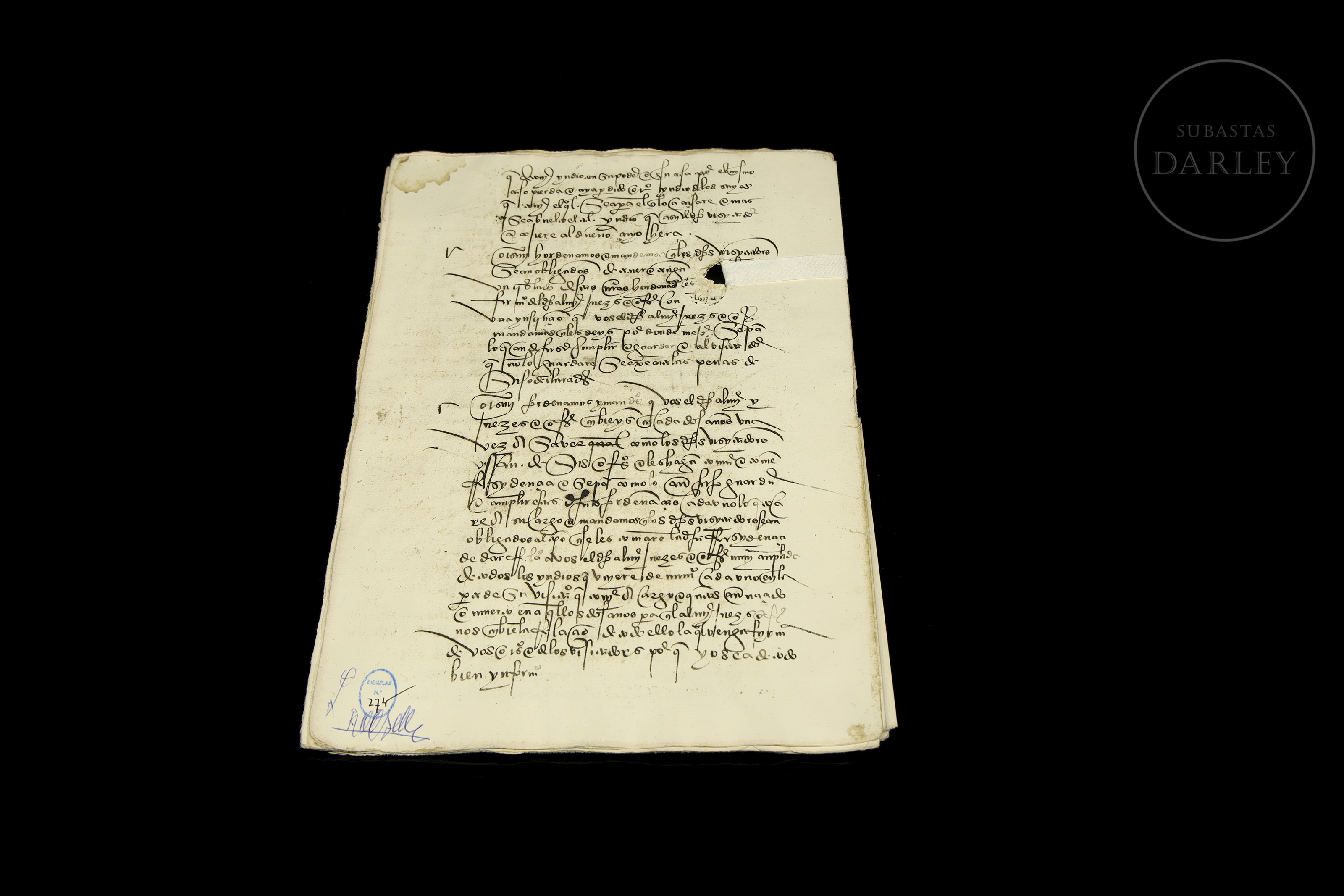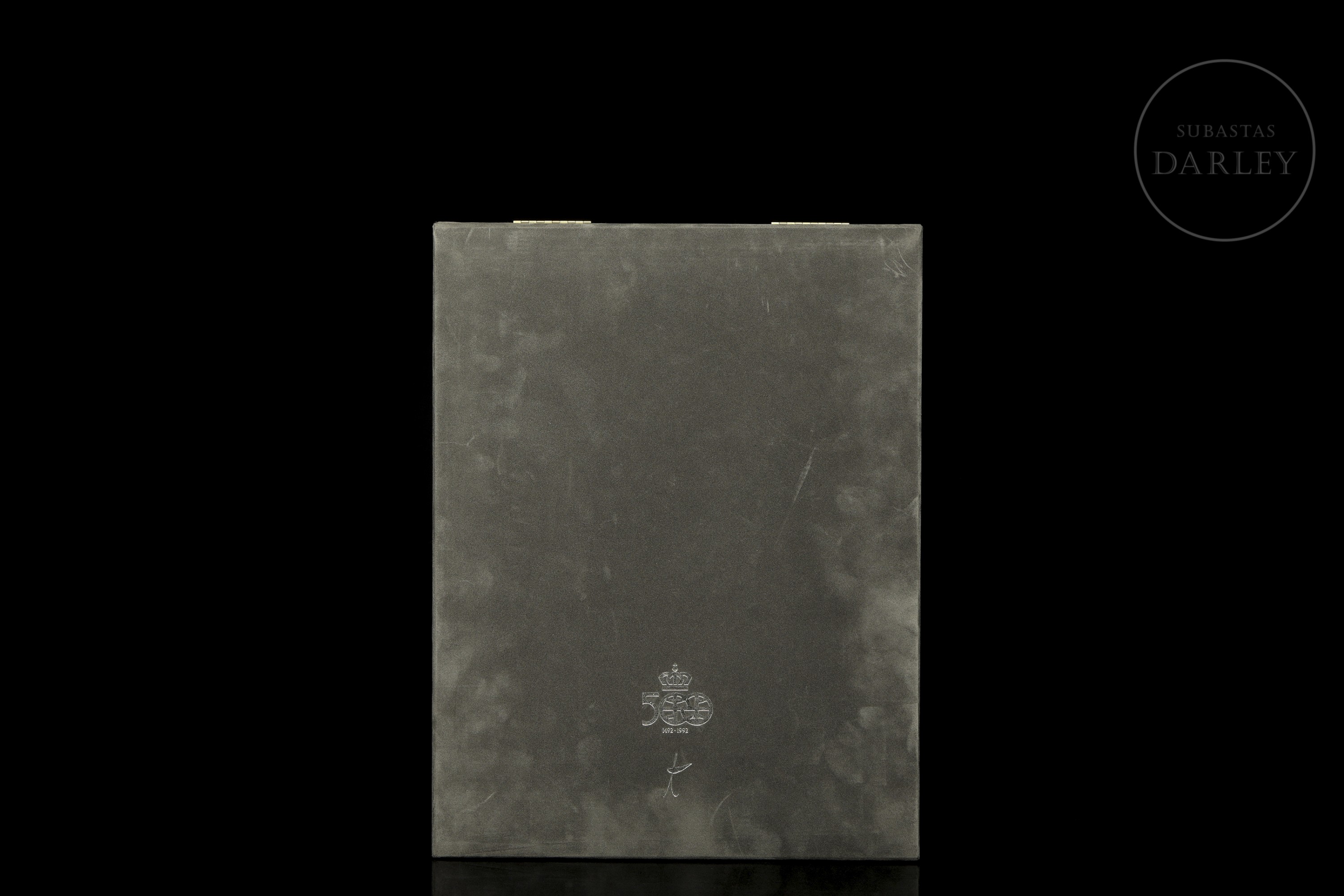 Facsimile reproduction of the codex preserved in the Archivo General de Simancas in a limited edition, with a total of 980 copies, this being number 274. Accompanied by a study book by José Manuel Ruiz Asencio. Tabulae Americae Collection. Testimonio Compañía Editorial, Madrid, 1991.