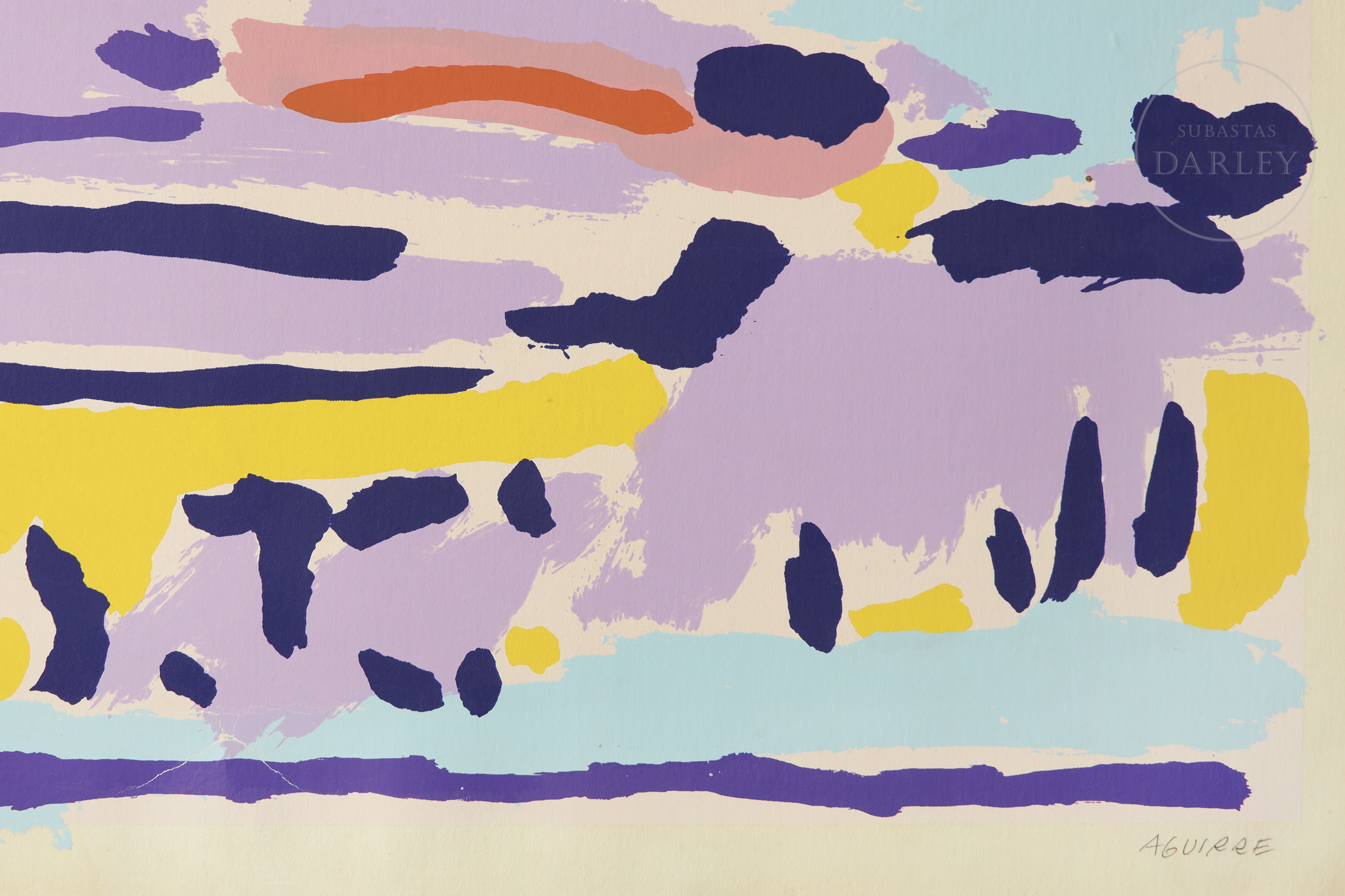 Silkscreen on paper. Signed “Aguirre” in the lower right corner. Numbered 380/750 in the lower left corner.