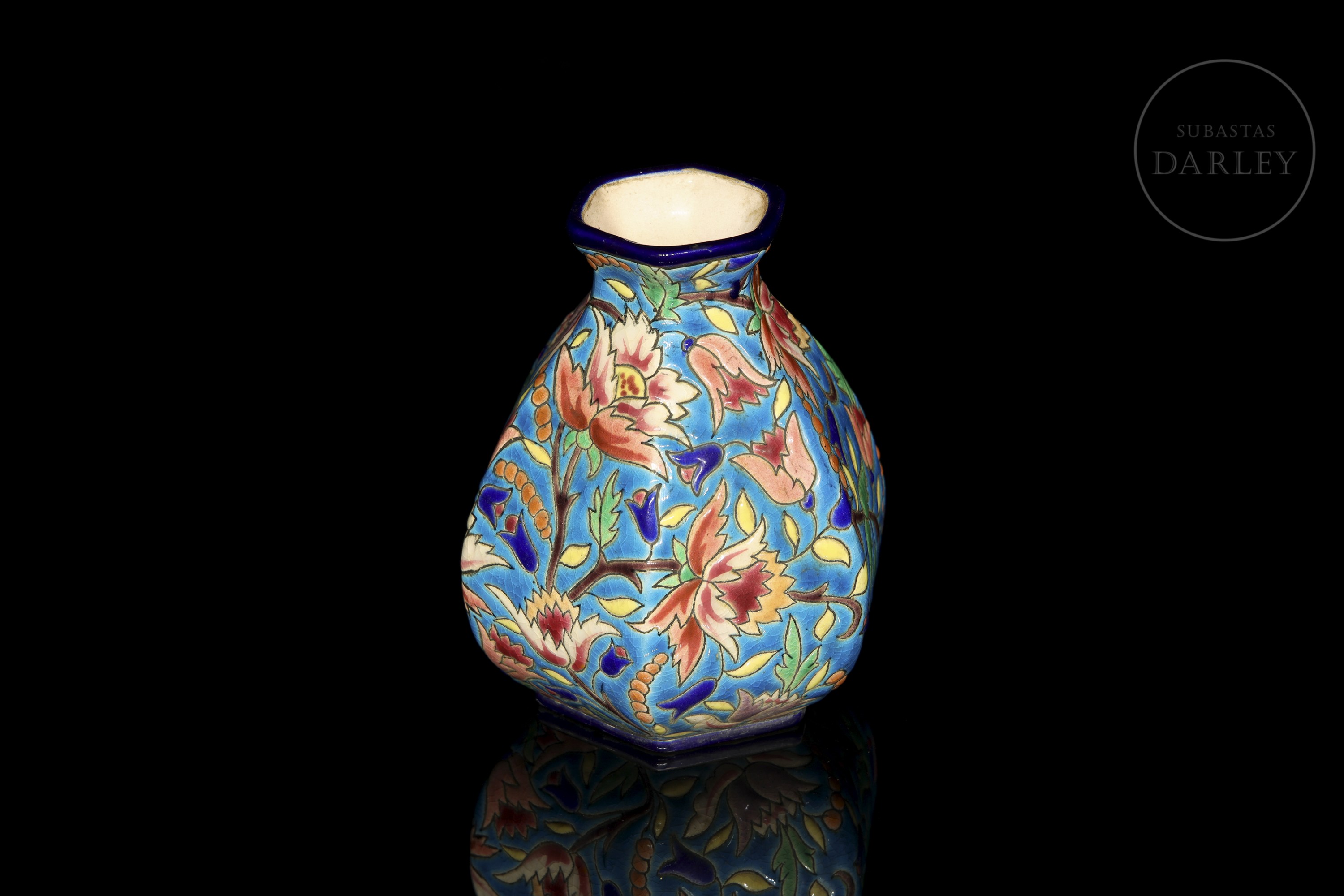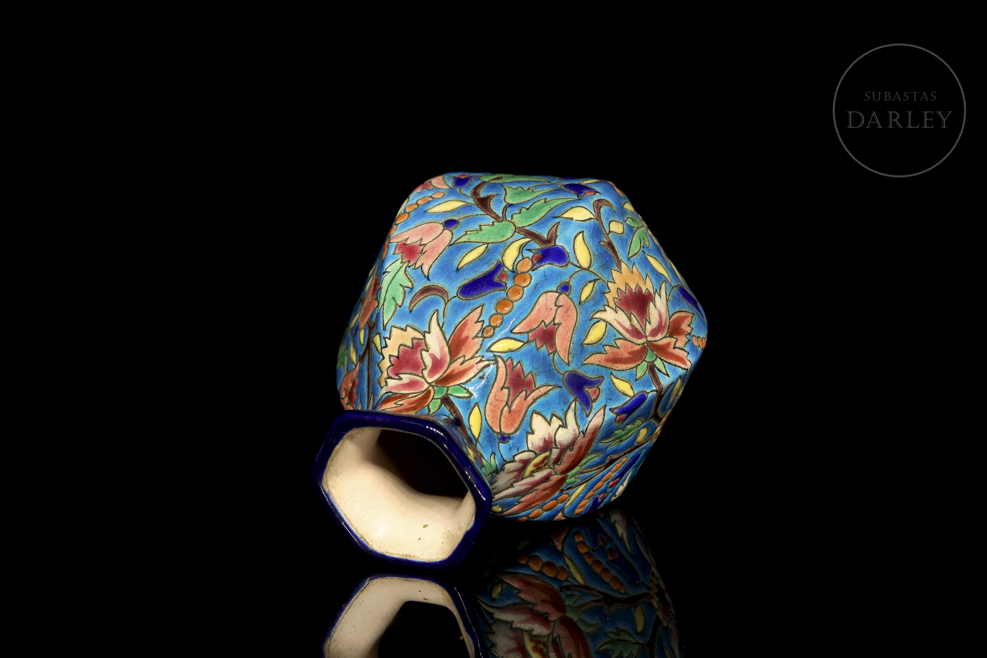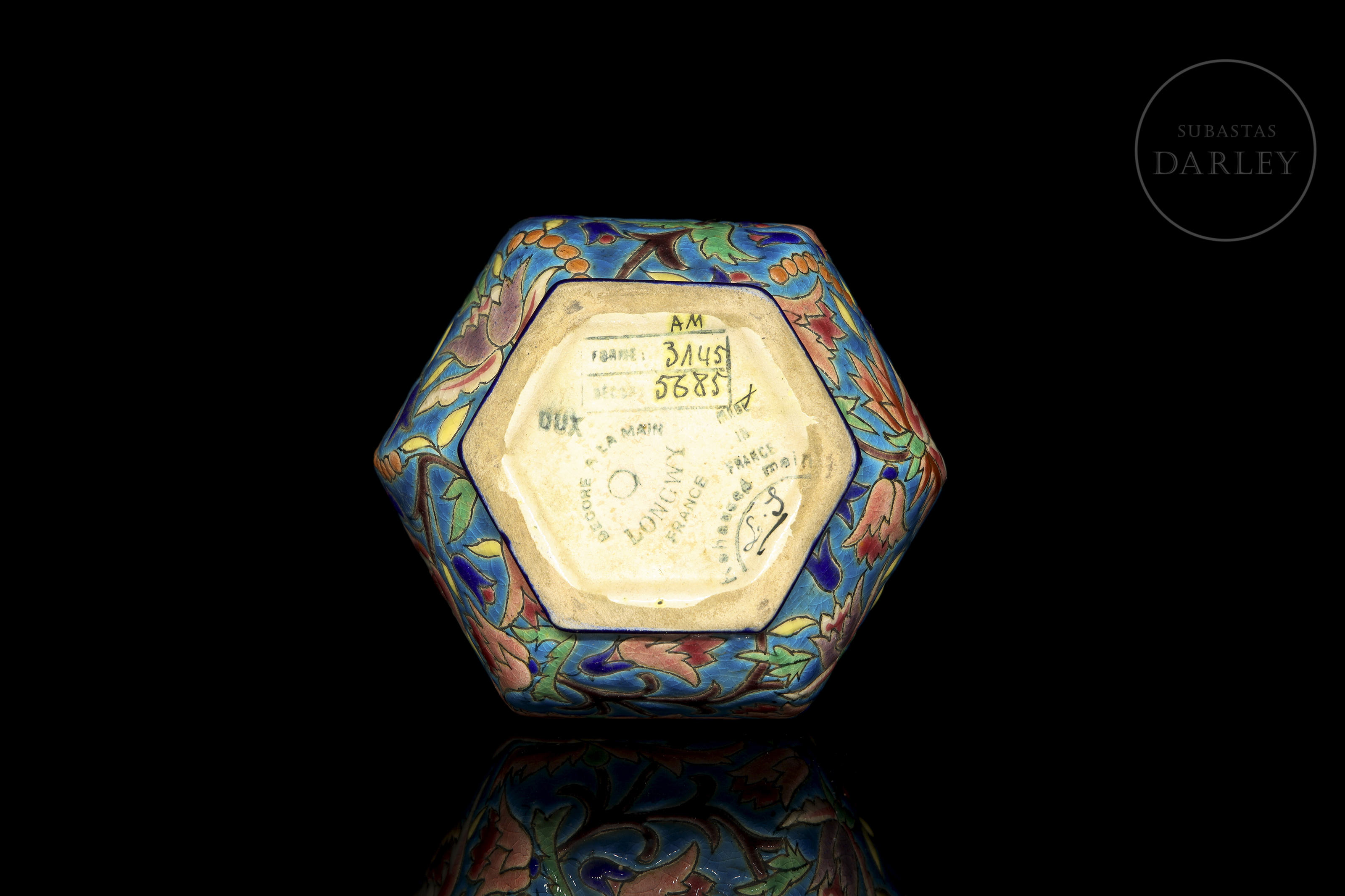 Longwy, hexagonal glazed ceramic vase, early 20th century