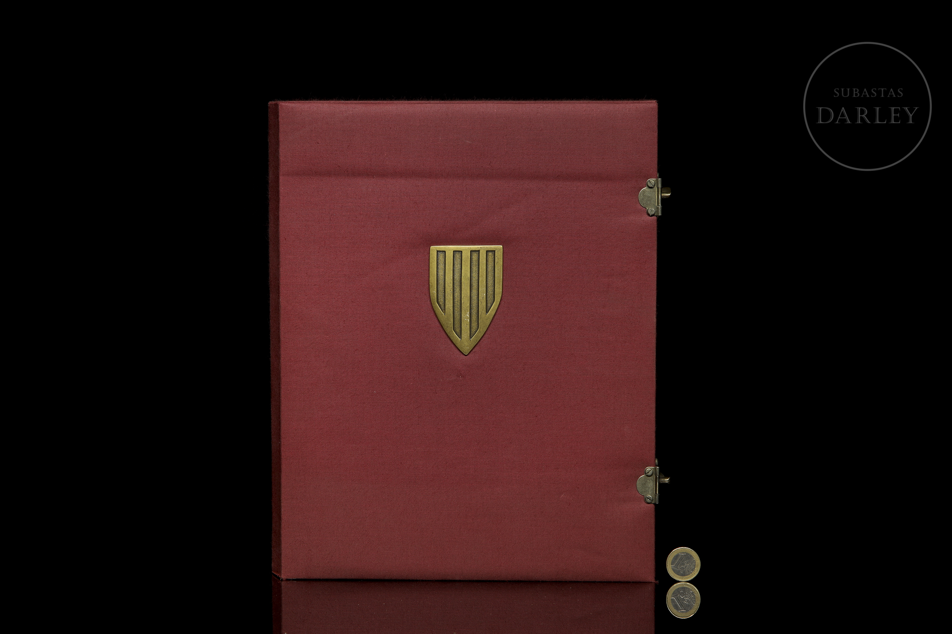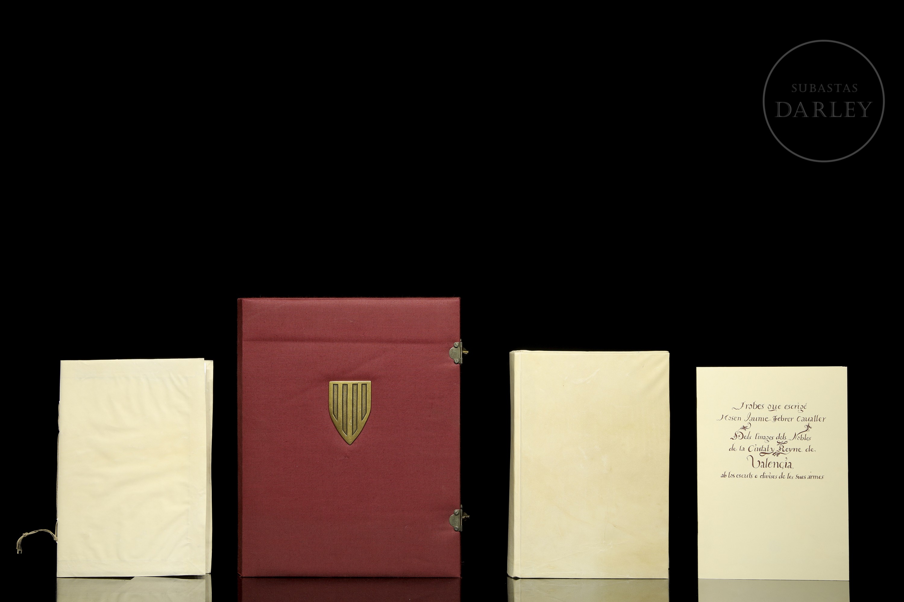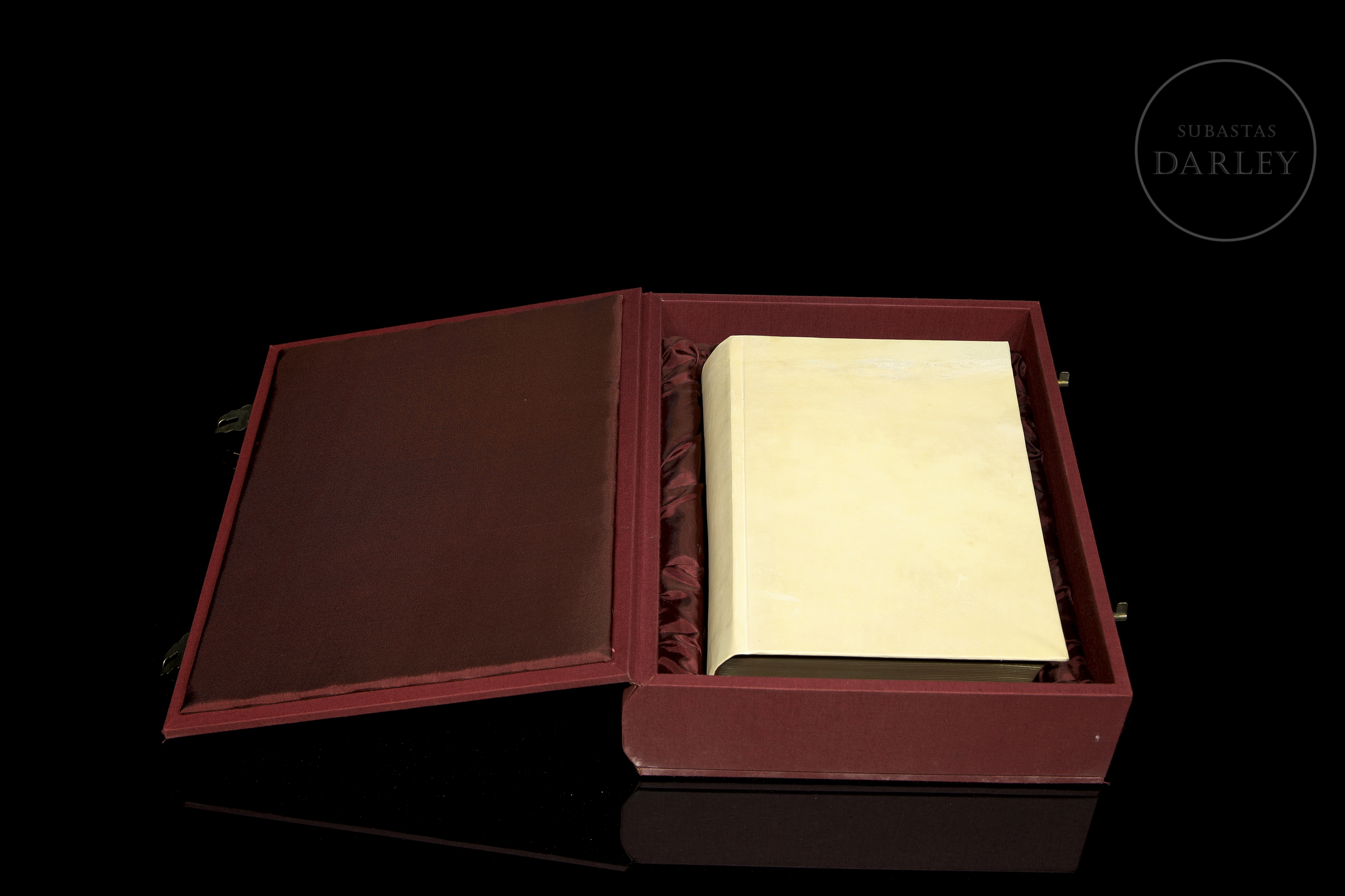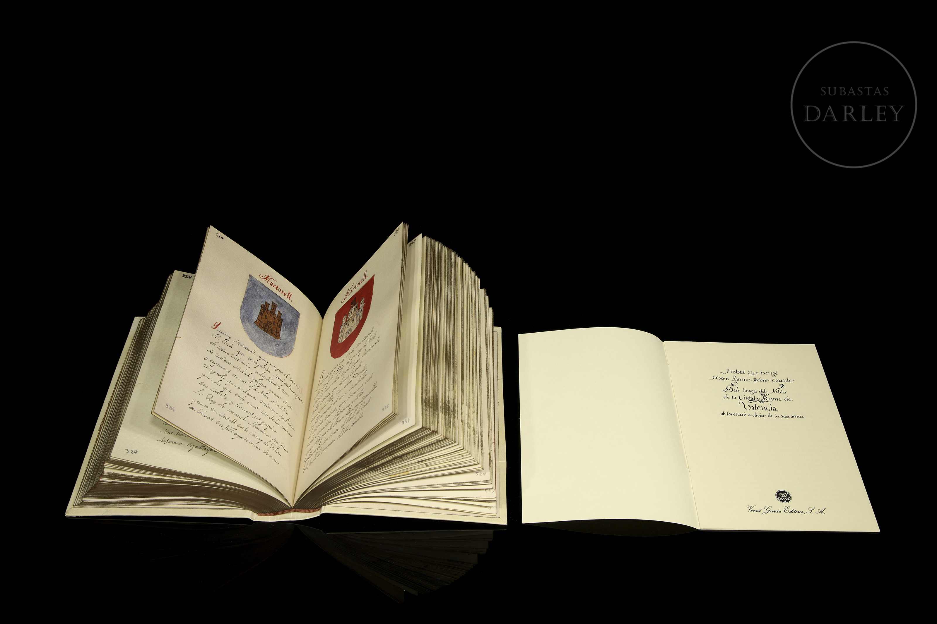 Facsimile reproduction published by Vicente García Editores in 1990. In red lined wooden box with coat of arms and metal clasp. Vicent García Editores, Valencia, 1990.