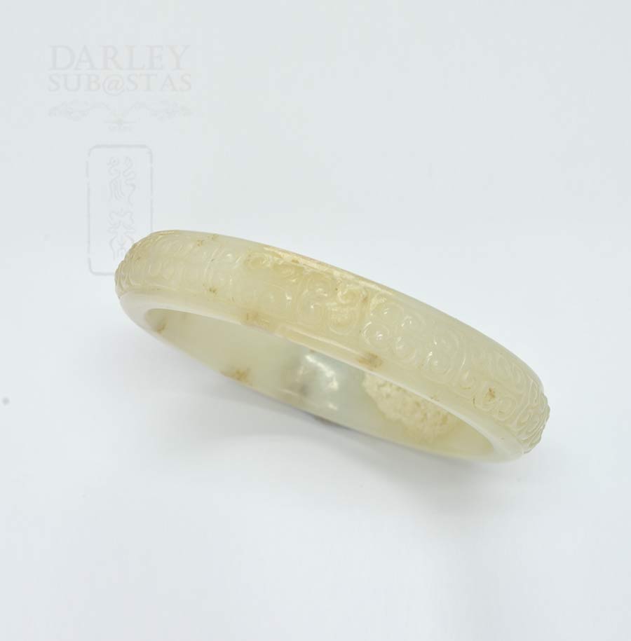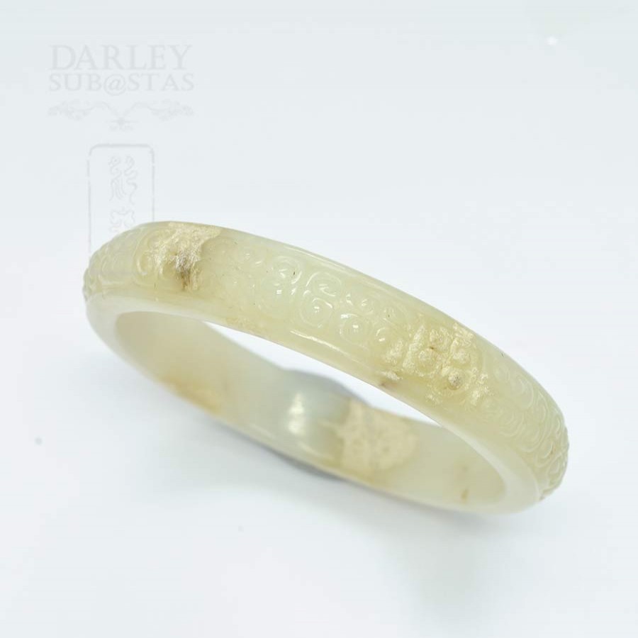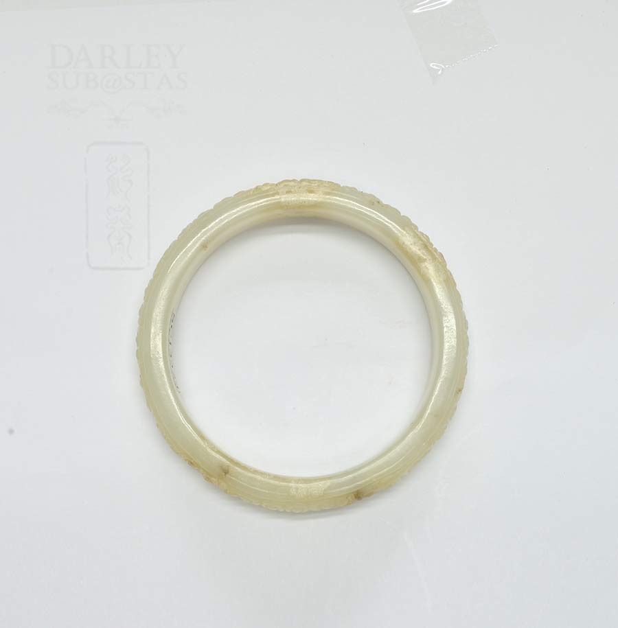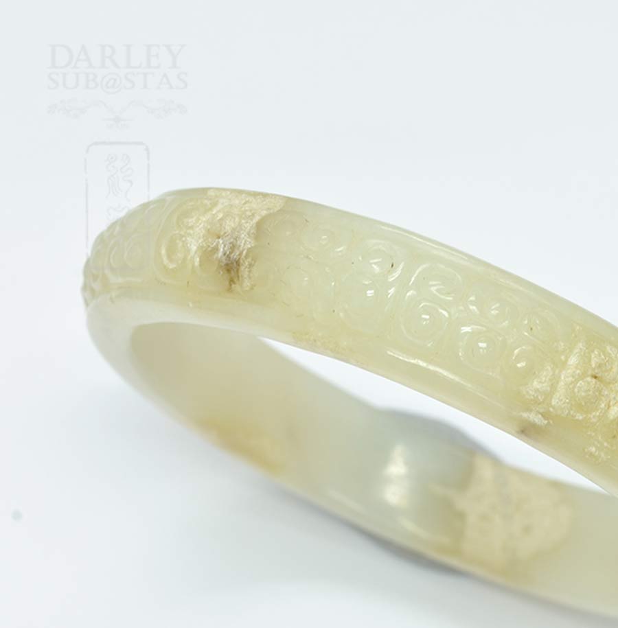 白带浅黄棕天然雕花圆玉手镯