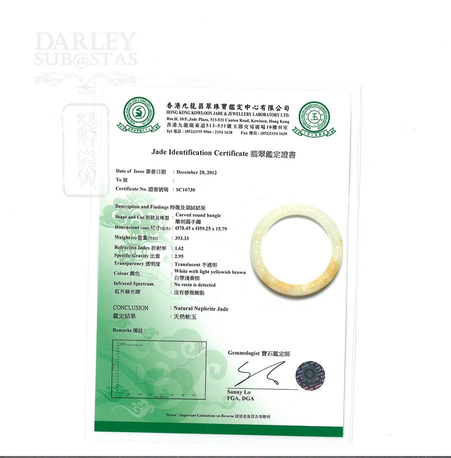 Natural precious jade slave totally without any treatment, white and yellowish brown. We see that in the entire outer surface of the slave is carved with details excellent job. The certificate is the best Jades specialized laboratory in Hong Kong.