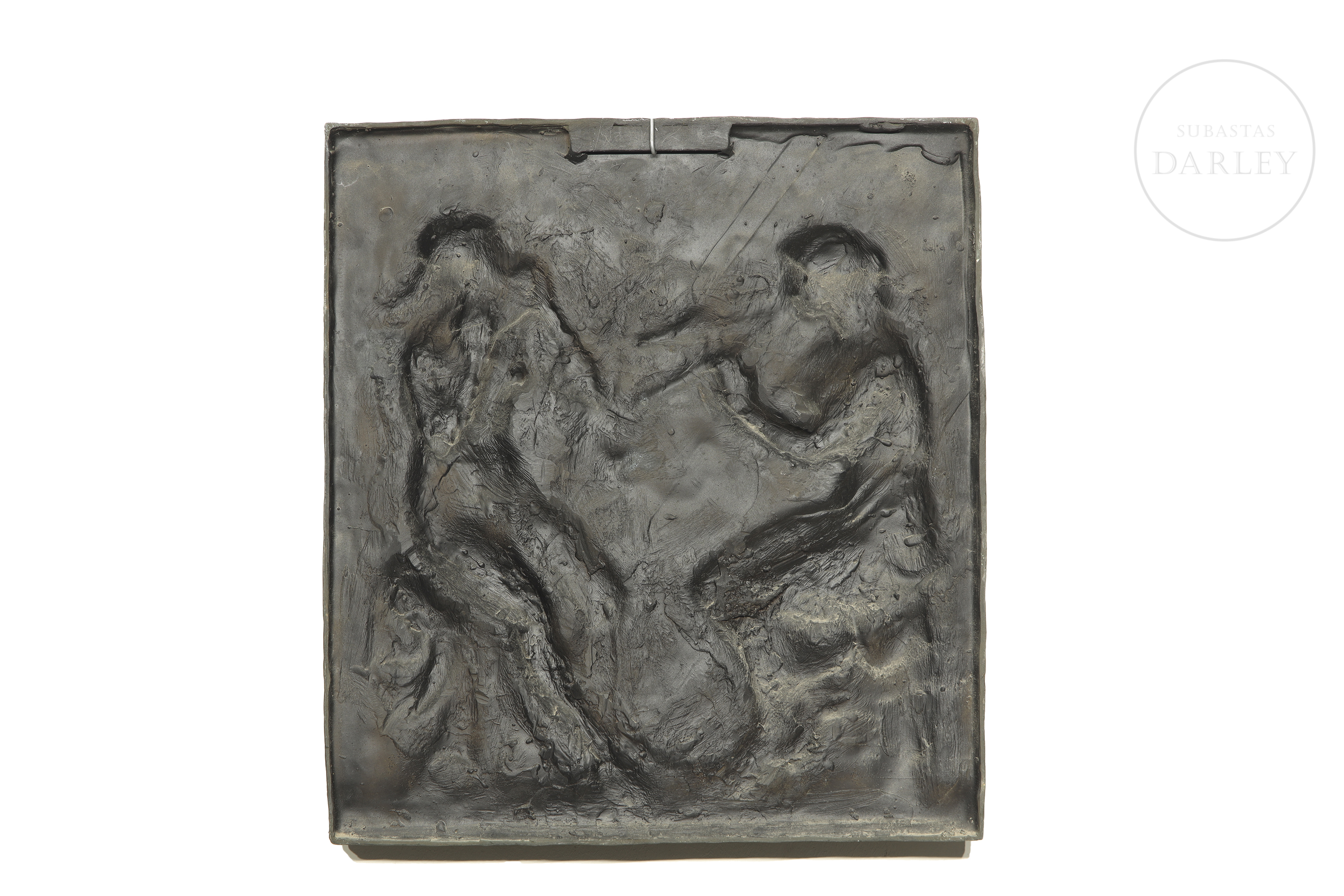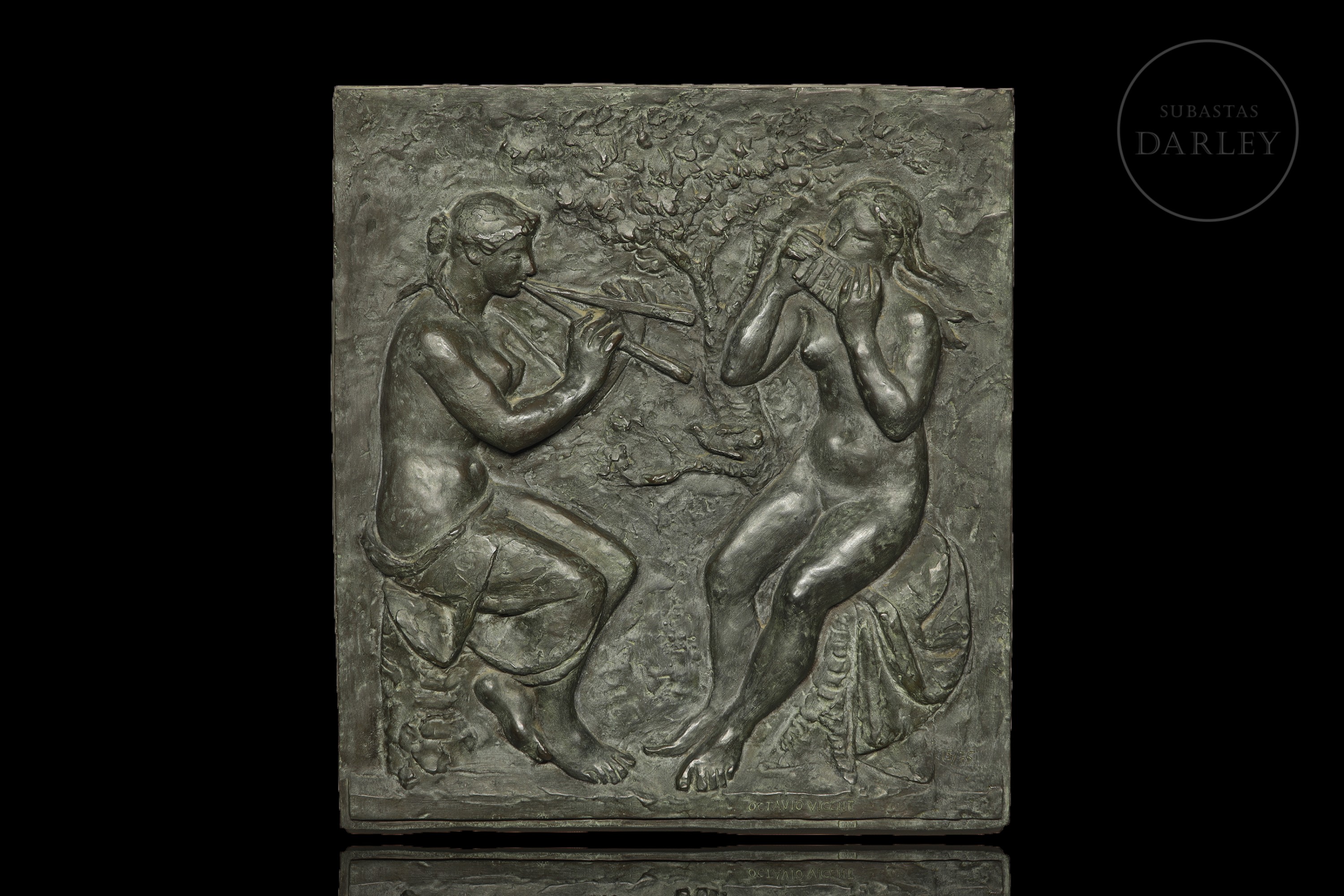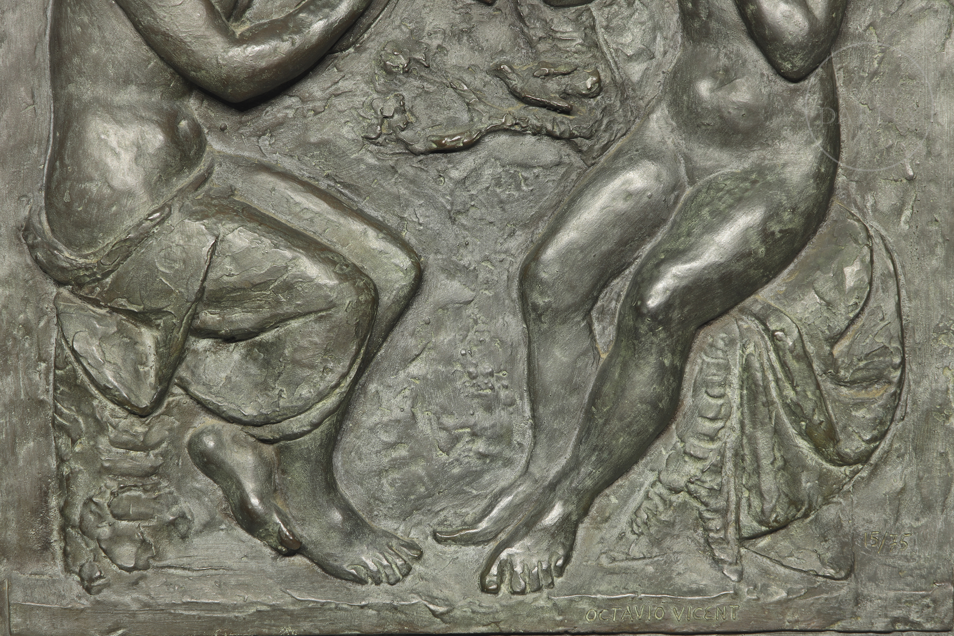 Patinated bronze plate, decorated with bas-reliefs. Signed ‘Octavio Vicent’ in the lower right margin and numbered ‘15/75’.